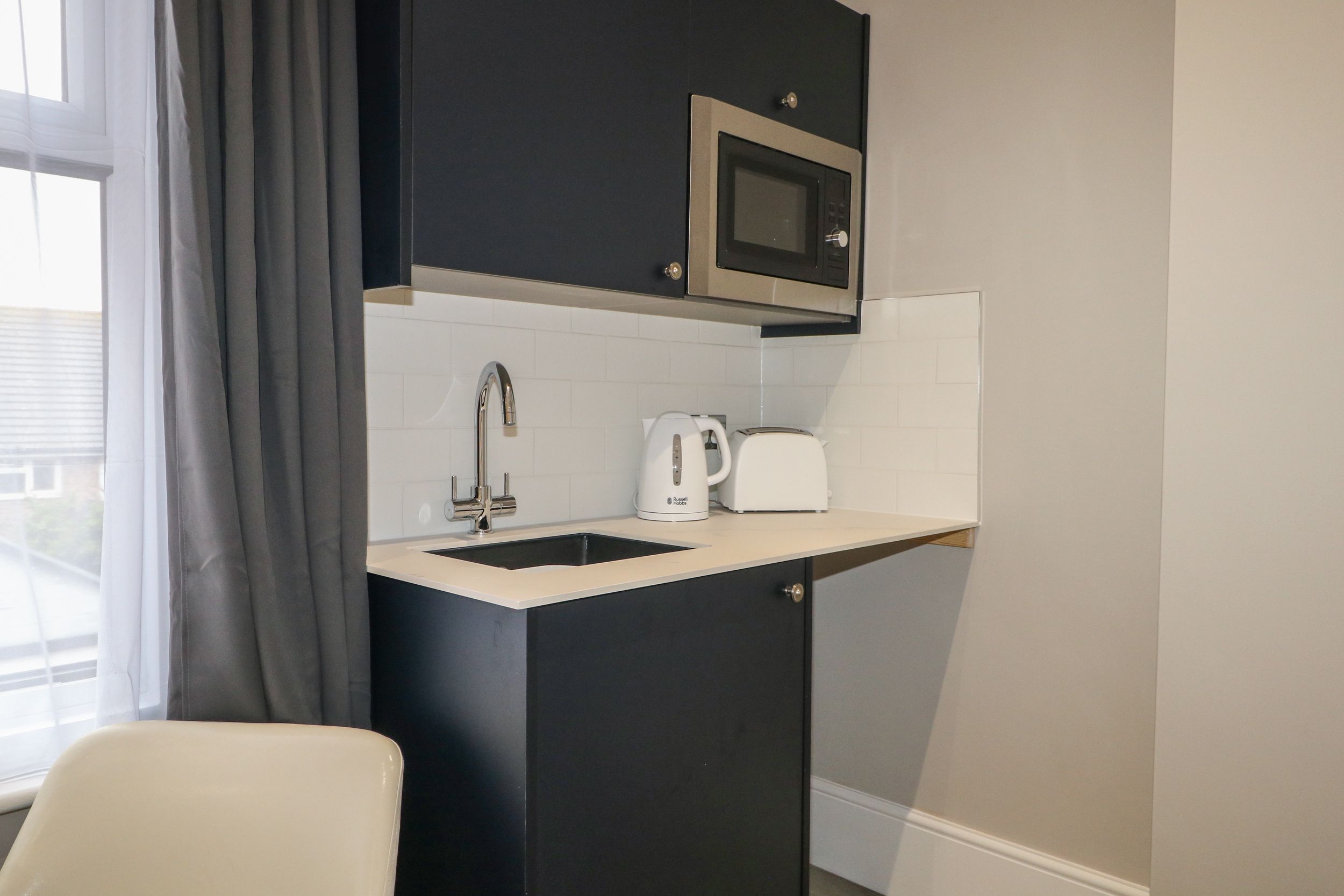 Accomodation Details First-floor apartment. Studio-style living with king-size bed, kitchen, and dining area with TV. Shower room with walk-in shower, basin, heated towel rail, and WC