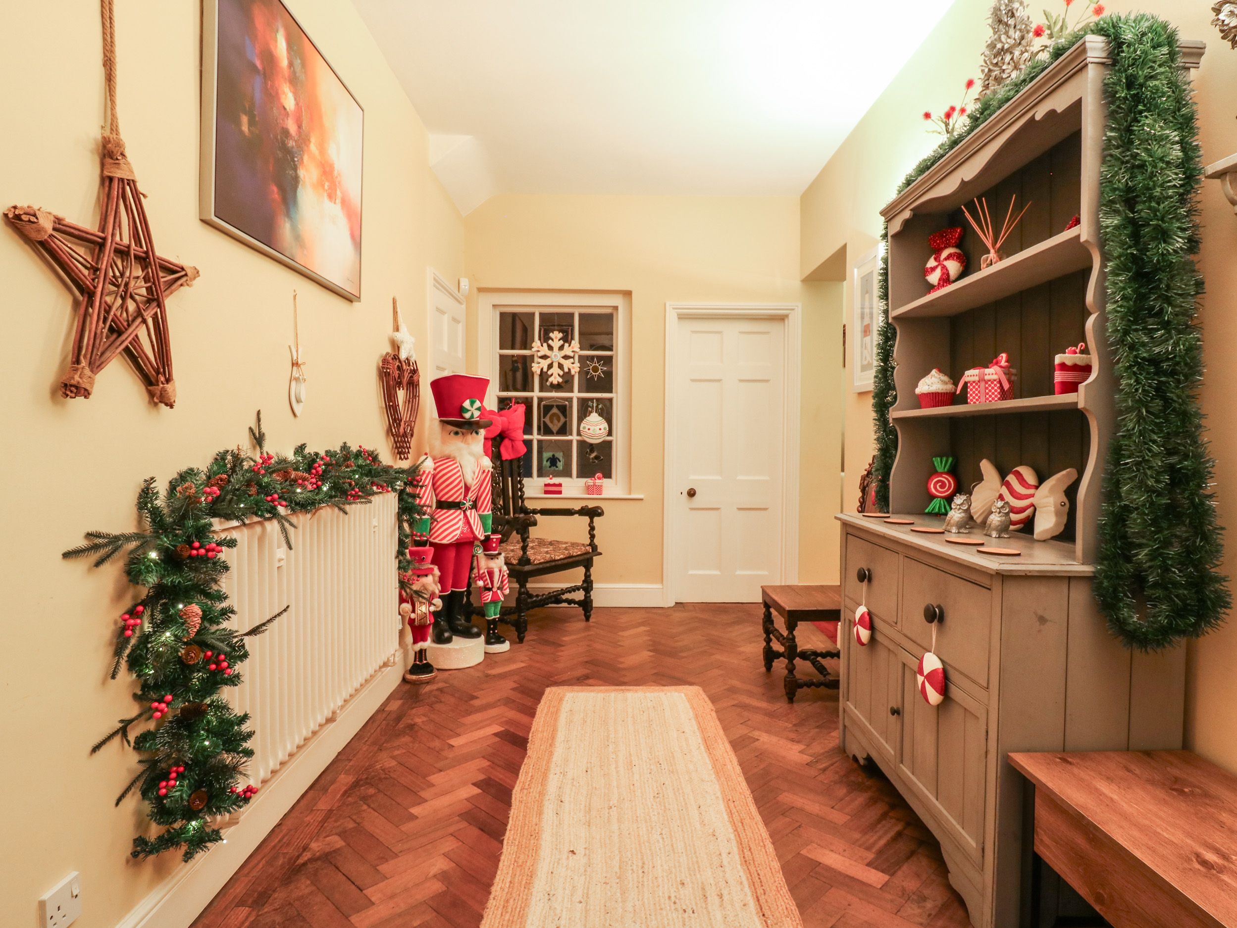 Amenities Gas central heating. Aga Oven and Aga stovetops, Electric Oven, gas hob, airfryer, 2 x microwaves, American fridge/freezer, coffee machines & percolators, 2 dishwashers, washing machine, tumble dryer. 2 x TVs, WiFi. Fuel, power inc. in rent. Bed linen and towels inc. in rent. Highchair, travel cot, and stairgate available. Off-road parking for up to 14 cars. Enclosed, wraparound garden with gravel, patio, lawn, furniture, hot tub, outdoor swimming heated pool, barbecue, fire pit and pond. Two well-behaved dogs welcome. Sorry, no smoking. Shop 0.2 miles, pub 1.8 miles. Note: Steps up to both raised beds and are only suitable for children. Note: Children must be supervised at all times due to large unfenced pond and outdoor swimming pool. Note: Steps throughout garden, please take care. Note: This property is only suitable for families, not groups of friends. Please note: Through Jan Feb March and November the property will only accept a minimum of 2 nights, other months will be a minimum of 3 nights.