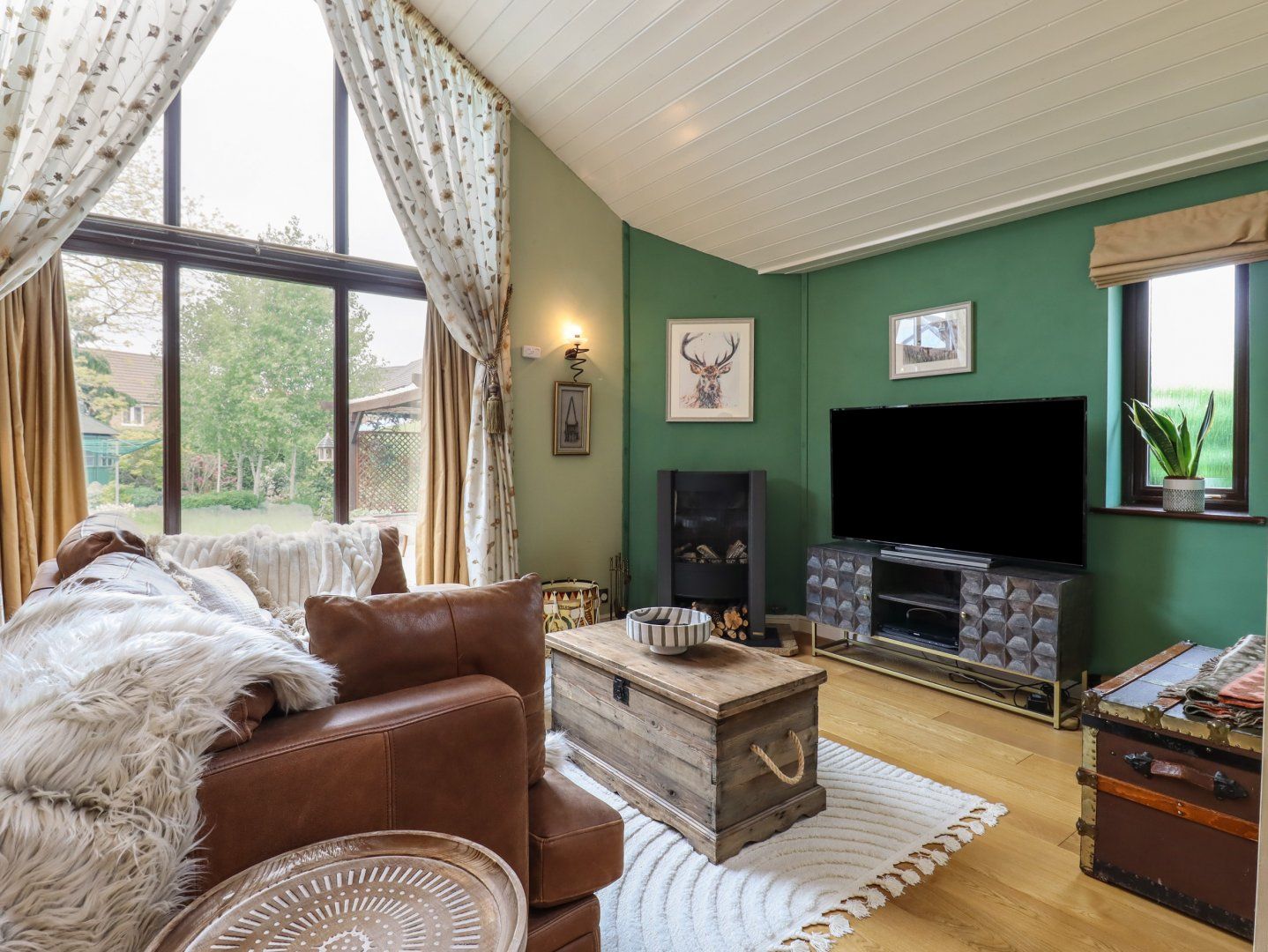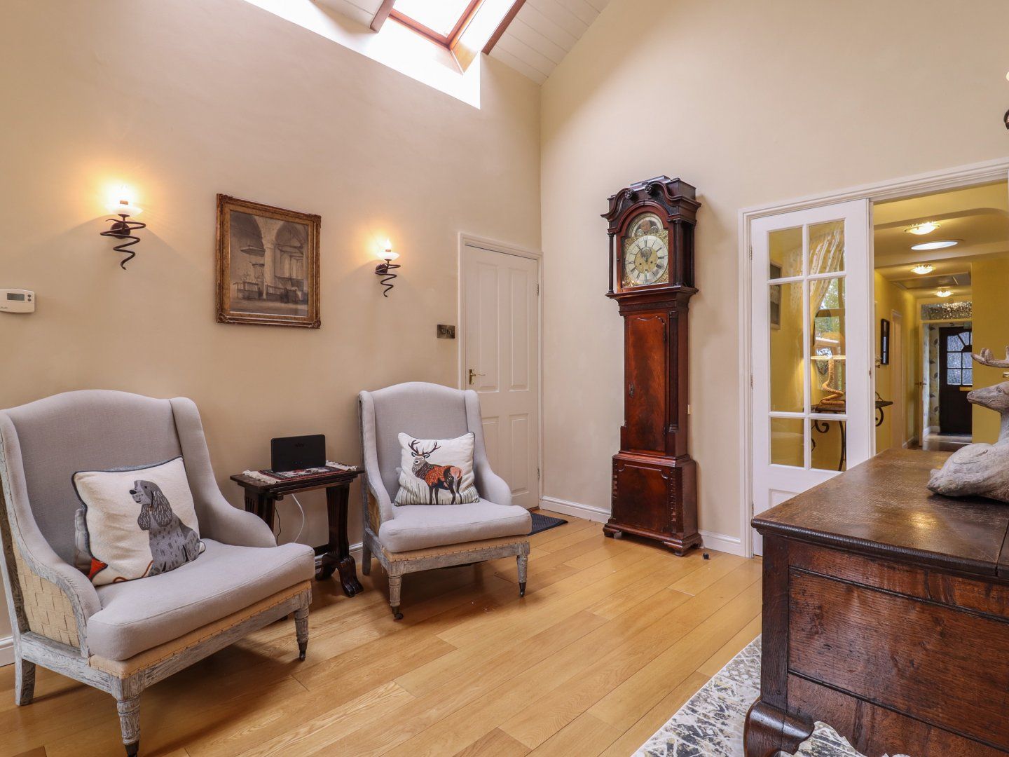 Accomodation Details Three bedrooms: 1 x king-size with en-suite walk-in shower, basin and WC, 2 x king-size. Bathroom with bath, shower over, walk-in shower, basin and WC. Cloakroom. Kitchen/diner with TV. Sitting room with electric stove-effect fire. Conservatory