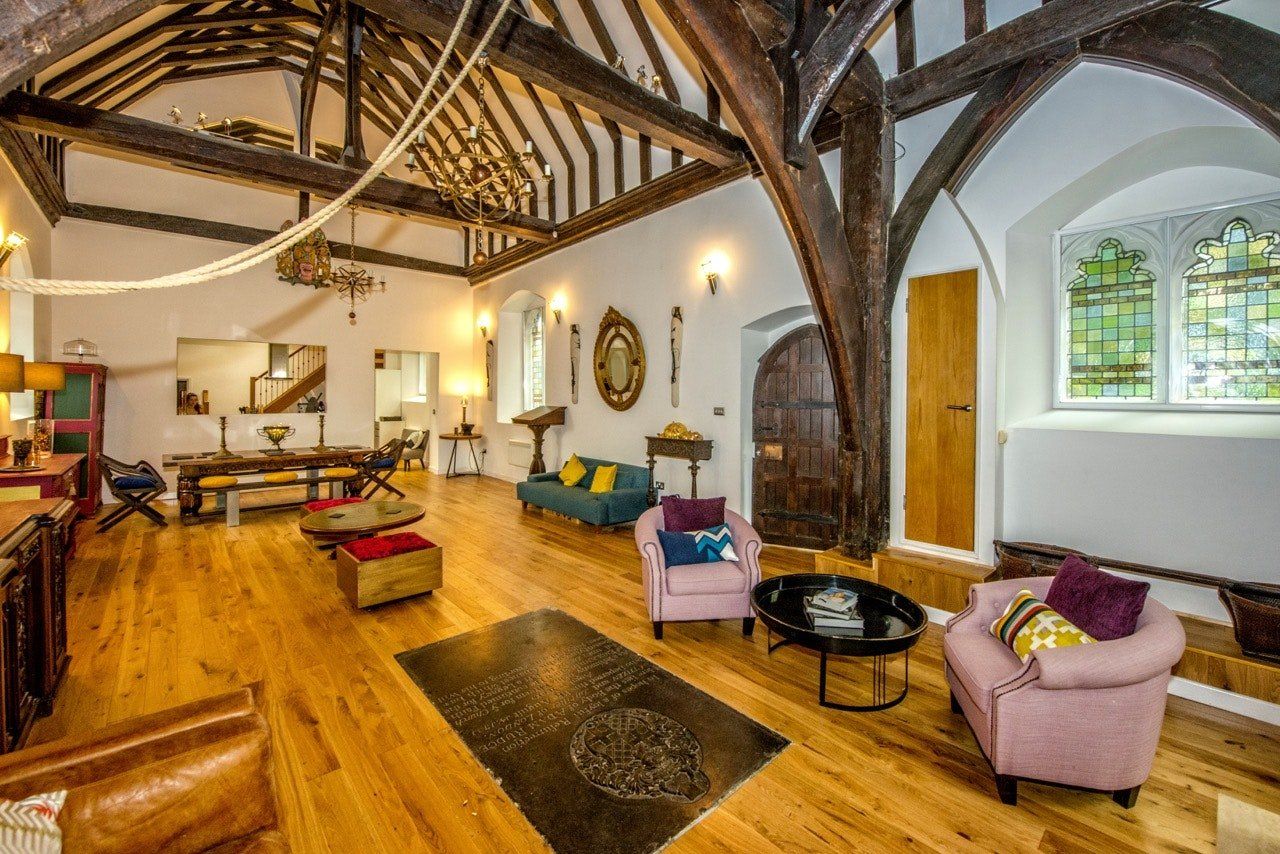 For a uniquely memorable stay in the heart of Essex countryside, opt for this charming church conversion just ten minutes from Basildon. The grade II listed home is brimming with character, from the vaulted beam ceilings to the staggeringly beautiful stained glass windows. The owners have complemented the original features with antique furniture and jewel-toned pops of colour, creating a warm and welcoming atmosphere the moment you arrive.
