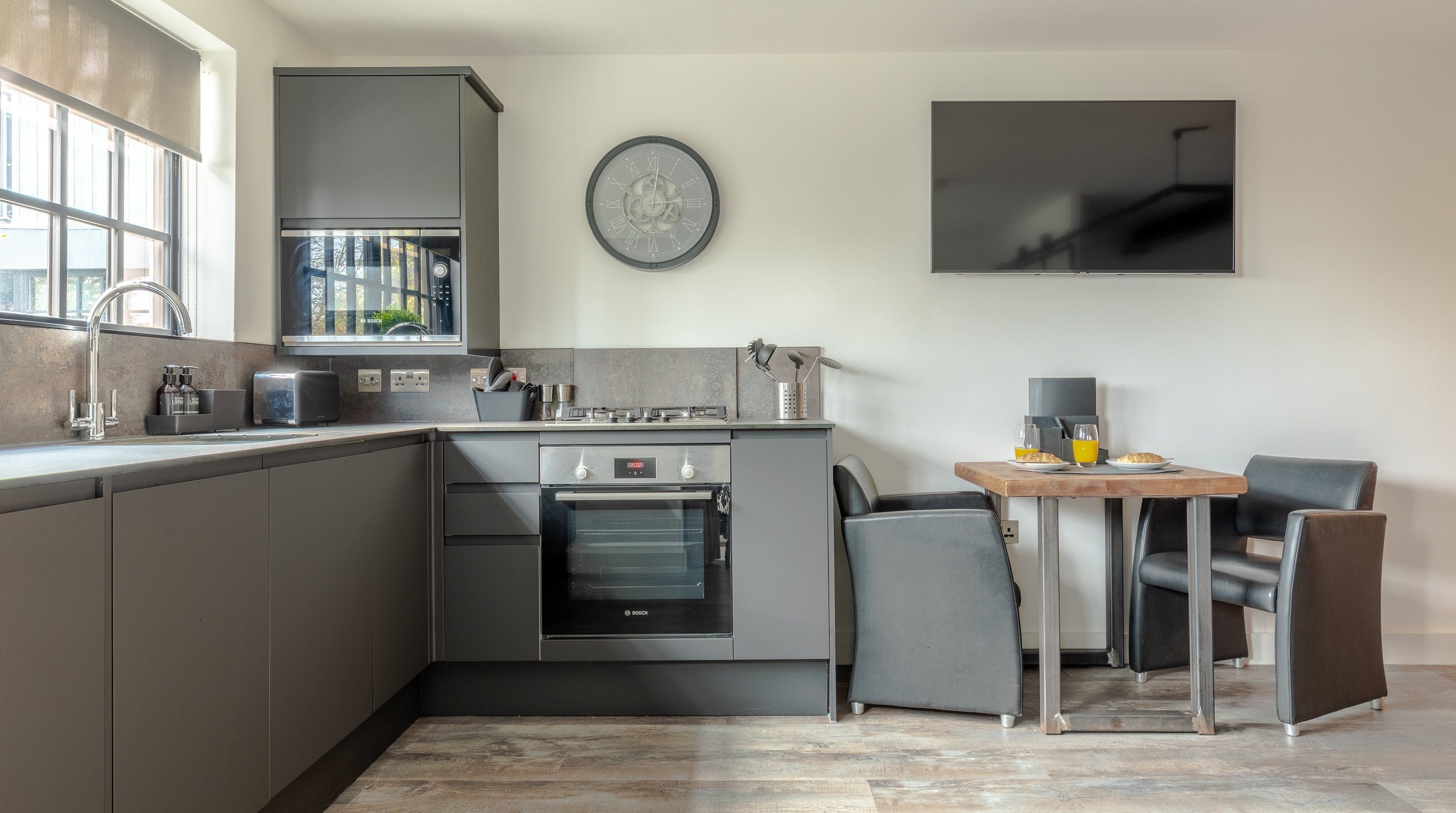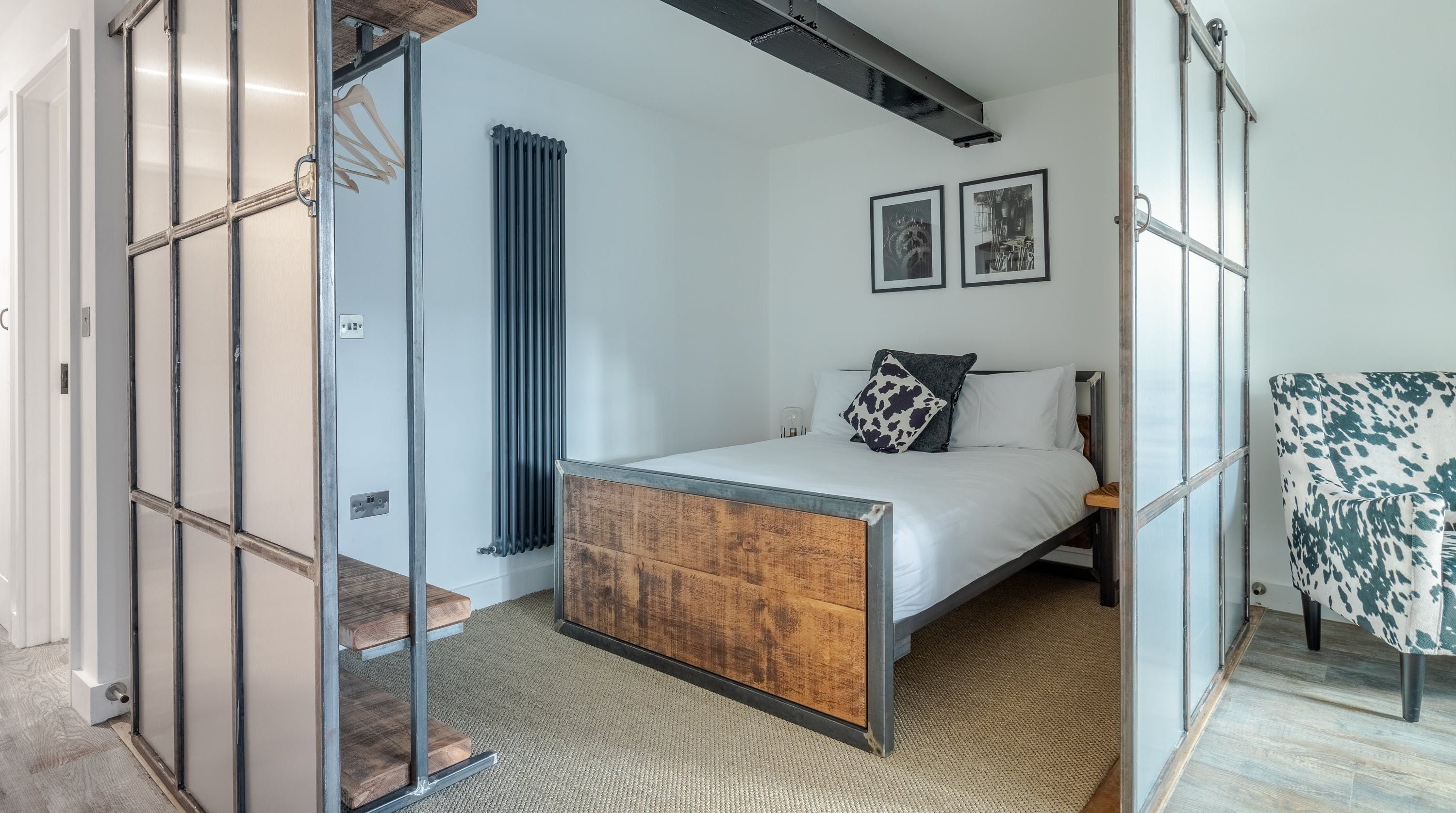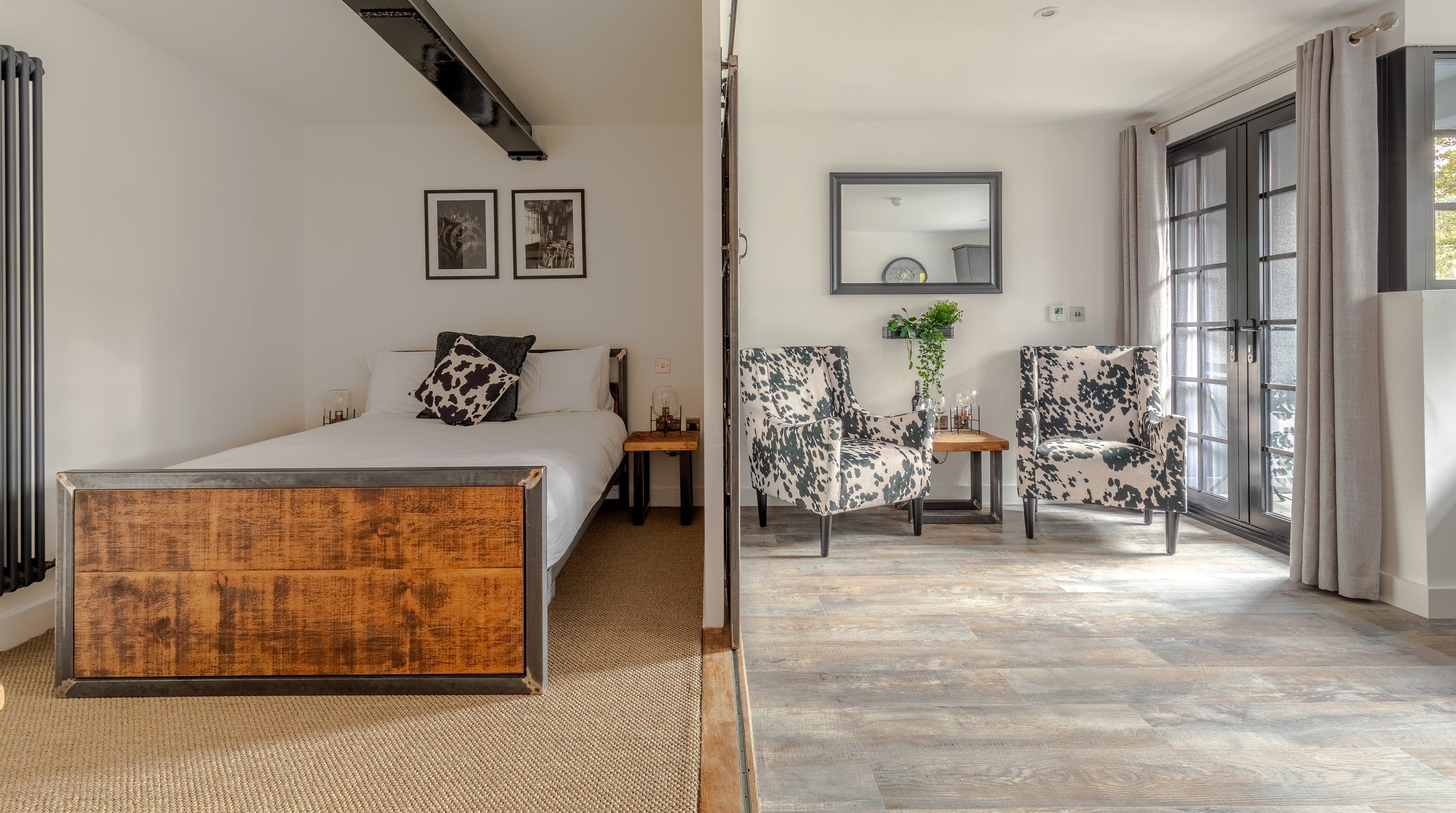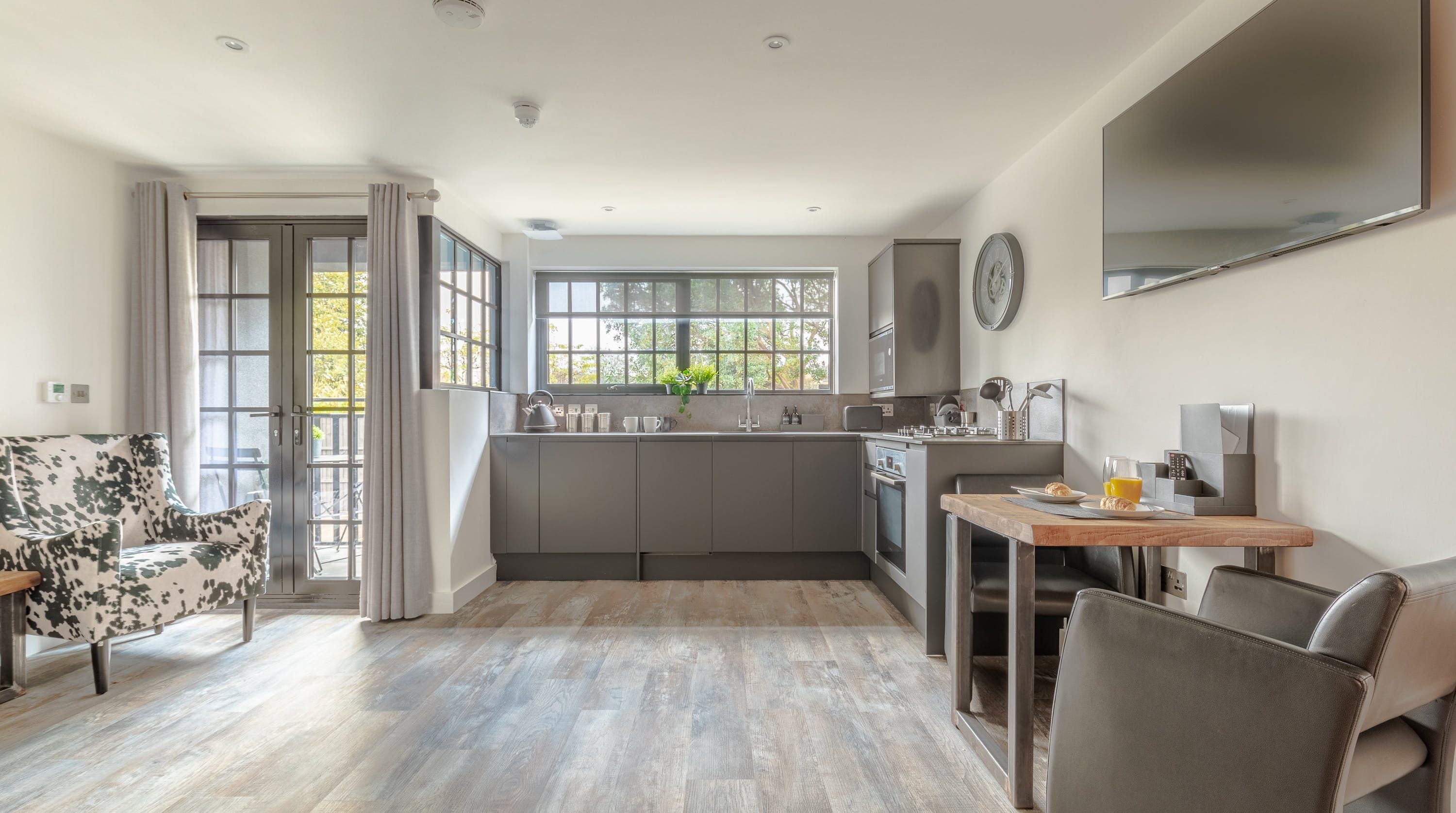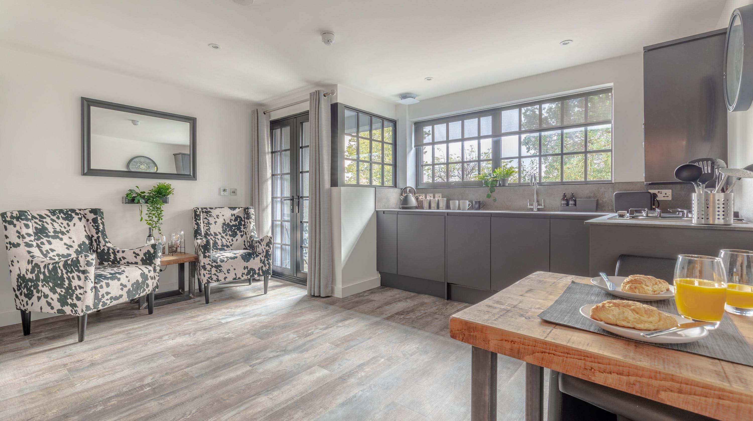 This modern apartment really caught our eye due to its size and location. Set in the charming market town of Halstead, only a twenty-minute drive from Colchester, you're nicely placed in and around Essex. It's an industrial-style flat, with innovative use of sliding doors, steel beams and crittall windows to create a bright open-plan living area that feels a lot bigger than it actually is. The home offers a comfortable stay for groups of four, whether you're in town on business or exploring the surrounding area. And after mooching around the boutique shops, indie coffee houses and hip bars, return to a chic animal print armchair for a well-needed cuppa. Better still, extend the living space outwards to your private balcony and bookmark the day with lovely green views and pre-dinner drinks. Enjoy a hearty meal knocked up in the fully-equipped kitchen, before getting a peaceful night's sleep in one of the cosy bedrooms – comfort and ease are at the forefront here.