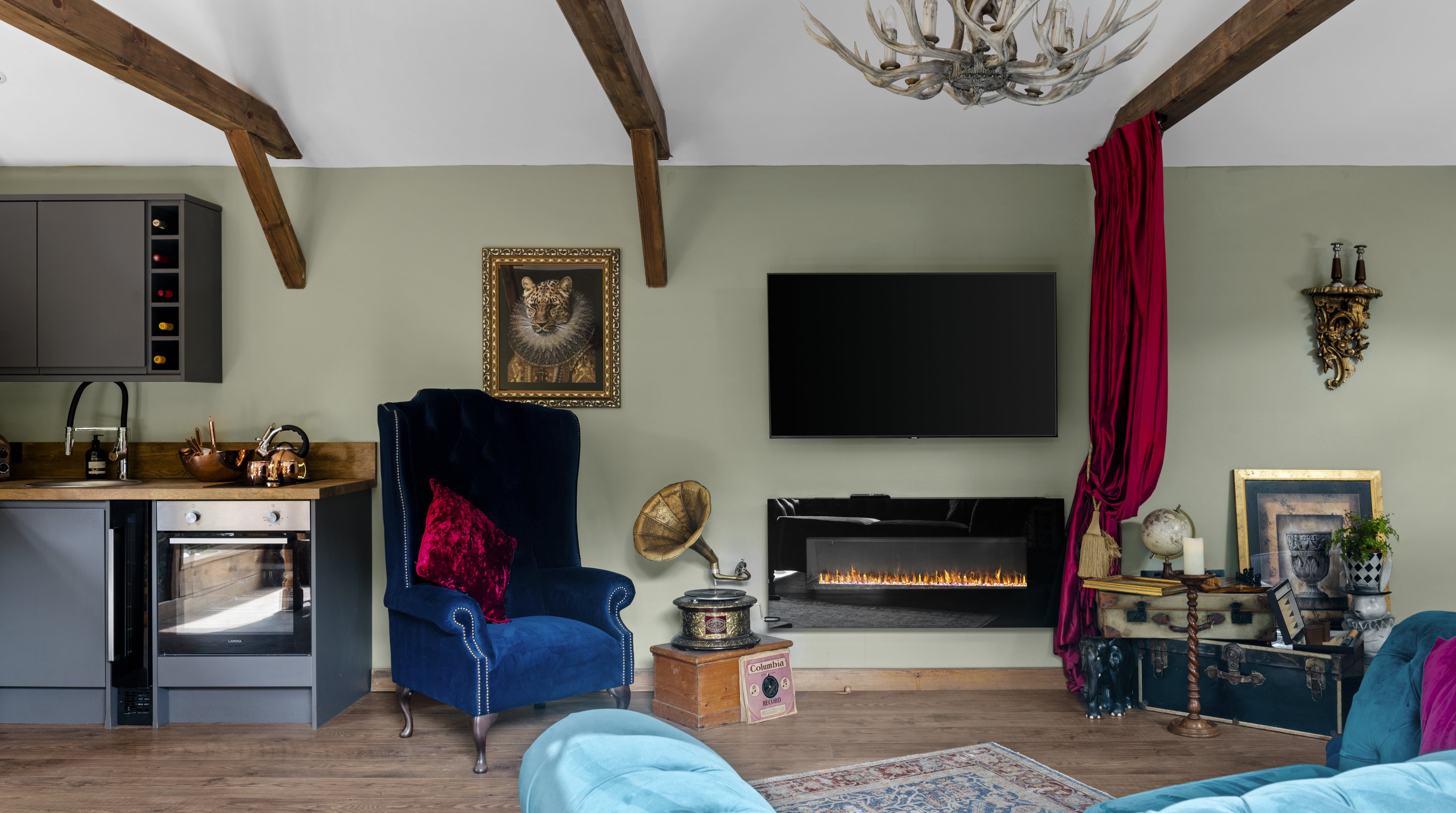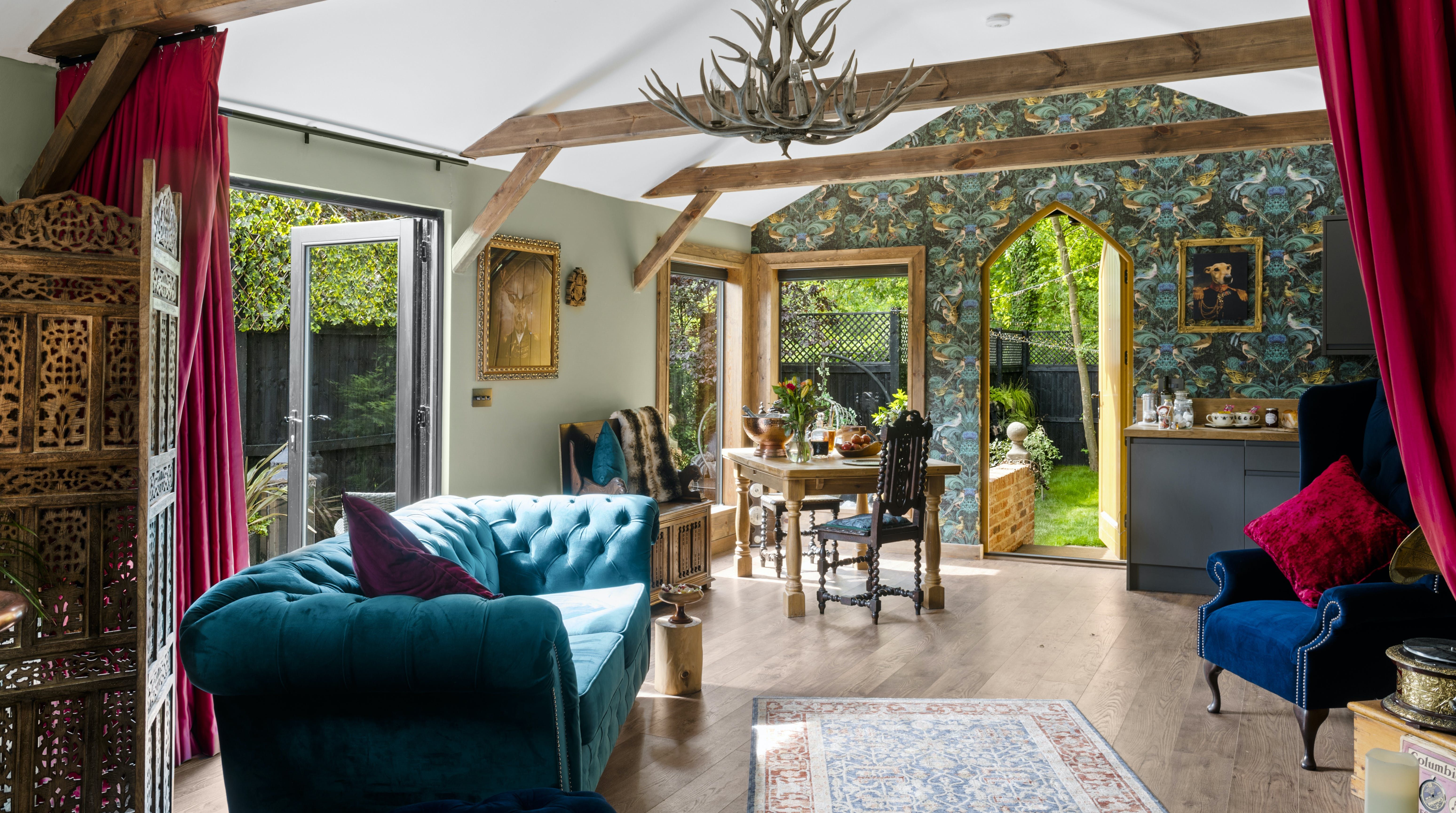 The home's exterior is full of pleasant surprises, too. When the weather's warm enough — and even when it's not — you can sit out in the home's hot tub, before drying off on one of the egg chairs next to the roaring fire pit. It's possible to hear the sounds of wildlife from the neighbouring forest, as well as the occasional roar from Colchester Zoo, which is less than ten minutes' drive from the home.