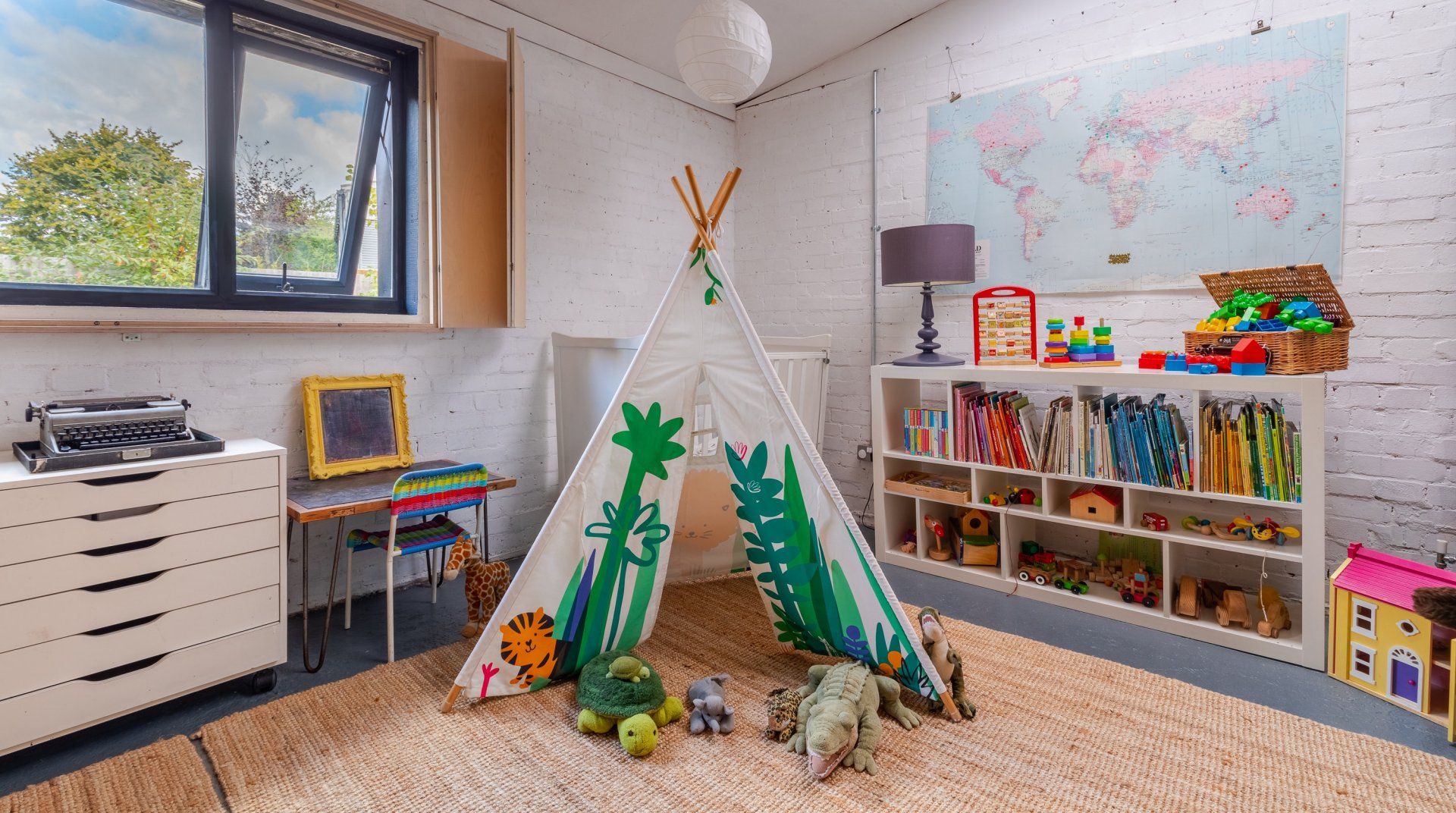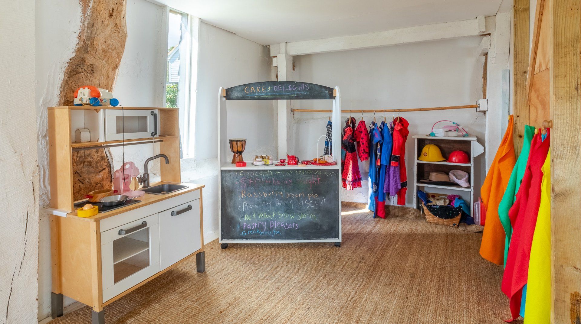 One of the bedrooms is aimed at kids, with twin beds, funky lights, chalkboards, toys and books. But as if that wasn't enough, they have a whole play area in the main space, where imaginations can run wild thanks to a wooden teepee, a wooden shop and a range of homemade superhero capes to choose from. There's more outside with a willow tunnel and mud kitchen. As the sun sets, toast some marshmallows around the fire pit before heading to your cosy beds.