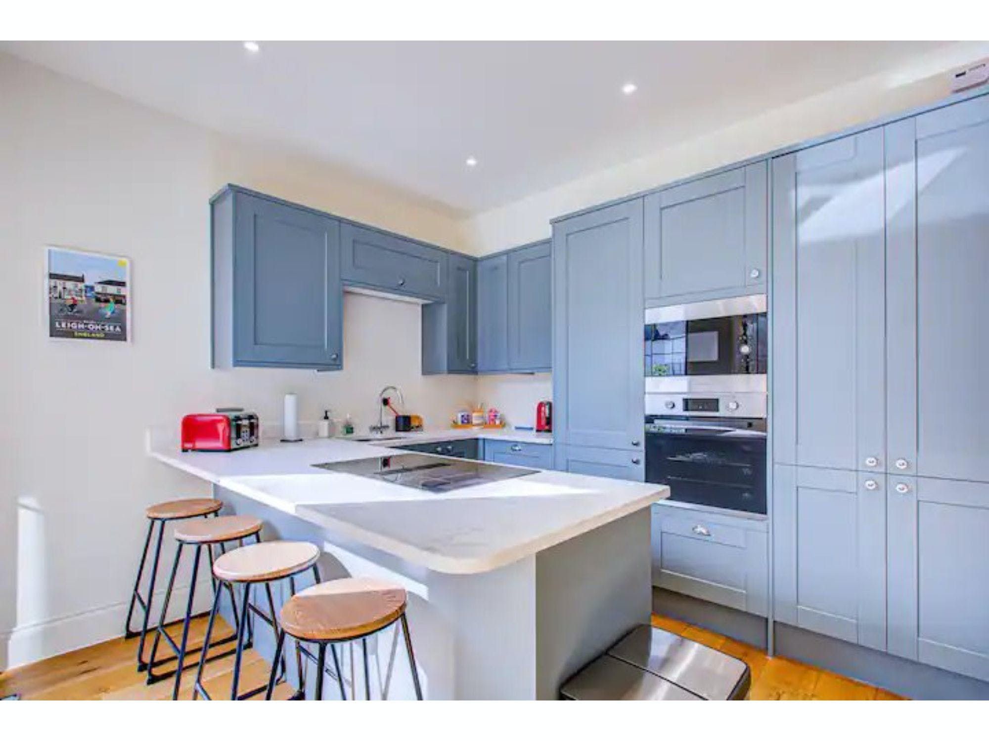 Find your cozy retreat in our three-bedroom house, perfectly positioned for a peaceful sea-side haven. Nestled in the delightful town of Leigh-on-Sea, it promises breathtaking sea views from its enchanting location on a tranquil street. Whether it's family fun or romance on the coast you're seeking, this could be your ideal home away from home. Bask in sun-light sea-view serene bliss from the terrace and ample windows that adorn this abode. Soft sofas coupled with a Smart TV make for perfect unwinding. The fully equipped kitchen fuels your culinary flights of fancy while sunsets viewed from the comfort of the main bedroom are a sight to behold. Delightfully designed bedrooms ooze charm, bedecked with quality linens and pleasing decor, they also include an en suite with striking sea views. Strategically placed outdoor dining spaces spark alfresco enjoyment while comfort-enhancing amenities enhance your stay.
