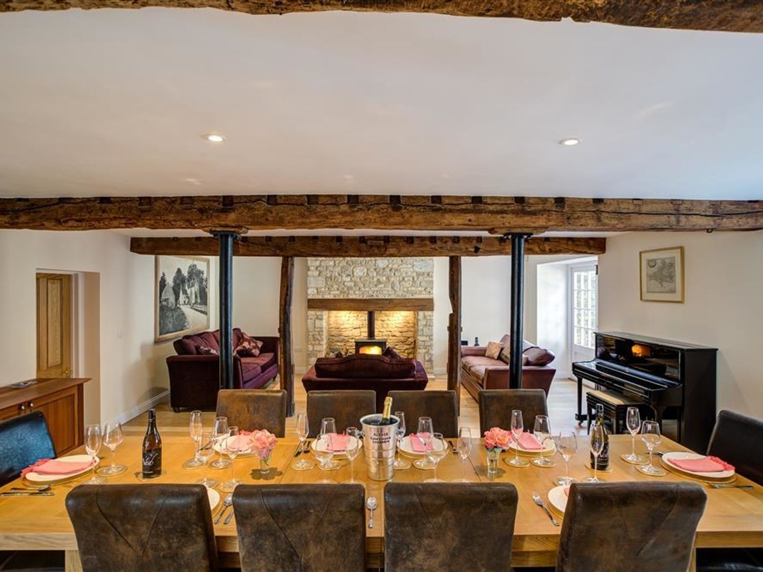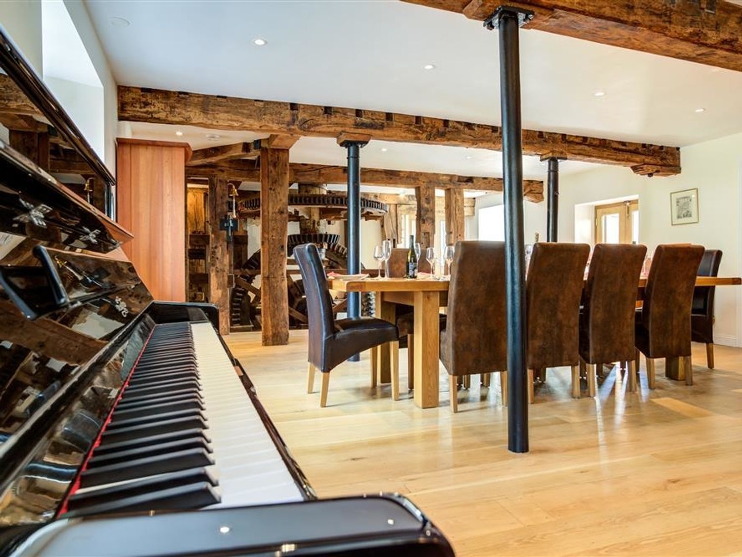Arlington Mill is a historic house located in Bibury, Gloucestershire. The property dates back to the Doomsday Book, and was once where corn from around the Cotswolds was brought and milled for consumption. The property covers 4 floors. On the ground floor, is an open-plan living room with wood burning fire, a dining area and a piano. The first floor has an additional living area and fitted kitchen, as well as a master suite with super king-size bedroom and en suite bathroom and WC. On the 2nd floor is a family room with double bed, 2 single beds and an en suite bathroom and WC, and two super king-size bedrooms, both with an en suite bathroom and WC. On the 3rd floor, there is a twin bedroom and a separate wet room and WC. To the rear of the property, is a garden with patio area, furniture provided, and a BBQ. Outside is a deep mill stream with fast flowing water - guests are advised not to approach, especially children. Ample off road parking. Pets charged at £25 per pet per stay.
