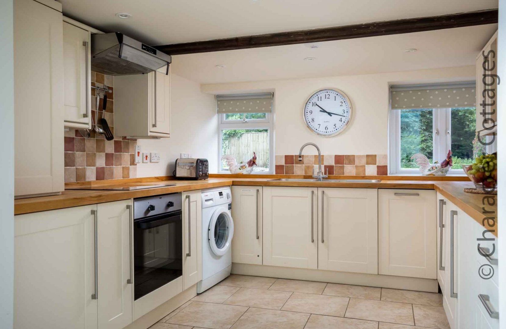 Amenities Gas central heating and open fire. Electric oven, ceramic hob, microwave, fridge, freezer, washing machine, tumble dryer, Nespresso coffee maker, dishwasher, Kettle, Toaster, hairdryer. Freeview TV, Bluetooth speaker, digital radio, WiFi. Fuel, power and starter pack for open fire inc. in rent. Bed linen and towels inc. in rent. Cot, highchair and stairgate available. Lawn and patio garden with furniture and barbecue. Sorry, no pets and no smoking. Shop 0.5 miles, pub 0.4 miles.
