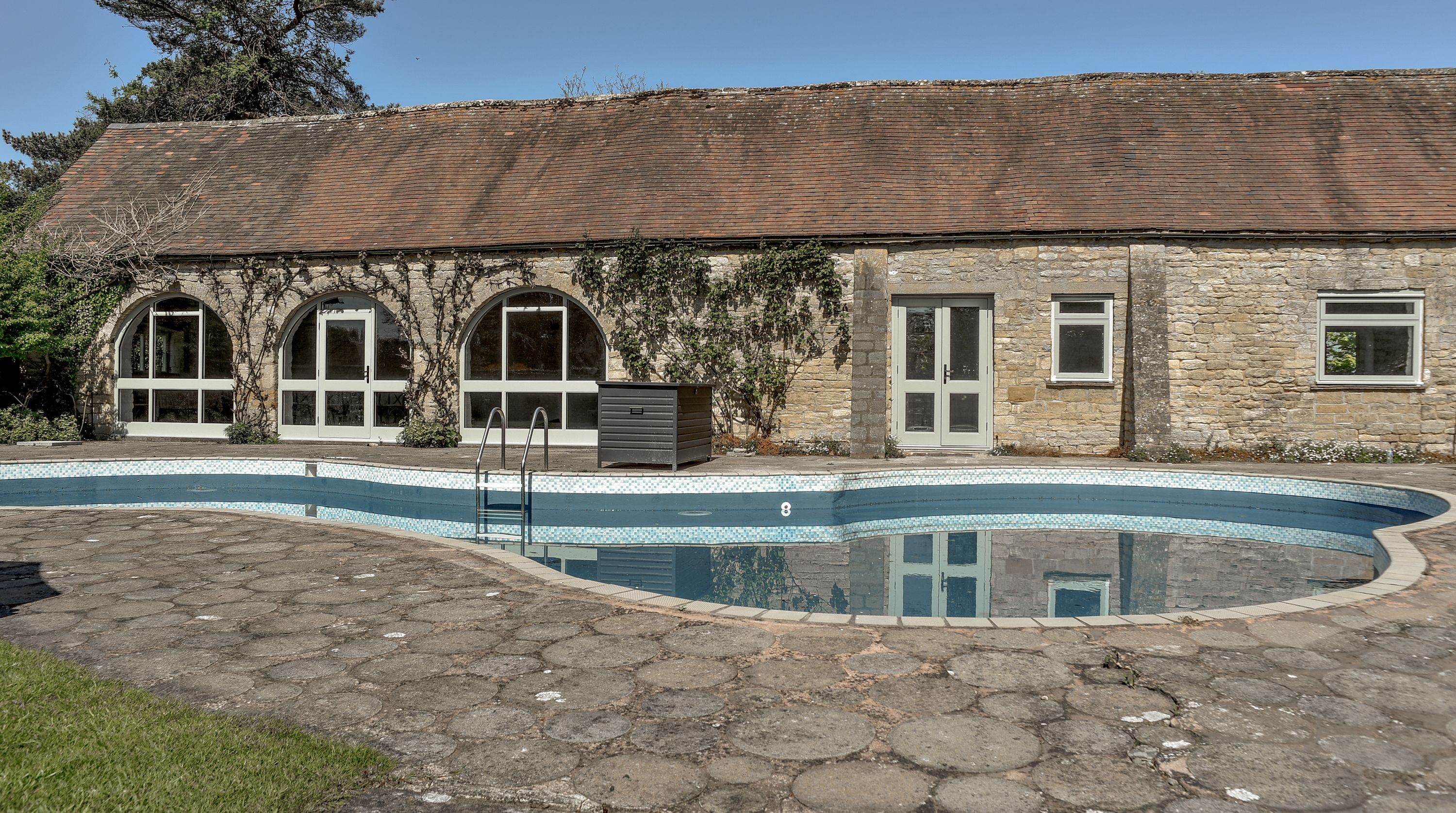 This beautiful, snug coach house is nestled in the grounds of a Georgian Manor House, tucked away in its private lush gardens with a duck pond overlooking the National Trust Tithe Barn. Inside, you'll discover a cosy living area, ideal for unwinding after a long weekend of adventuring. The emerald runs throughout the kitchen, giving it a sleek look and a calm environment to brew your morning cup of tea. Retire to the charming reading nook in the burnt orange armchair at the top of the spiral staircase, one that adds even more character to this home. Wind your way through the lush greenery for a peaceful stroll amid unlimited quantities of solitude before taking a dip in the pool and dining alfresco in the sun trap.