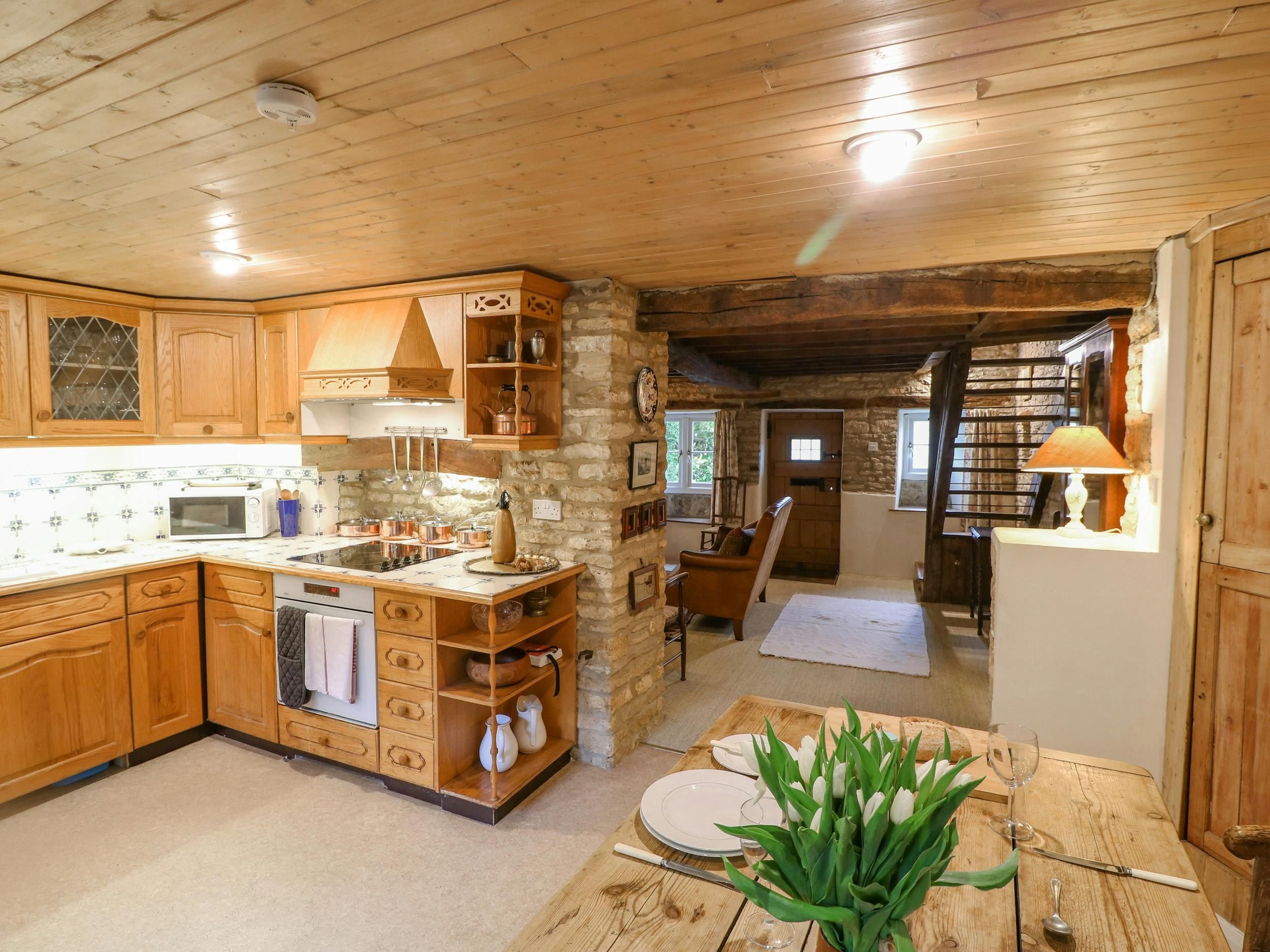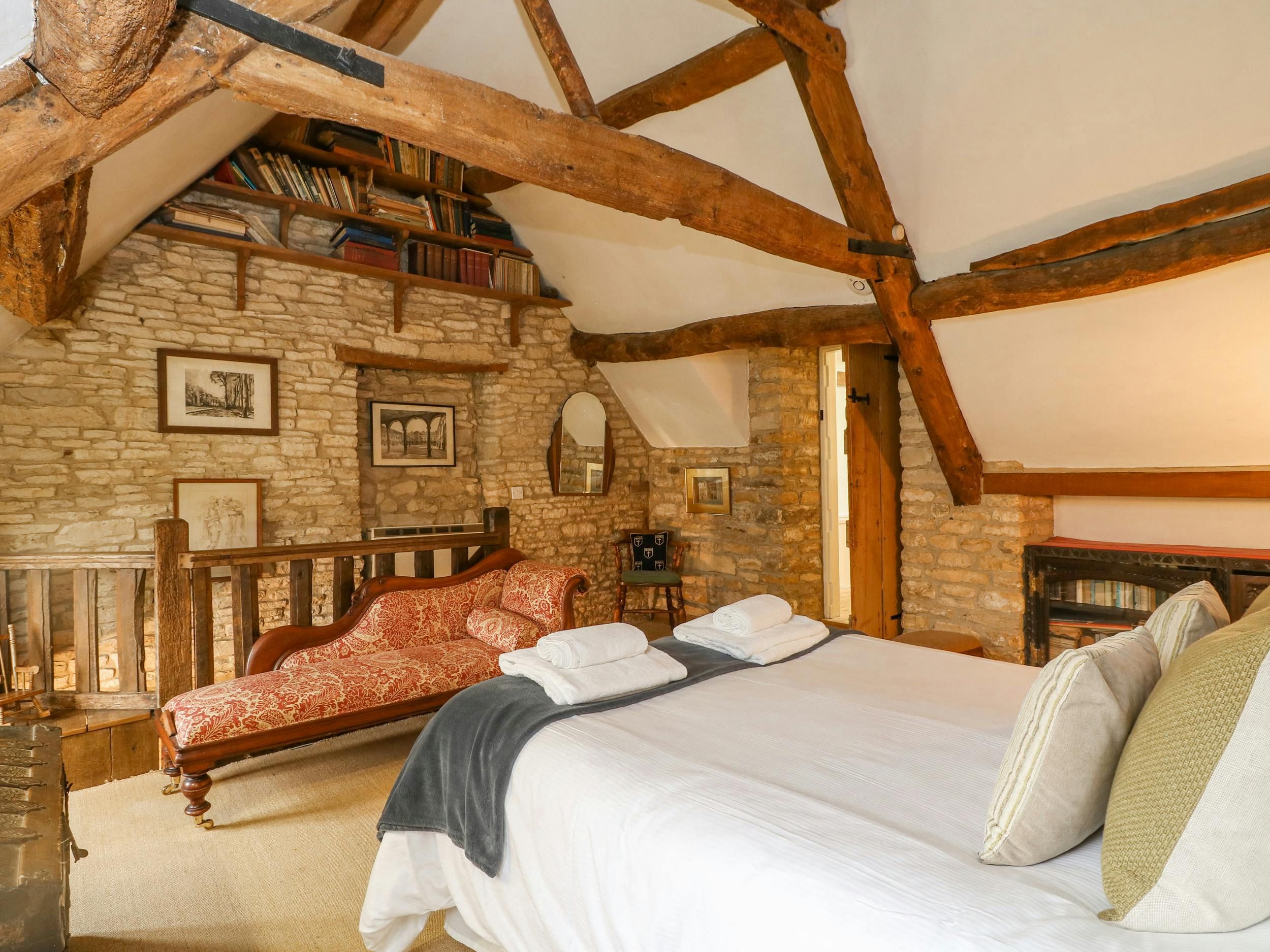 Charming and cosy, this 17th-century cottage embodies a classic Cotswolds stay. It's bursting with character – we're talking wooden beams, a stone hearth, sloped floors, and steep stairs leading to the rustic main bedroom. Here, mornings call for hearty breakfasts in the eat-in kitchen, while evenings are best spent curled up in front of the fire. There's also a garden if you fancy some fresh air and pretty countryside views. Outdoor enthusiasts will have access to scenic walks on the doorstep. For those looking to explore further afield, you'll find Bourton-on-the-Water, Stow-on-the-Wold and Burford within driving distance.