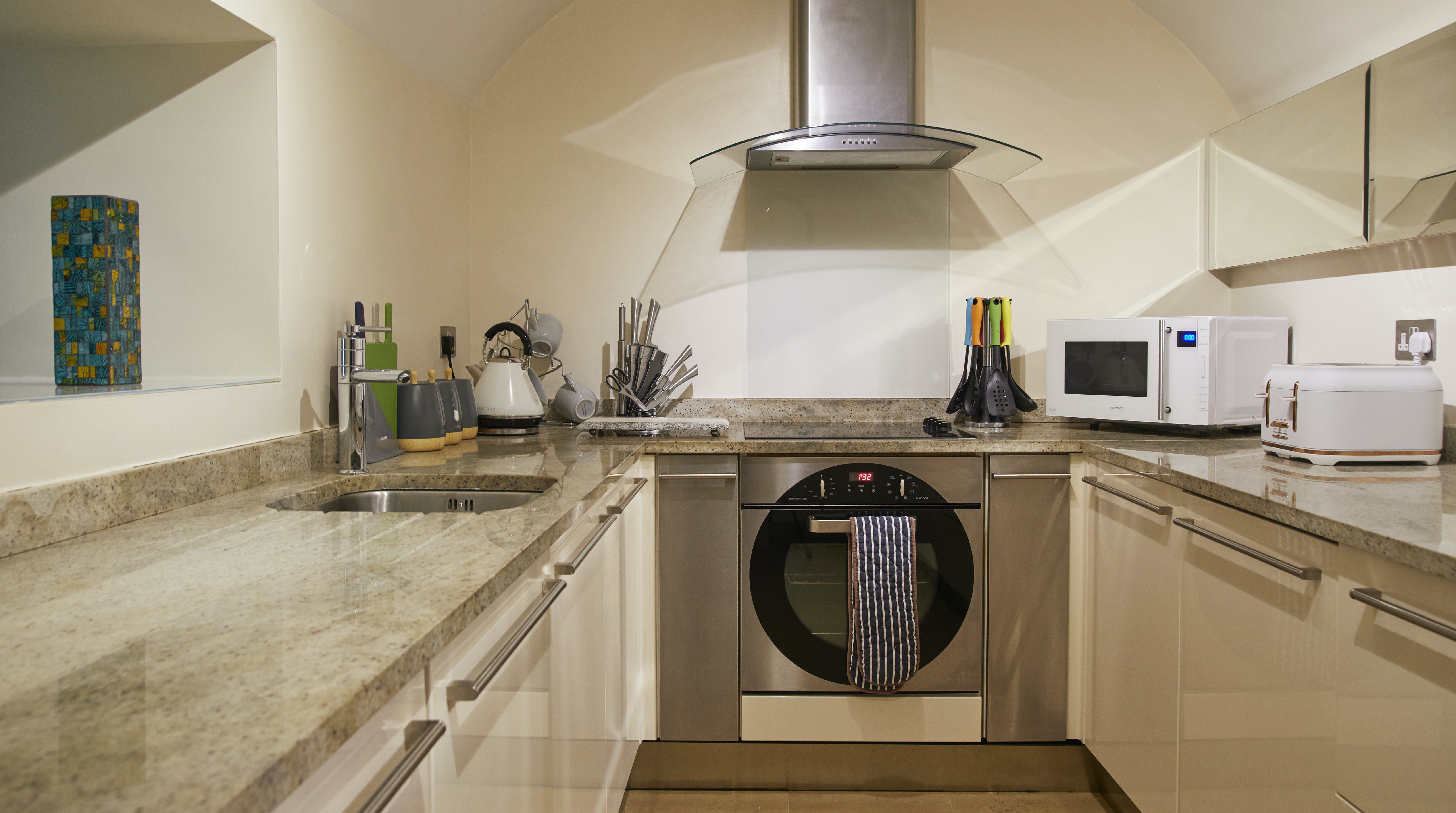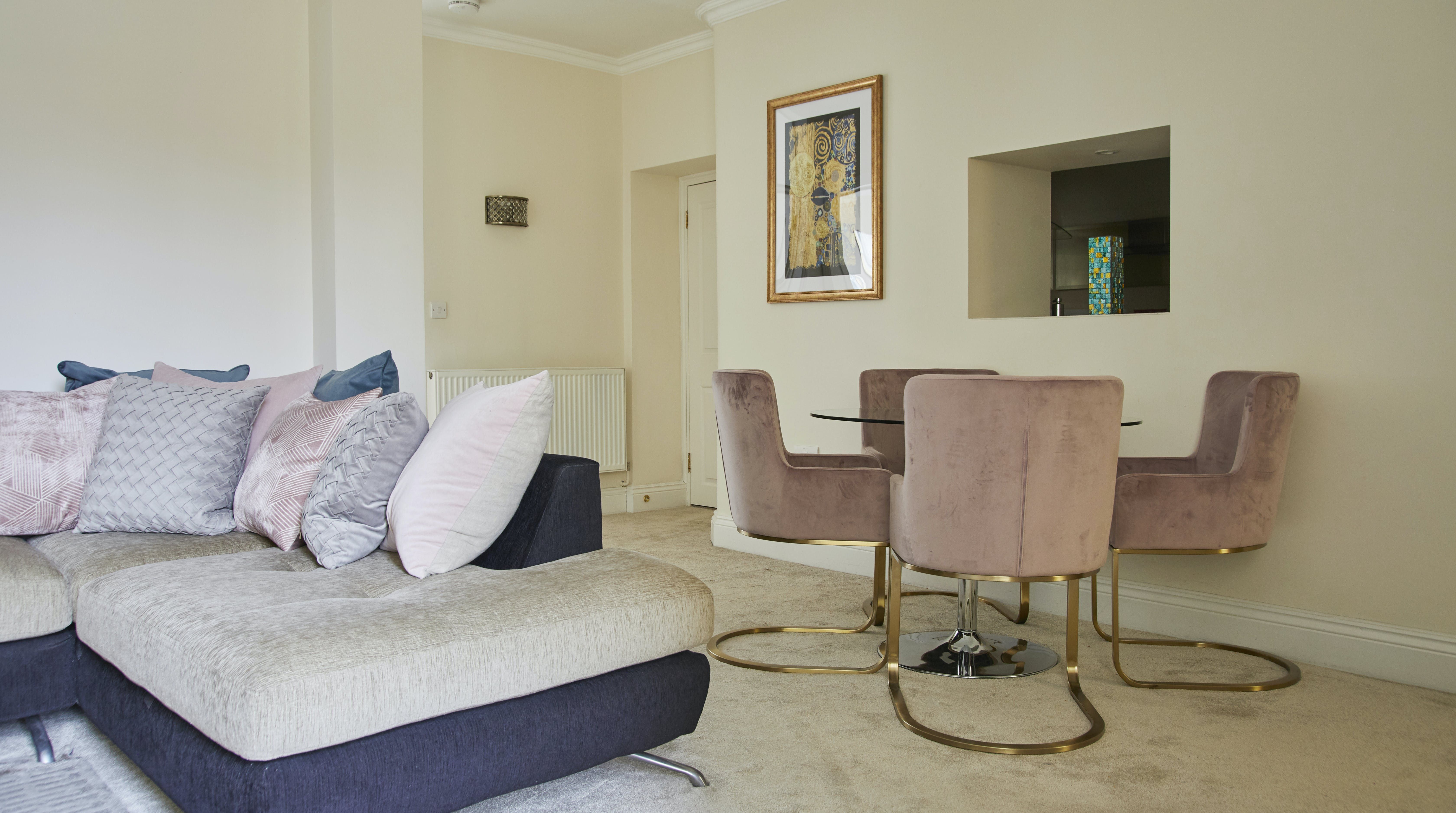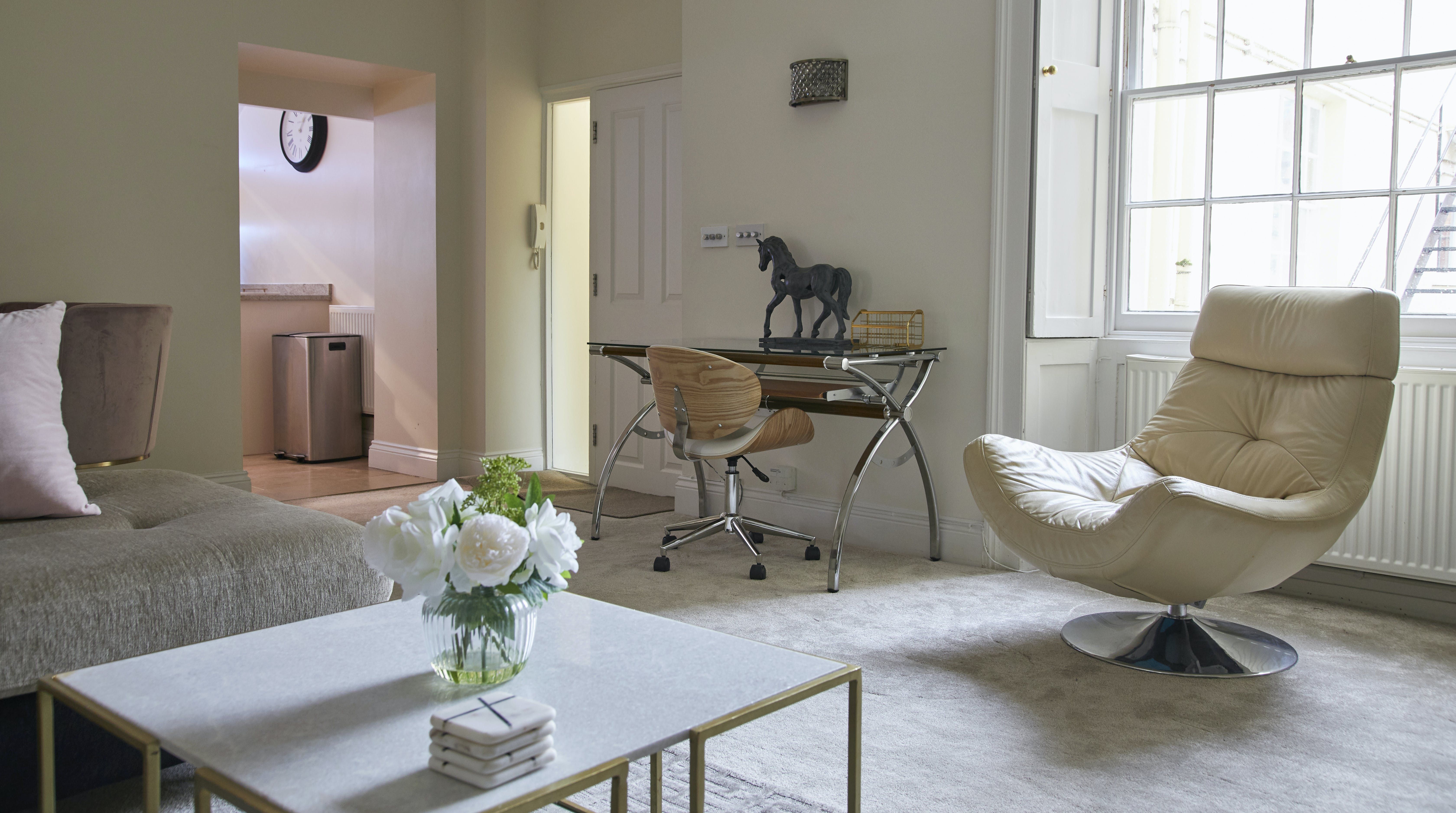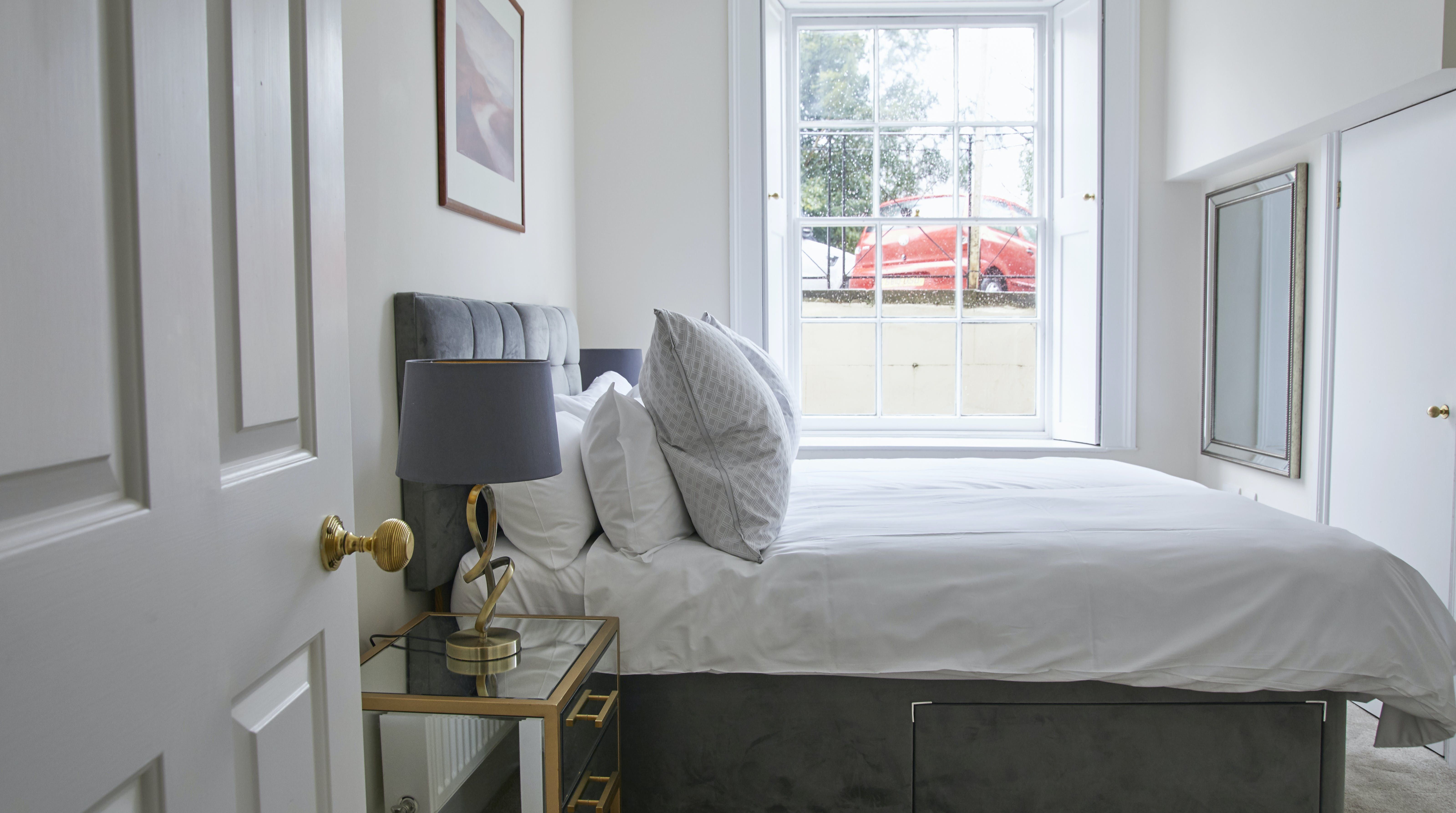 This gorgeous apartment couldn't sum up Cheltenham any better. Set in a typical Regency terrace (Grade II listed, no less), it's in a great location on the outskirts of town with easy access to the independent eateries of Montpellier and a pub restaurant at the end of the road. Smart and comfortable, it's got all the character of a period home plus modern luxuries like en-suite bathrooms and stylish furniture. Open the shutters and the home floods with natural light. There's a sociable living area with a comfy L-shaped sofa and a dining table for four, and there's a fully kitted-out kitchen just off it – complete with retro serving hatch. Both bedrooms are bright and spacious, and we love the master bedroom's twin windows. You'll have your own entrance and out the back, there's even a shared garden area and somewhere to store your bike.