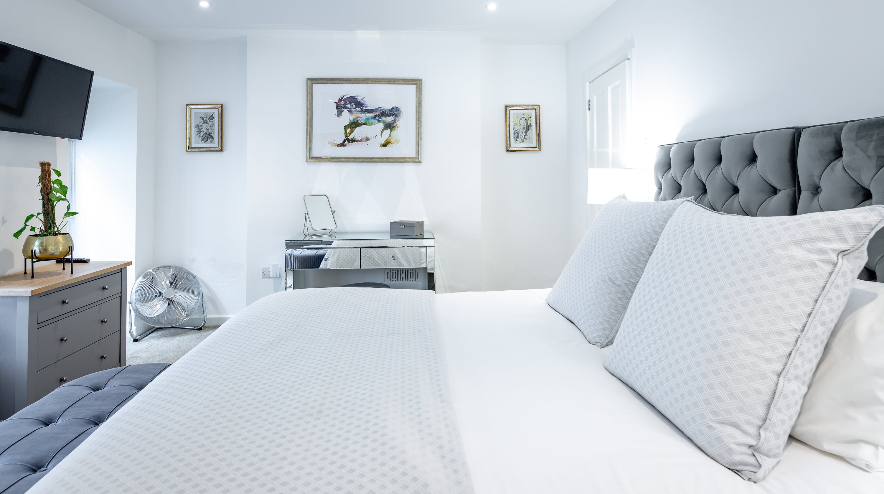 With a whole town of Regency architecture to admire, Cheltenham is full of listed buildings and has an altogether regal air. While it might be well known for the races, you don’t need to don your best hat when staying in this funky, modern home, eleven minutes from the town centre. With classic features like large Georgian windows in every room, but a playful and colourful decor, there’s a certain delight in the contrasts. We also love the mirrored dressing table in the bedroom, which feels more LA than Gloucestershire, but certainly adds to the VIP vibe. Its large bathroom boasts a huge freestanding tub as well as a separate rainfall shower – much better than the famous English drizzle. And if you're lucky enough to be here during a sunny spell, you’ve got your own private patio with a cute dining set – perfect for an alfresco glass of pinot grigio. If you’re in need of some more lush greenery, pack a picnic full of local deli goods and head out to Montpellier Gardens, a seven-minute walk from home.