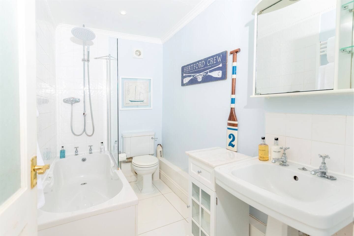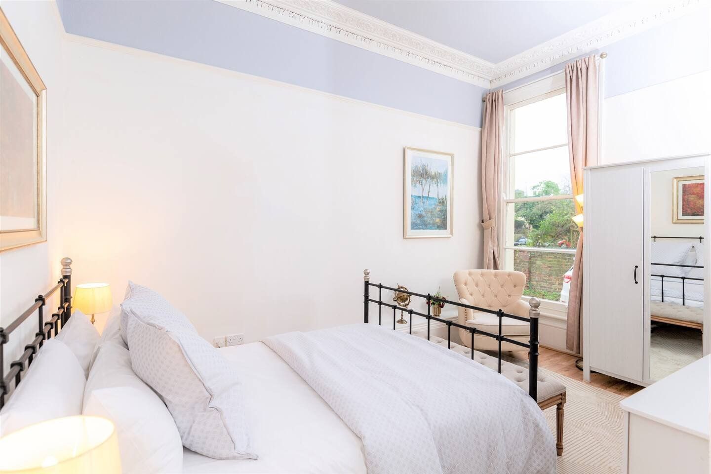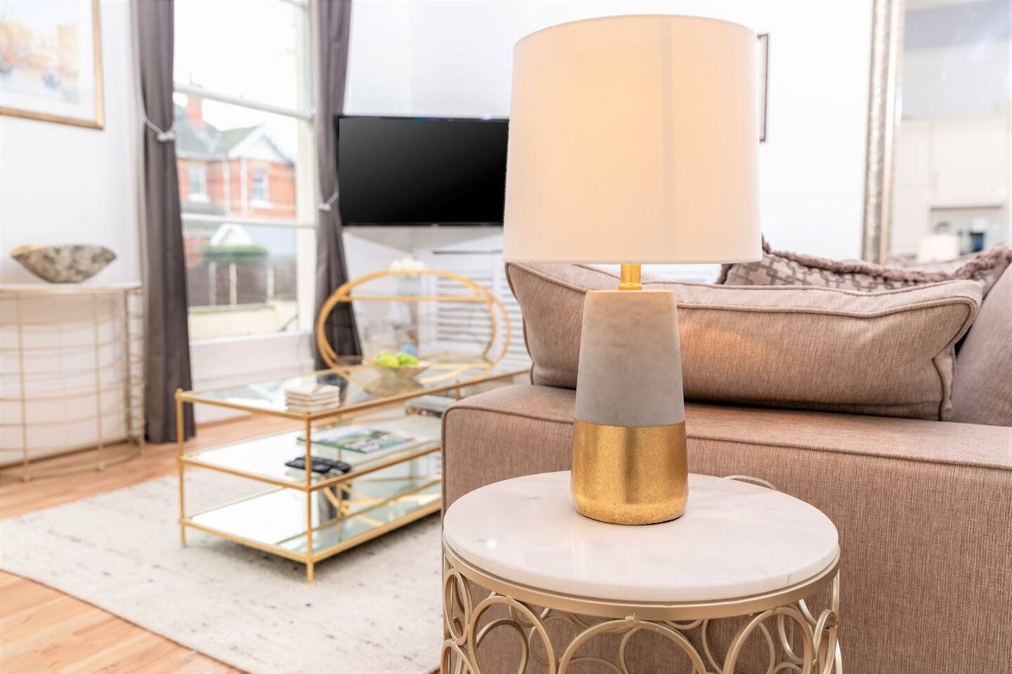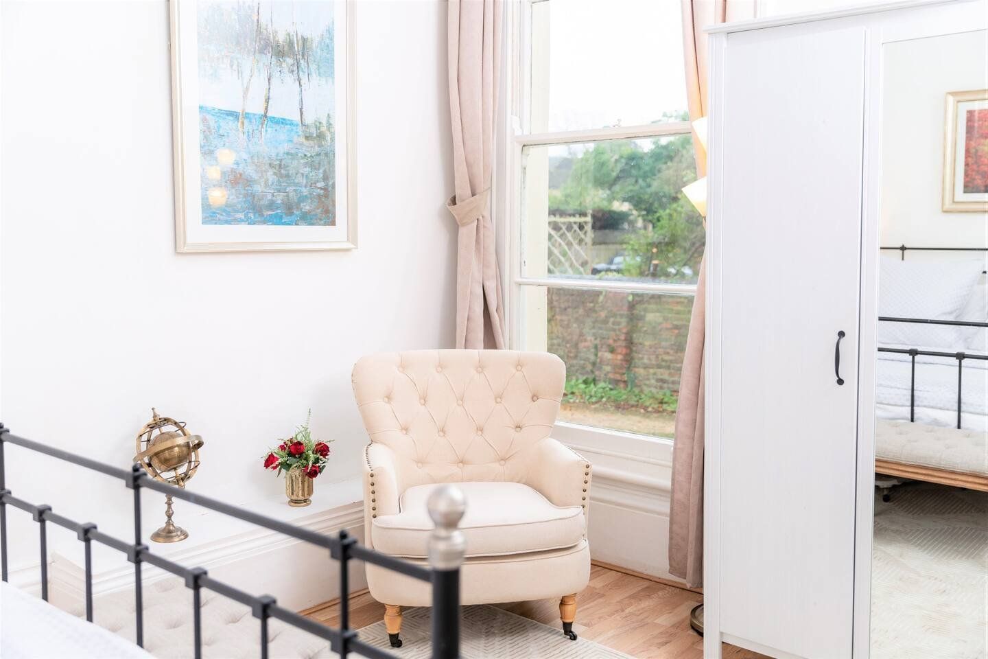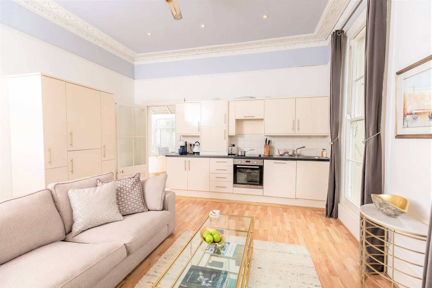 Situated in the heart of Cheltenham, this cute one-bedroom apartment provides the perfect base for those in town for a weekend escape or here on business during the week. Enter via the light and airy conservatory featuring an elegant dining area and a plush chaise longue which also doubles up as a study or spot to work from home if you're bringing a laptop. It's a beautifully soothing space to relax and unwind with a glass of wine in hand. The open plan living area and kitchen is equally as relaxing – decked out in a cream colour palette with warm tones, pale wooden flooring and sumptuous golden accents throughout. Huge floor-to-ceiling length windows invite in plenty of natural daylight and you'll have a grassy view of the lawn out at the front too. Perfectly positioned to explore Cheltenham and a wealth of pleasant eateries, pubs and shops on foot, the University of Gloucestershire is also just 3 kilometres from the apartment, while the Cheltenham Cricket club resdies right behind the property – only two minutes away.
