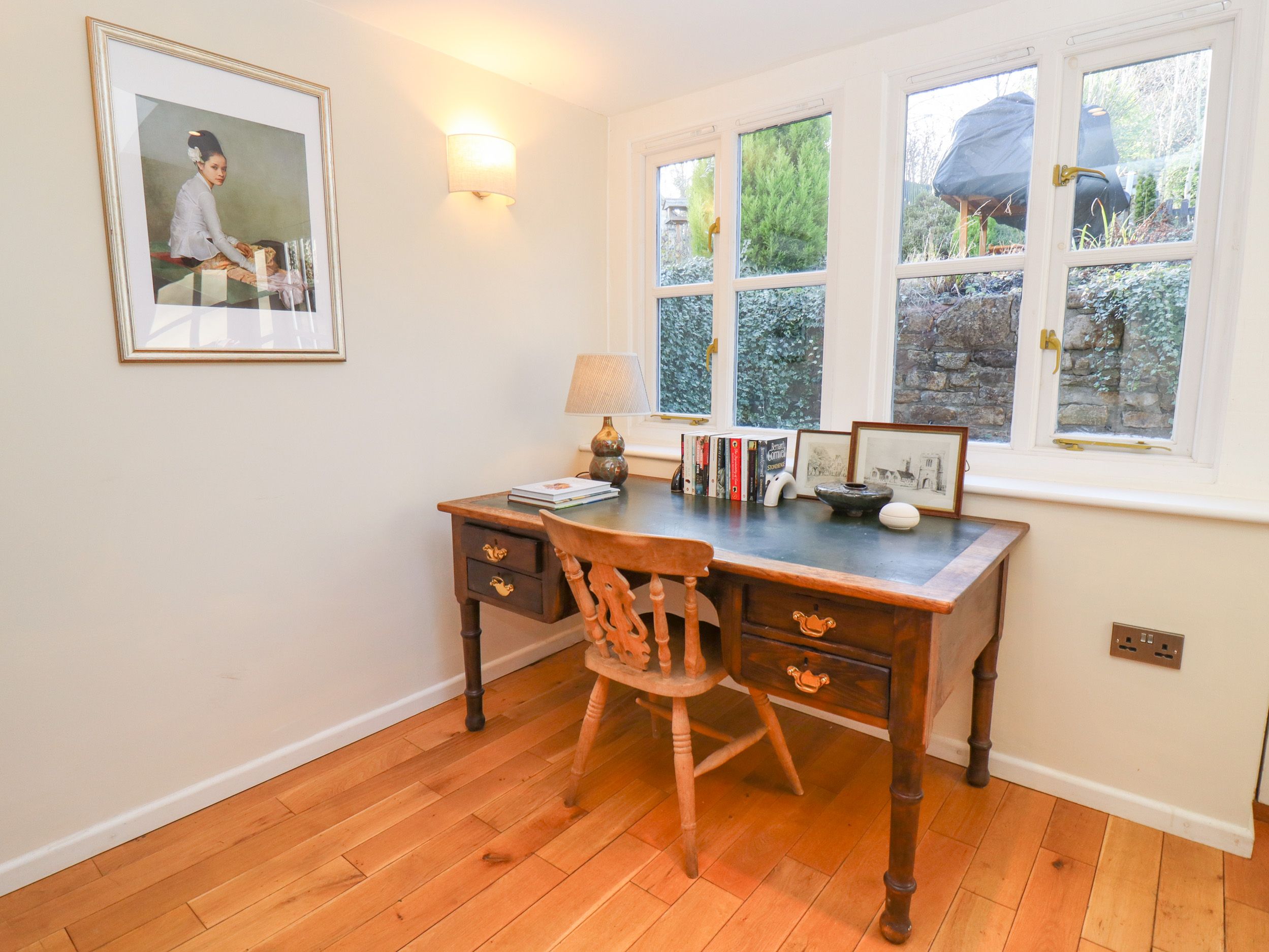 Holiday home Royal Oak Cottage dates back to the early 19th century and is a beautifully presented Grade ll listed property, sleeping four guests in two homely bedrooms, in Chipping Campden. Perfect for a small family, group of friends, or a couple seeking a relaxing break in the Cotswolds. Step up the four stone steps and in through the front door, which welcomes you into a small entrance hall, handy for storing your coats and shoes, before opening up into the bright and airy sitting room, where you and your loved ones can curl up on the four-seater sofa or one of the two armchairs and feel the warmth from the woodburning stove keeping you toasty whilst you watch a film on the Freeview TV, or get lost in the pages of a compelling novel. Rustle up delicious home-cooked meals with the help from the contemporary facilities in the kitchen, before retreating to the large wooden dining table and enjoy your meal with a glass of wine to toast to an exciting holiday that lies ahead. Take yourself off for some peace and quiet into the study room, which overlooks the garden and contains a cloakroom with a basin and WC. Outside, the enchanting, tiered garden offers a wonderful space to enjoy the sunshine and has additional seating, perfect for alfresco dining. The second tier has a pathway that weaves through leafy trees, shrubs, flowers and herbs where you can soak in the sun and enjoy total serenity. When the sun goes down, make your way up to the first-floor where you have a choice of two welcoming bedrooms, one with a king-size bed and the other with a double bed, both with ample hanging and storage space, which share the floor with the bathroom where you can indulge in a soak amongst the bubbles in the bath! In the morning, make yourself a steaming cup of coffee using the Nespresso coffee machine, before getting ready for the day.