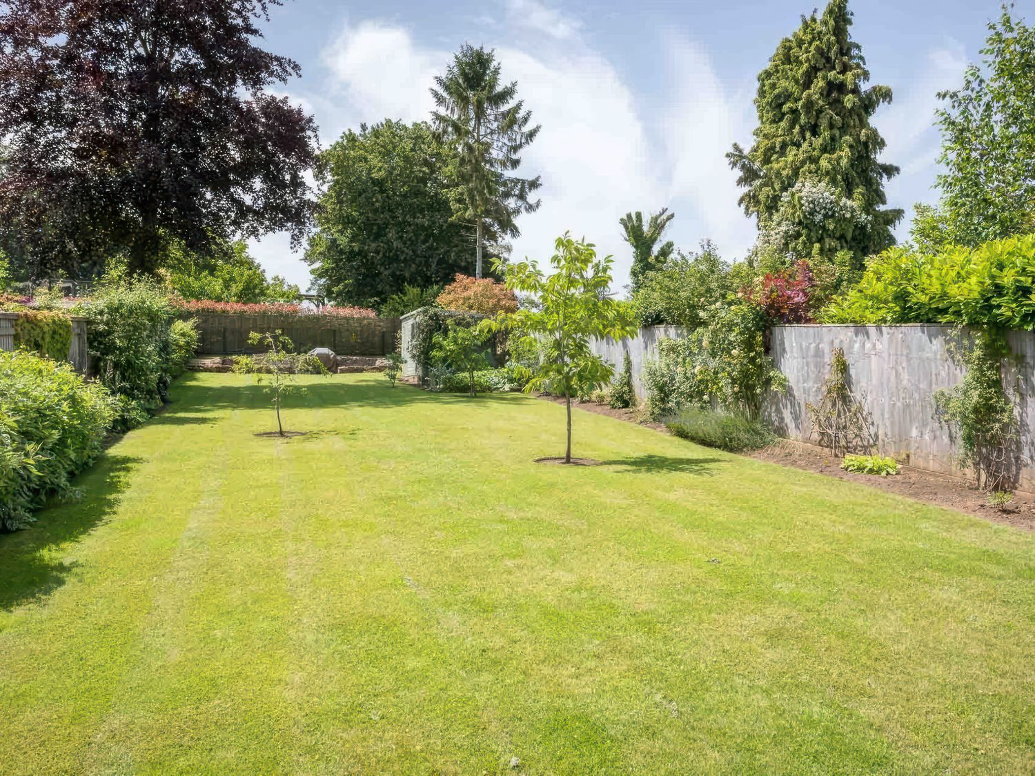 *The enclosed garden has stone steps leading from the lawn to the patio.