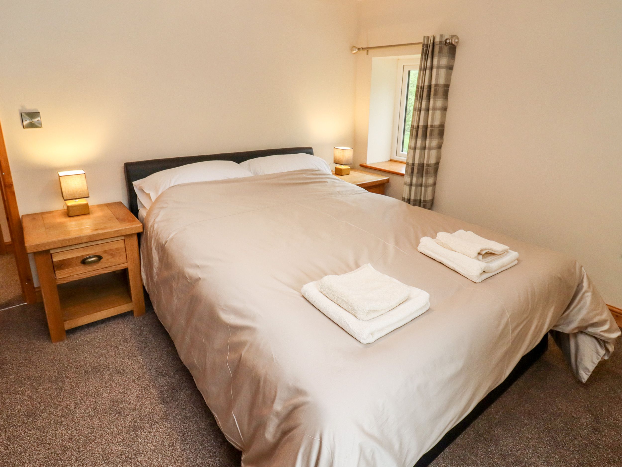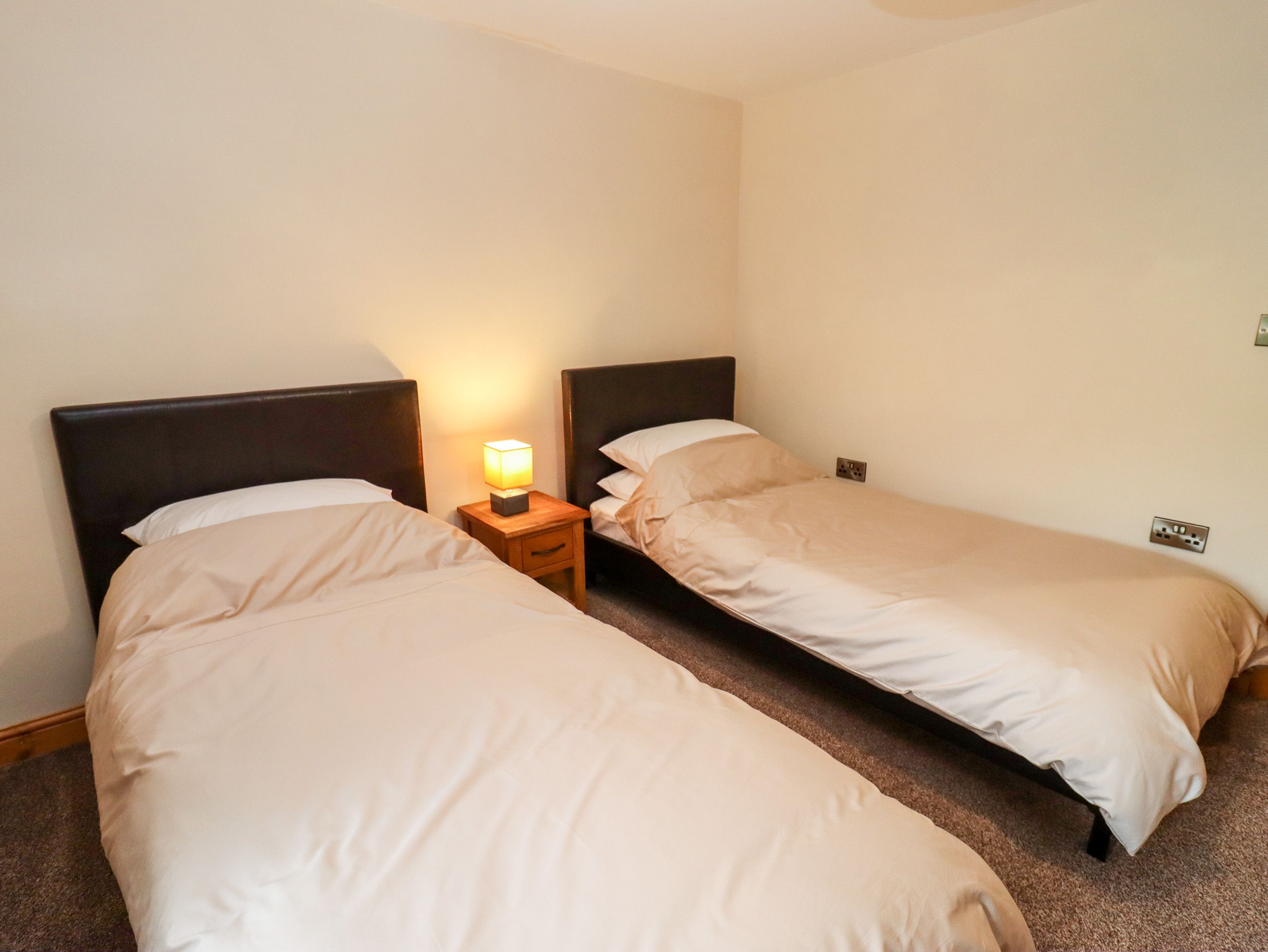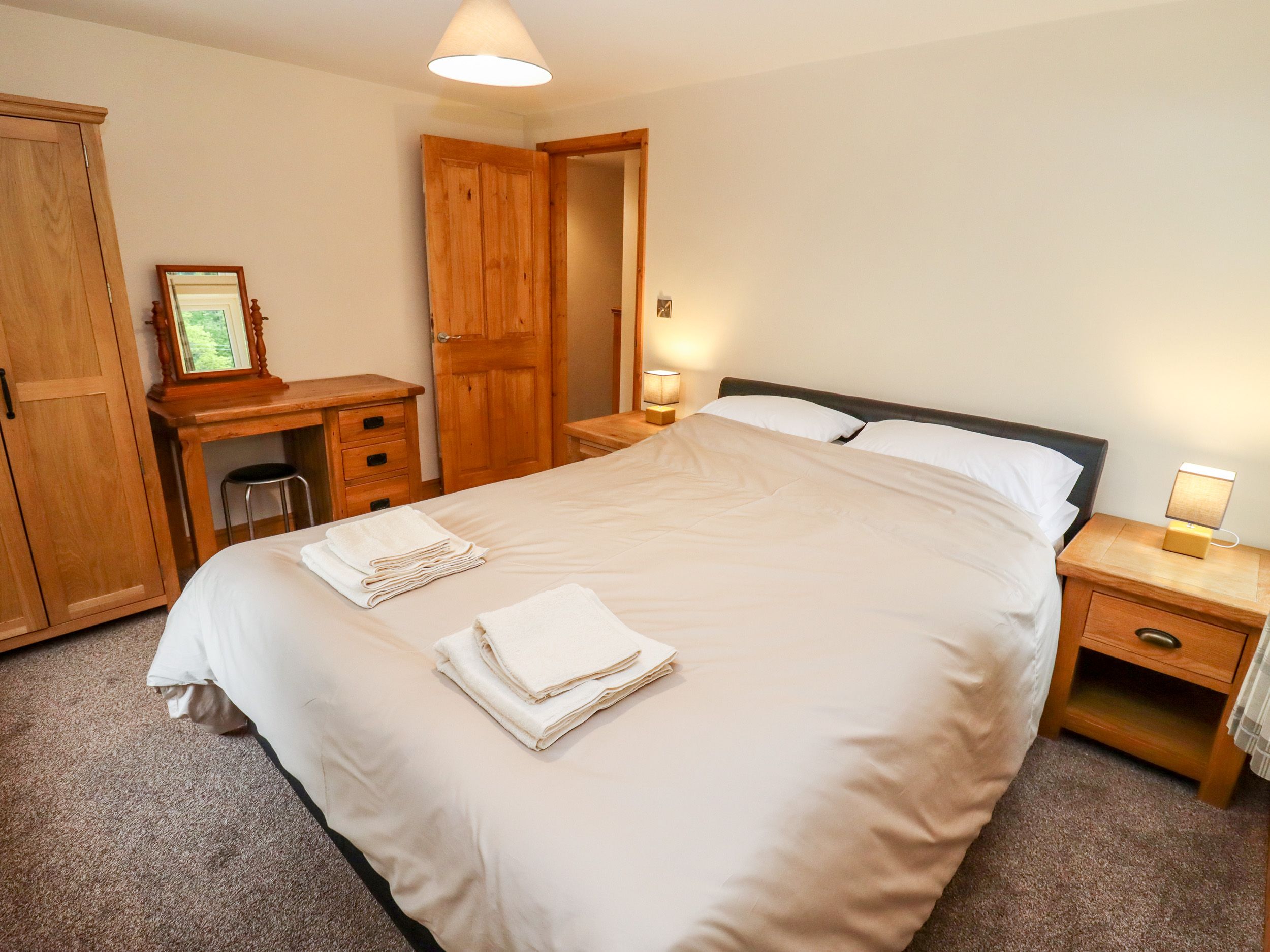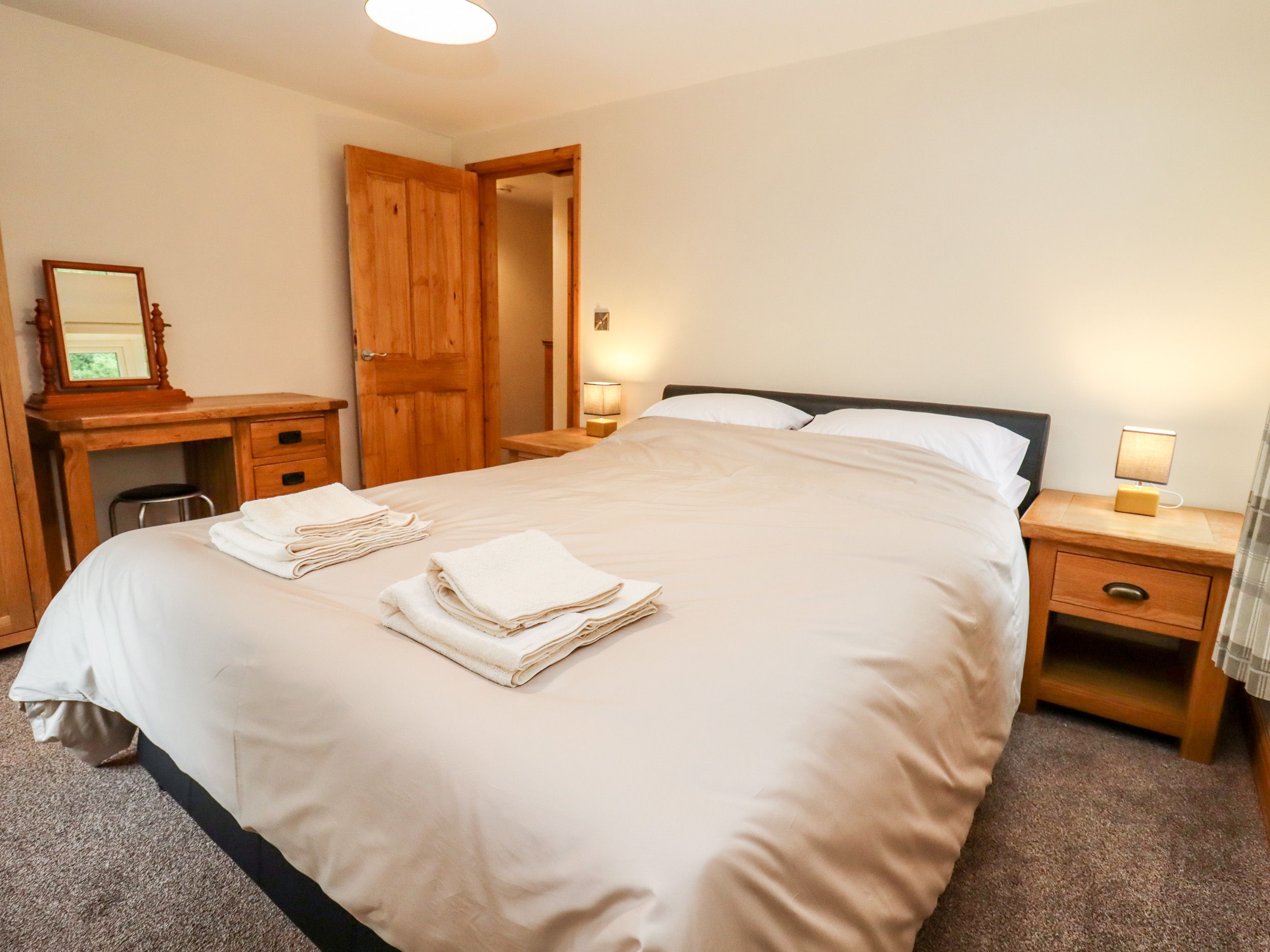 Three bedrooms: 1 x King size bed, 1 x twin, 1 x single. Bathroom with bath, shower over, basin and WC. Cloakroom with basin and WC. Spacious Kitchen. Utility. Living/dining room with electric woodburning stove Dining table with two benches and 2 fold chairs for extra seating.