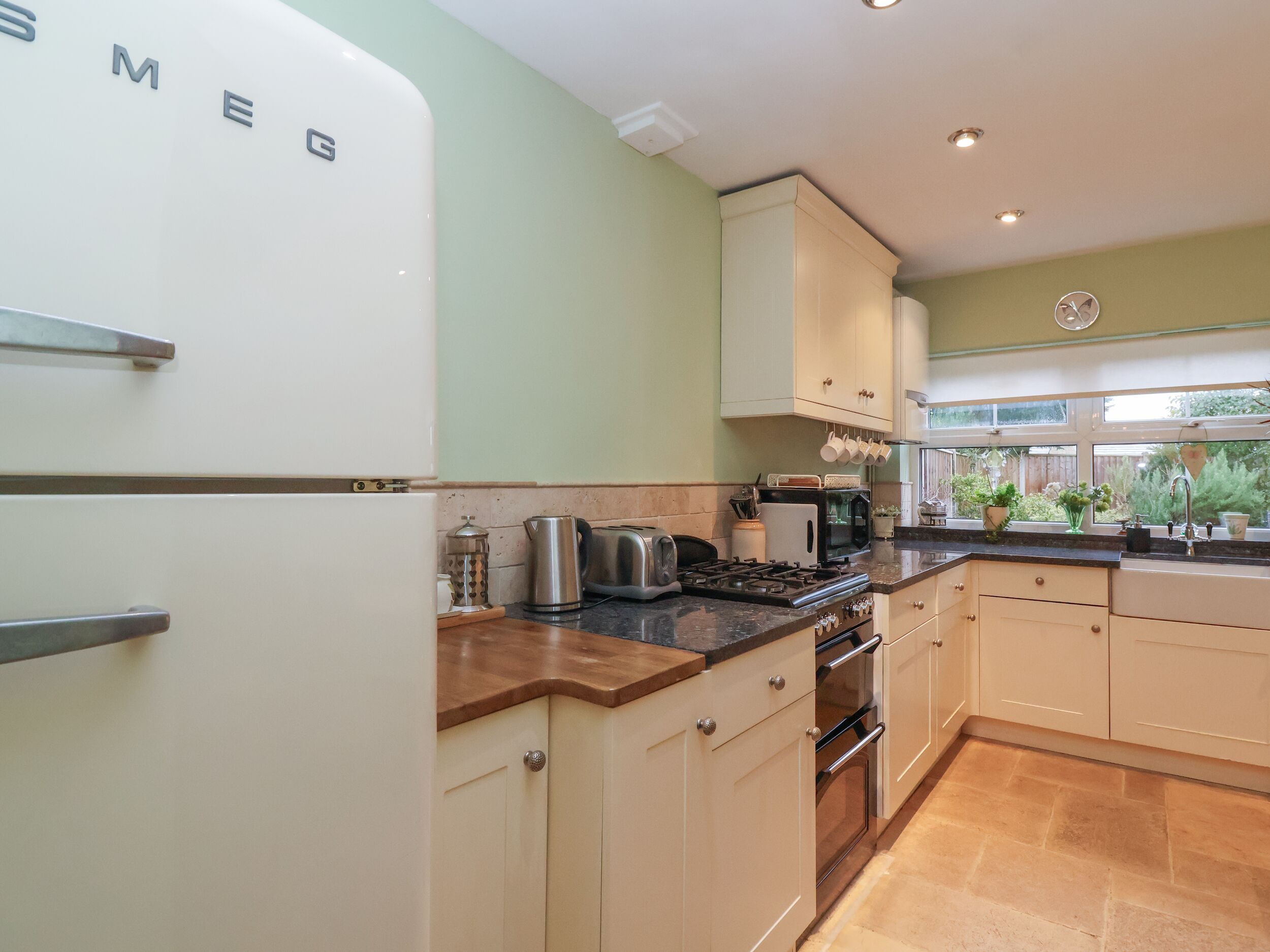 Holiday home Little Noo consists of a kitchen/diner with dining seating, range cooker, microwave, fridge/freezer, washing machine, kettle, and toaster, a dining room with dining seating and a sitting room with TV and woodburning stove. The bedrooms consist of a double, twin, and single. There is a bathroom with roll-top bath, handheld shower, and basin and WC. WiFi (maybe limited in some bedrooms), fuel, power, bed linen, and towels are included in the rent. Outside, there is a front and rear garden, both enclosed, with seating area and private driveway parking. Sorry, no pets and no smoking at this property. Little Noo is a wonderful escape to Gloucestershire, whatever time of year. Note: One small step up from dining room into the kitchen.