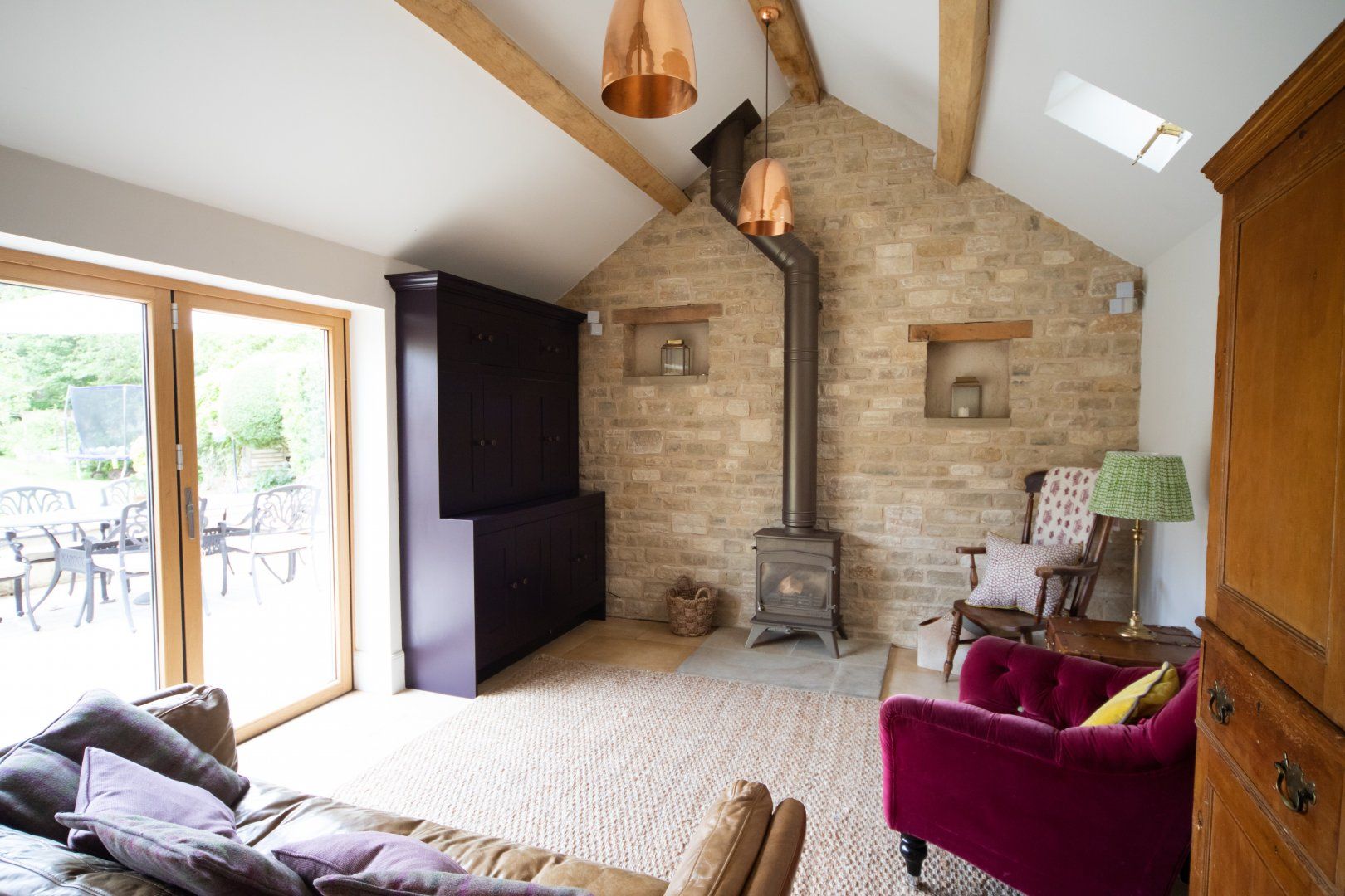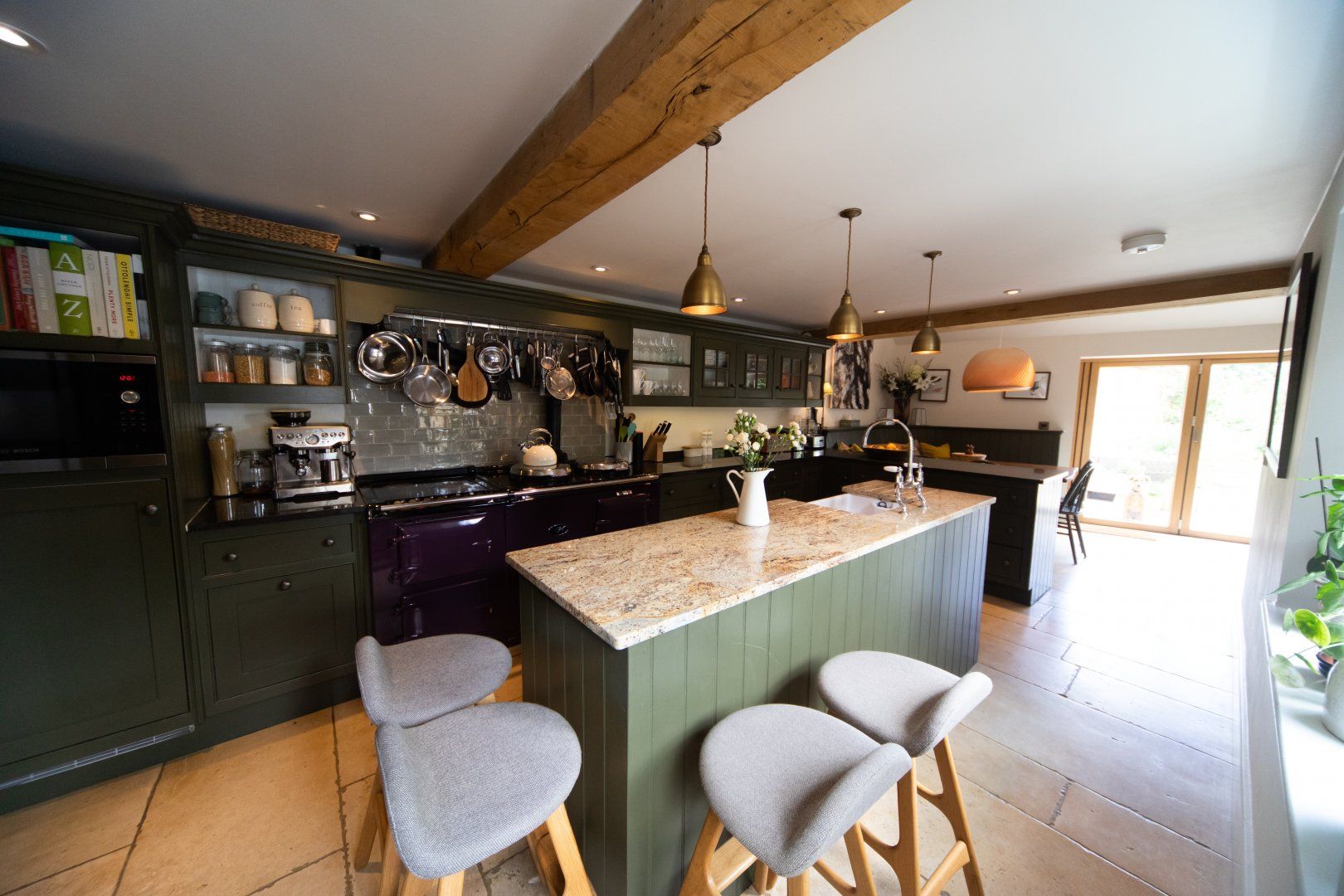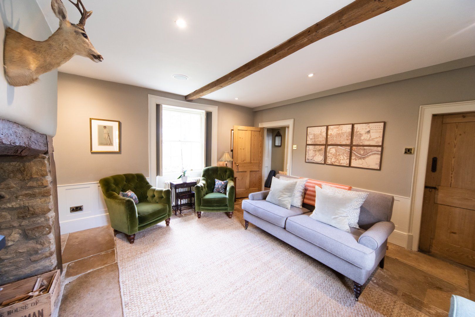 Built in 1690, a lot of history lies behind these stone brick walls. Traditional touches add a certain grandness to the home, with elegant roll-top sofas, log-burning fireplaces, and vaulted ceilings. But this home is certainly not without its mod-cons – think Sonos music speakers, electric vehicle charger, underfloor heating, super-fast wifi, Ooni pizza oven, the lot.