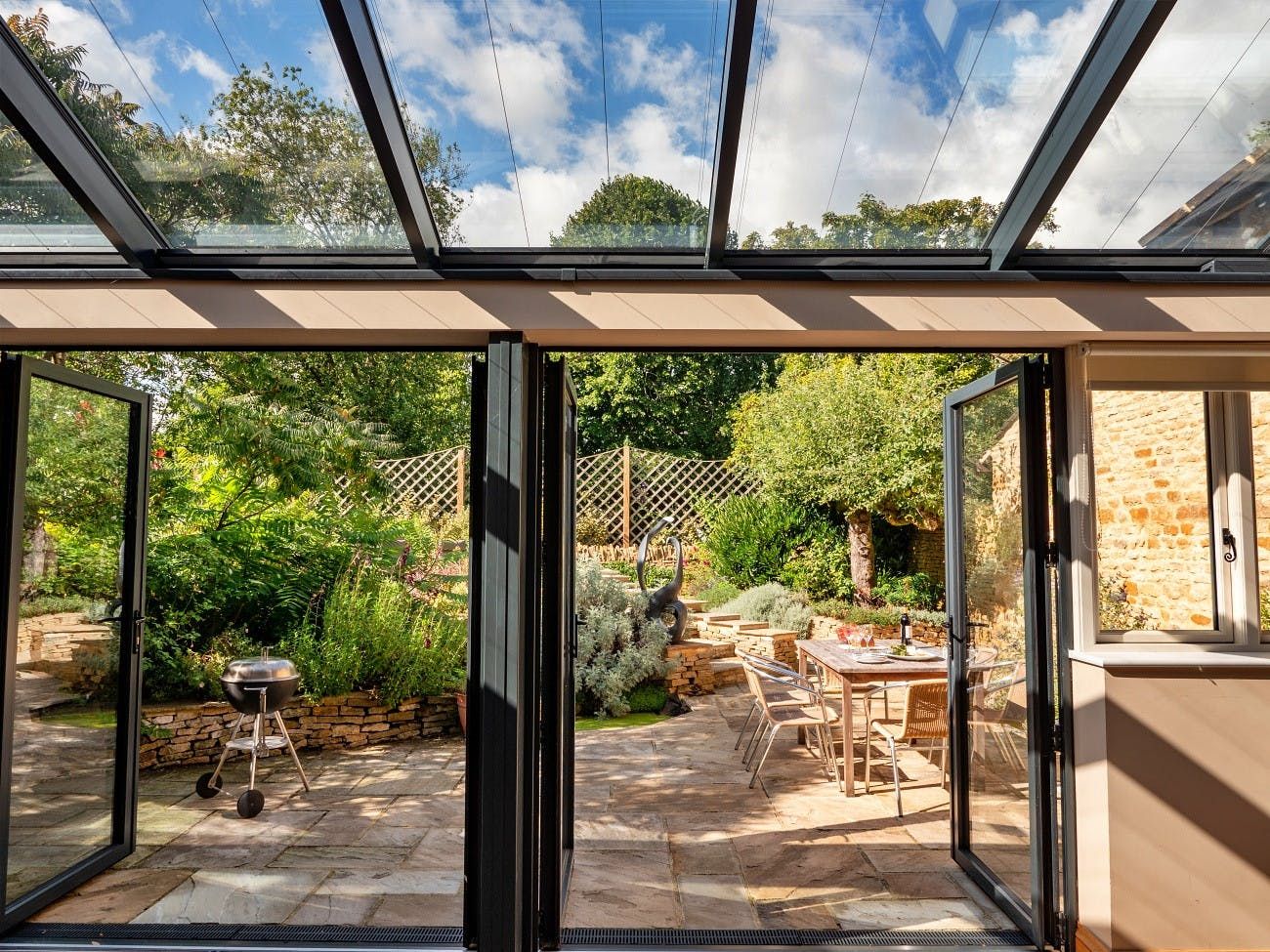 Perfect for a family or group of friends, this attractive cottage is an idyllic home-from-home in the Cotswolds. Doors lead from the dining area – with an extendable table – to a private south-facing terrace garden. It’s a tranquil spot with views of the distant hills and a table and chairs for alfresco dining in warm weather. Inside, the open-plan living area is cosy and inviting, centred around an open fire. During your stay, you’ll have access to a shared swimming pool and 5 acres of landscaped gardens.