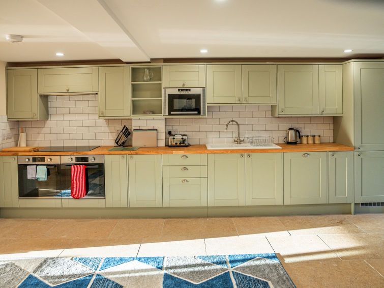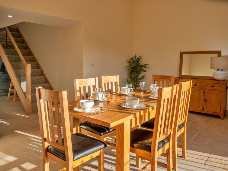 "Little Rissington - Barn Five", 5-room house 180 m2. Object suitable for 8 adults. Living room. 1 room with 2 beds. 1 room with 1 double bed. 1 room with 1 french bed. 1 room with 1 french bed. Kitchen (oven, dishwasher, toaster, kettle, microwave, freezer). 3 showers/WC. View of the garden.