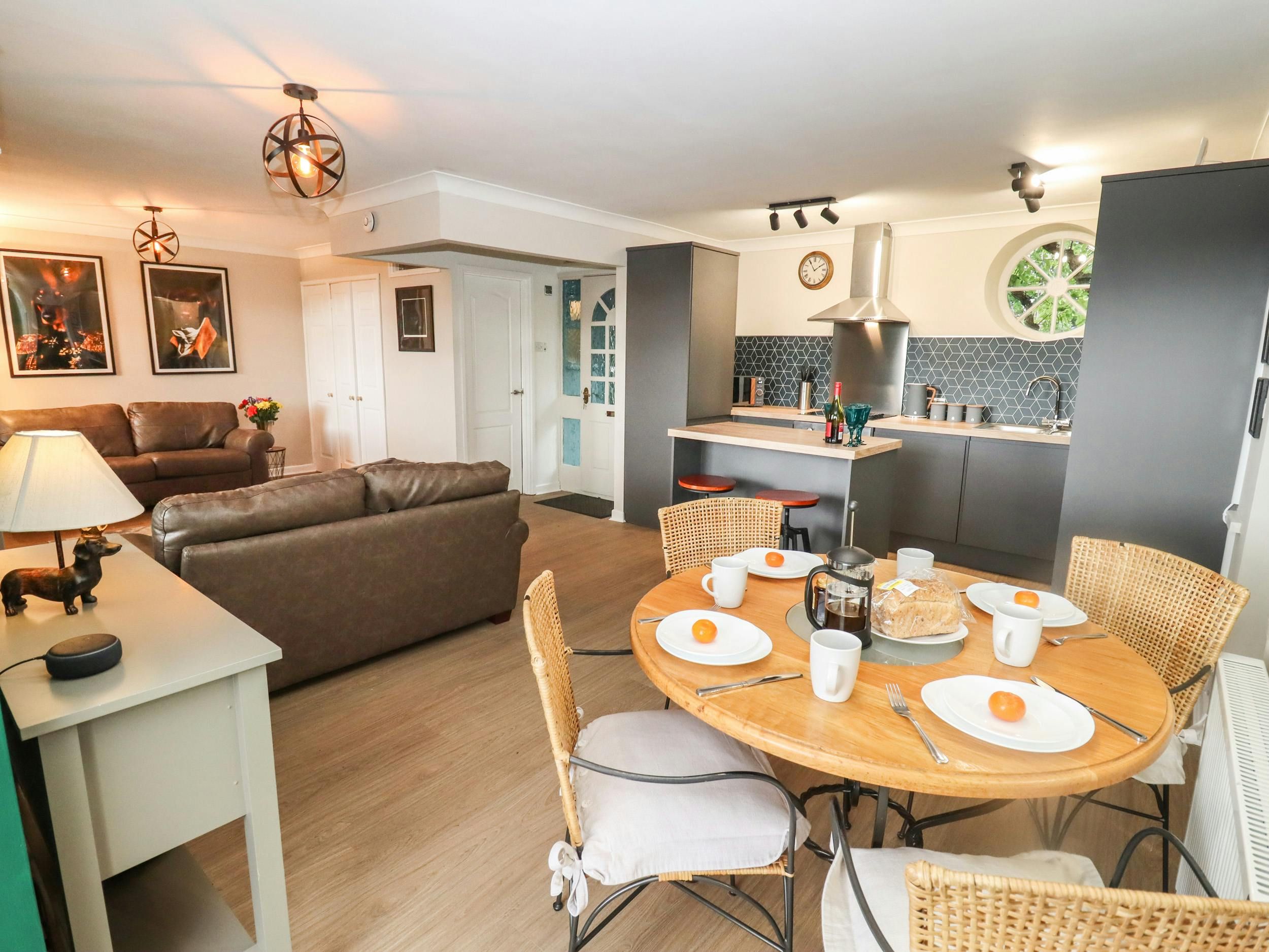 This comfortable apartment in Lydney is an excellent base for exploring the Forest of Dean and Gloucestershire. It’s on the edge of the Cotswolds Area of Outstanding Natural Beauty, too – charming villages and stunning countryside await. The apartment is contemporary and cosy, with an open-plan living, dining, and kitchen space at its heart. Staying here, you’ll have access to beautiful shared gardens with four ponds and delightful outdoor seating spots. Your four-legged friends can come too, so nobody has to miss out.
