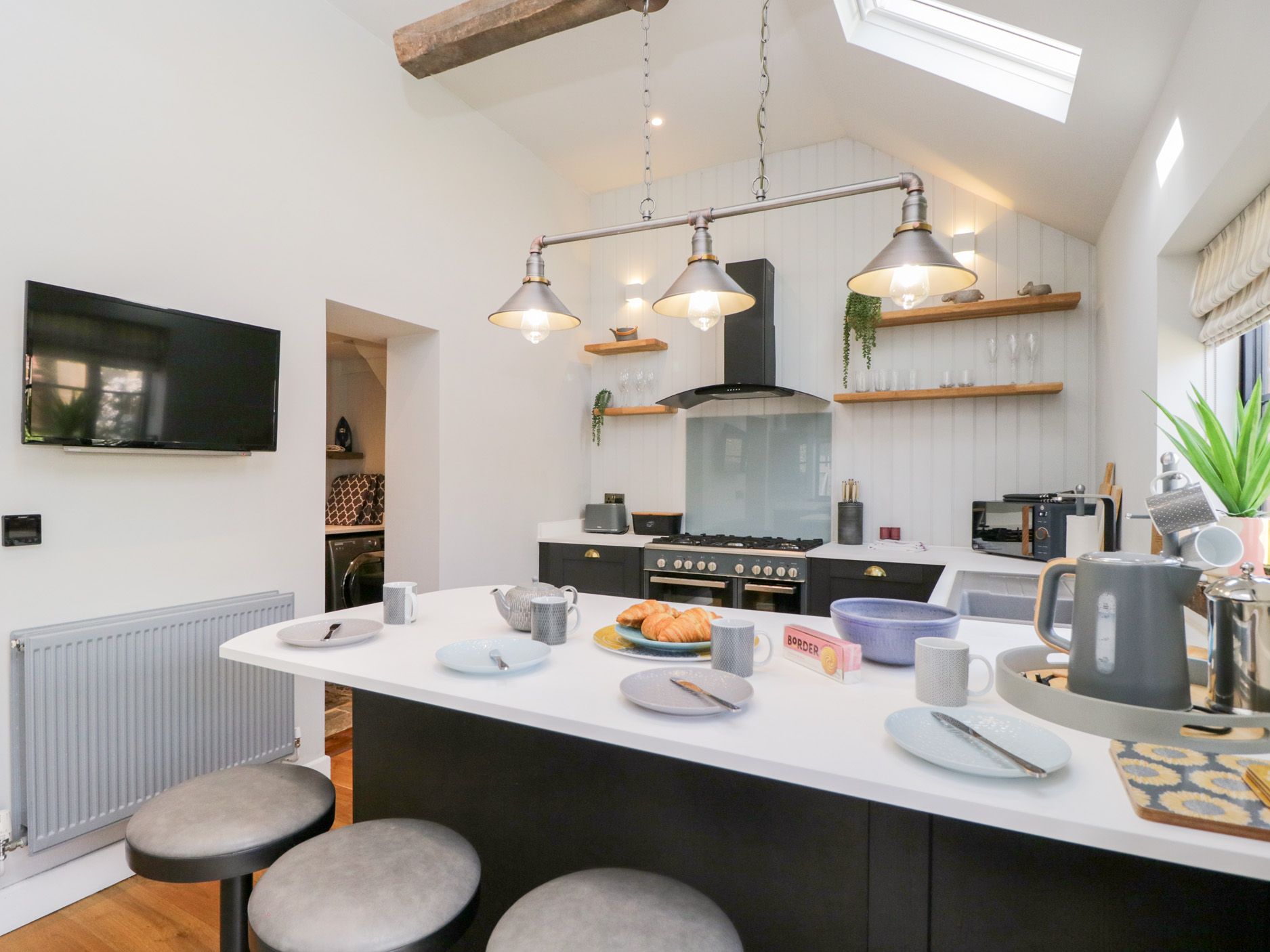 Accomodation Details Two bedrooms: 1 x king-size with en-suite walk-in rain shower, hand-held shower, freestanding bath, hand-held shower, basin and WC, 1 x double with en-suite walk-in shower, basin and WC. Cloakroom with basin, heated towel rail and WC. Kitchen. Utility. Sitting room with woodburning stove. Study