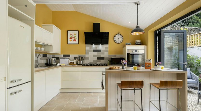Right by Minchinhampton Common, this 200-year-old stone cottage is right out of a postcard. The exposed stone fireplace and wood-burning stove make the living room extra cosy, and you'll find a reading snug with vaulted ceilings up on the second floor, seamlessly blending history with modernity. Outdoors, the private courtyard garden boasts space to sit out and share drinks and evening conversation. For an additional fee, two well-behaved dogs are welcome to join you here, and they'll love the surrounding countryside with its winding walking trails and picturesque valleys.