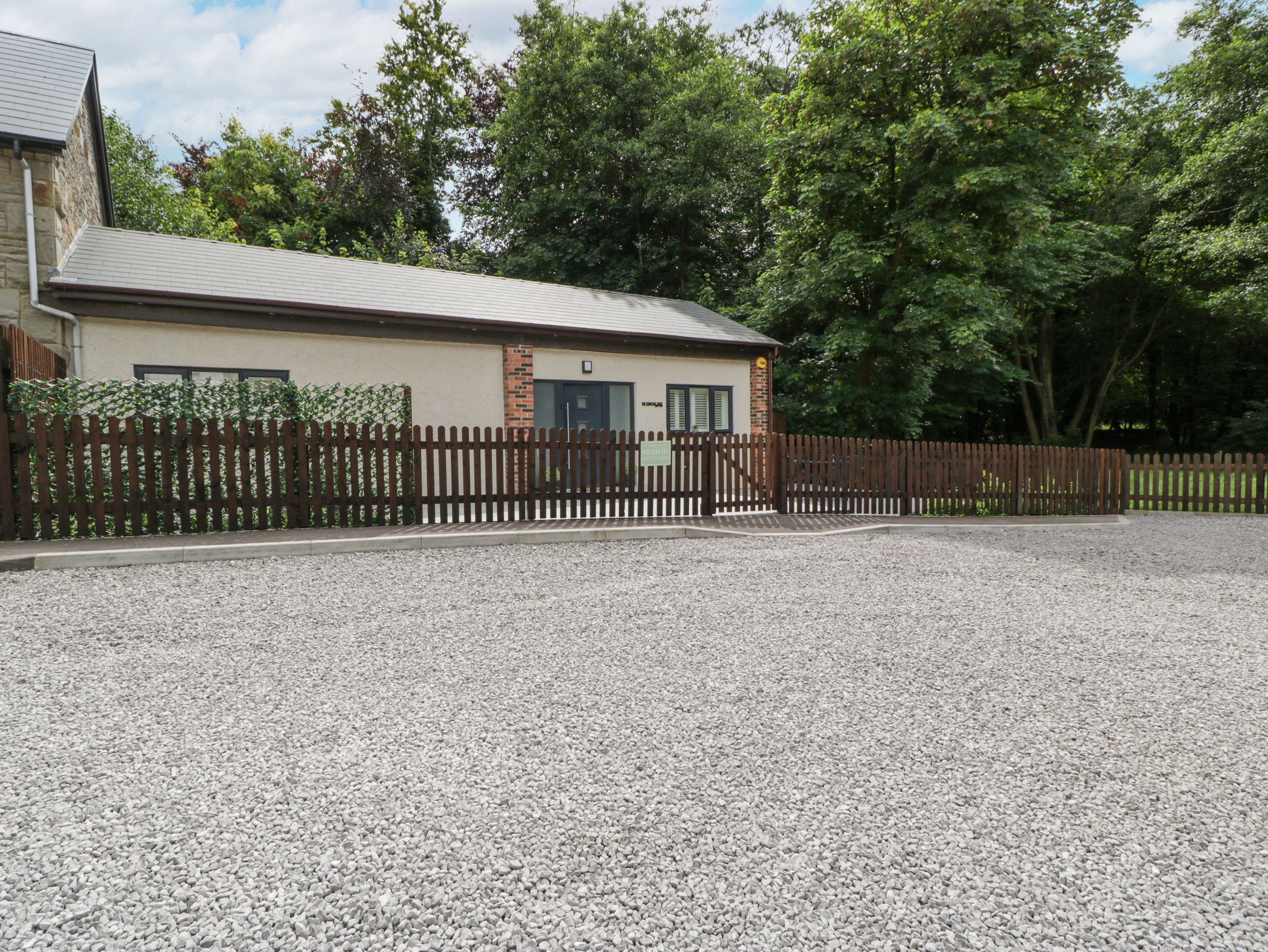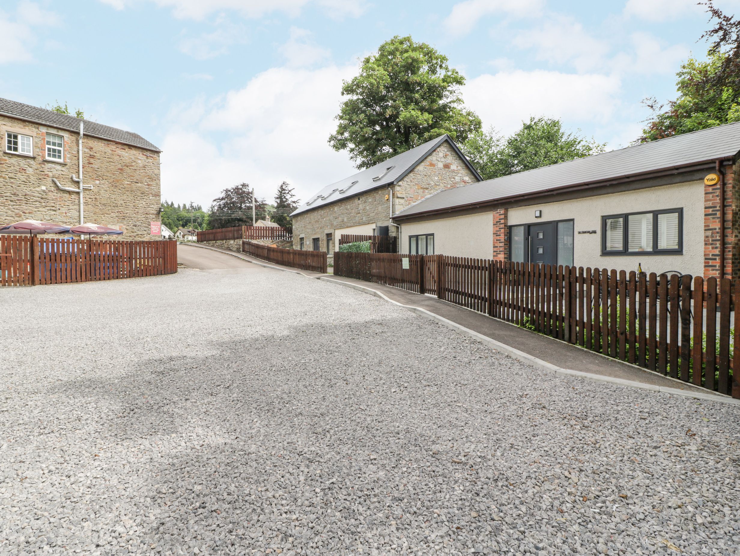 Holiday home The Fountain Lodge, a single-storey lodge, consists of an open-plan living space with a kitchen with an electric oven, induction hob, microwave, fridge/freezer, and dishwasher, a utility with washing machine and tumble dryer, a dining room with a table for four guests, and a sitting room with a Smart TV. The bedrooms consist of a double and a twin with en-suite shower rooms. Outside, there is an enclosed patio with furniture, a storage shed, and ample parking in the nearby pub car park. Fuel, power, bed linen and towels are all included in the rent. Sorry, this is a pet-free, smoke-free property. You can find a shop and pub within 0.1 miles. Visit The Fountain Lodge for your next adventure. Note: Bikes are left in storage at your own risk; please bring your own locks to secure equipment.