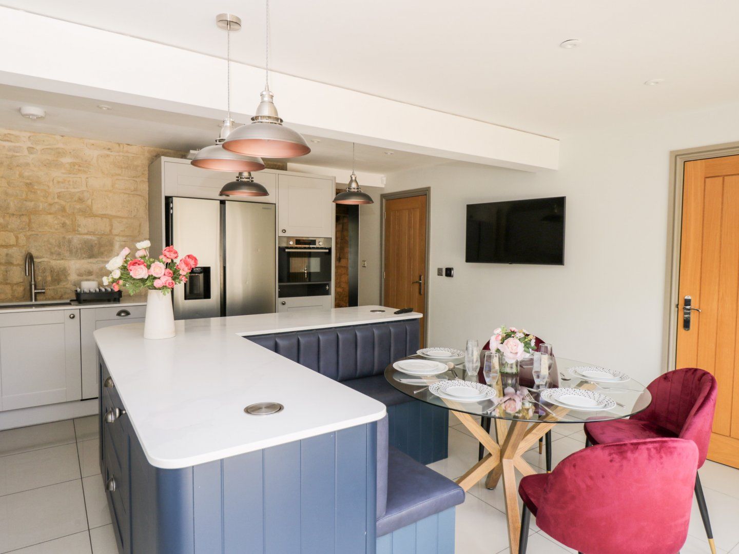 Amenities Gas central heating and underfloor heating (ground-floor only). Electric oven and hob, microwave, fridge/freezer, washing machine, tumble dryer, dishwasher. Smart TV, TV, WiFi. Fuel and power inc. in rent. Bed linen and towels inc. in rent. Travel cot and highchair available. Off-road parking for 3 cars. Enclosed rear patio with furniture. One well behaved dog welcome. No smoking. Shop 1.3 miles, pub 0.9 miles. PLEASE NOTE OWNER ONLY ACCEPTS WEEK LONG BOOKINGS DURING CHELTENHAM FESTIVAL WEEK.