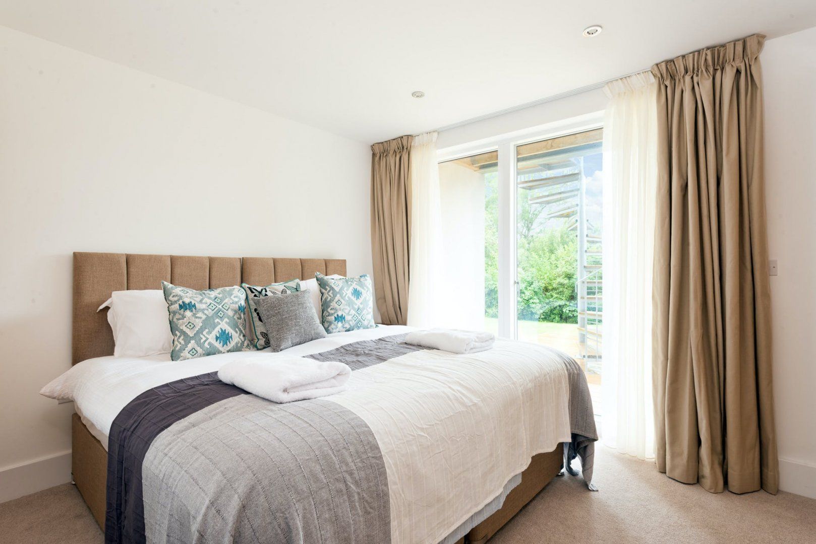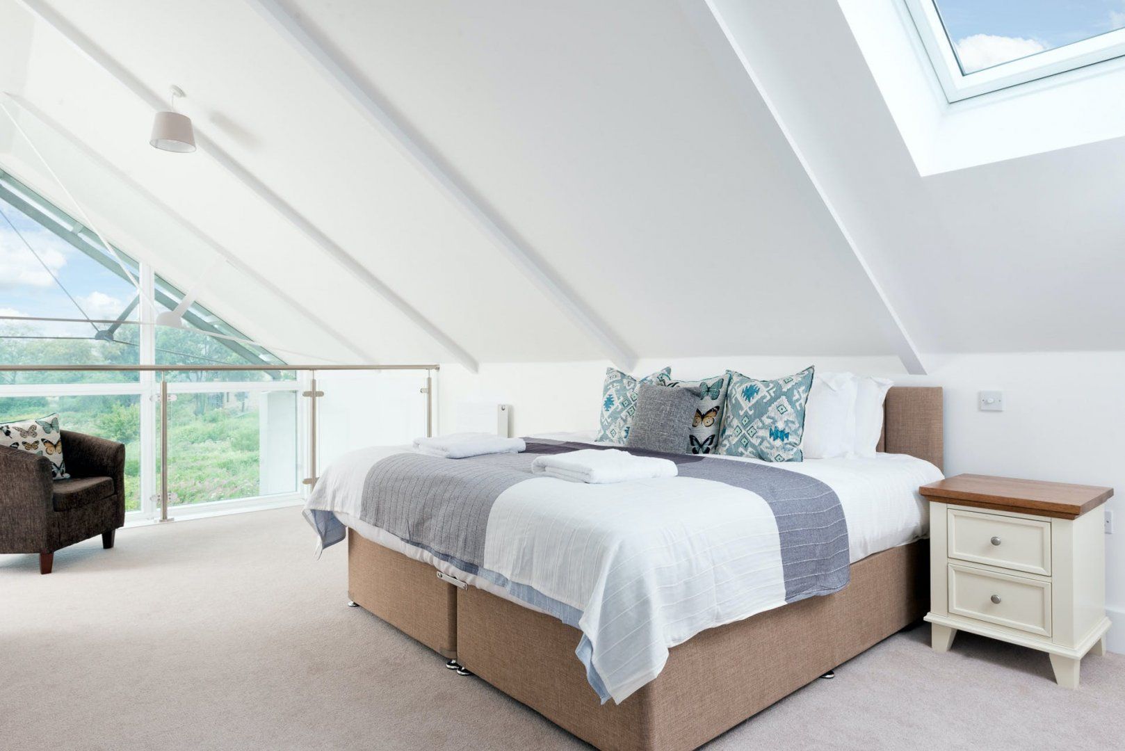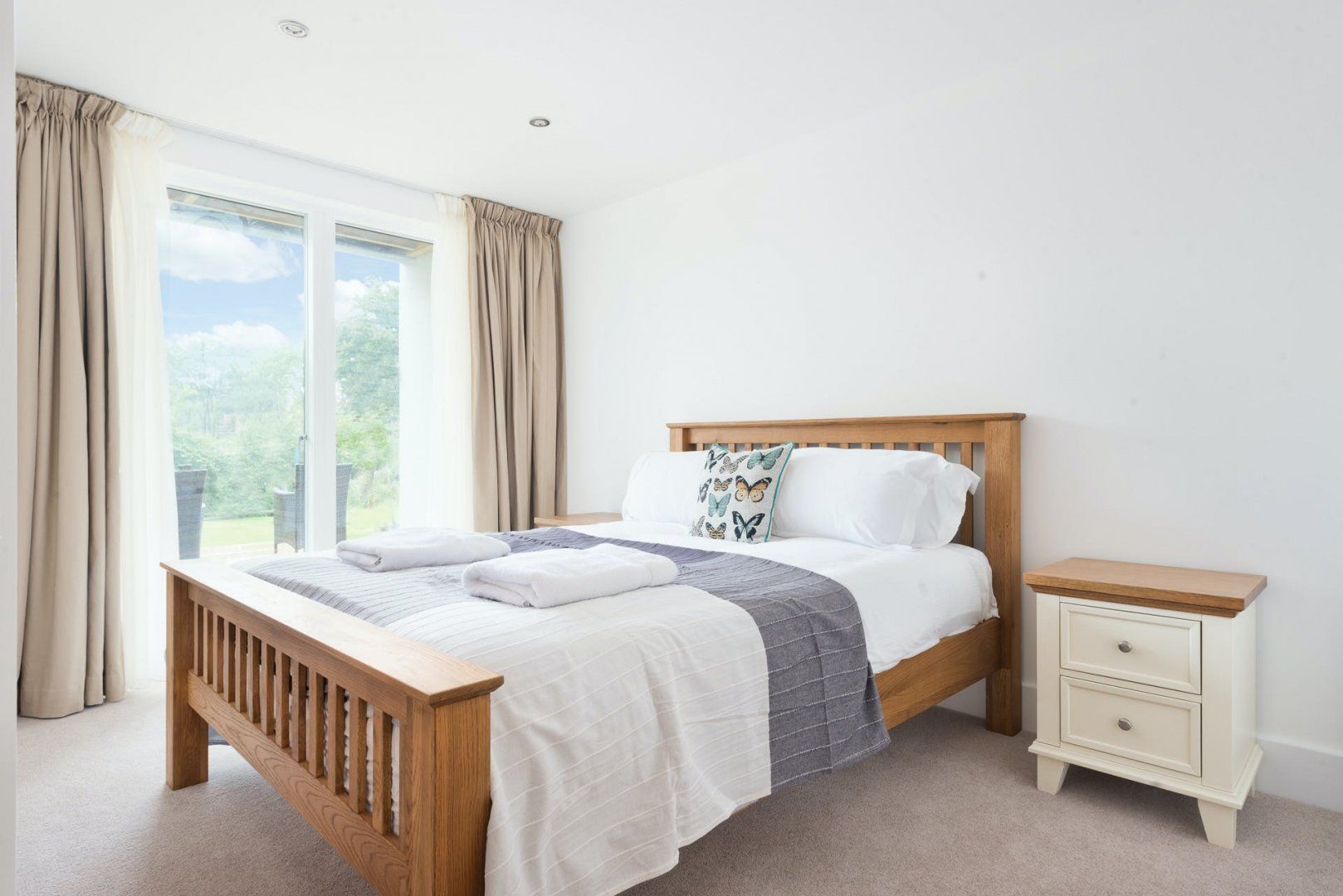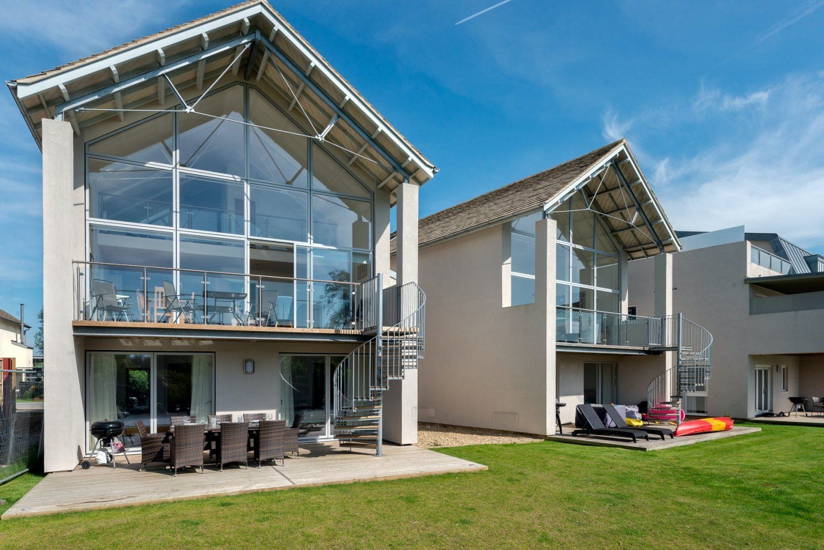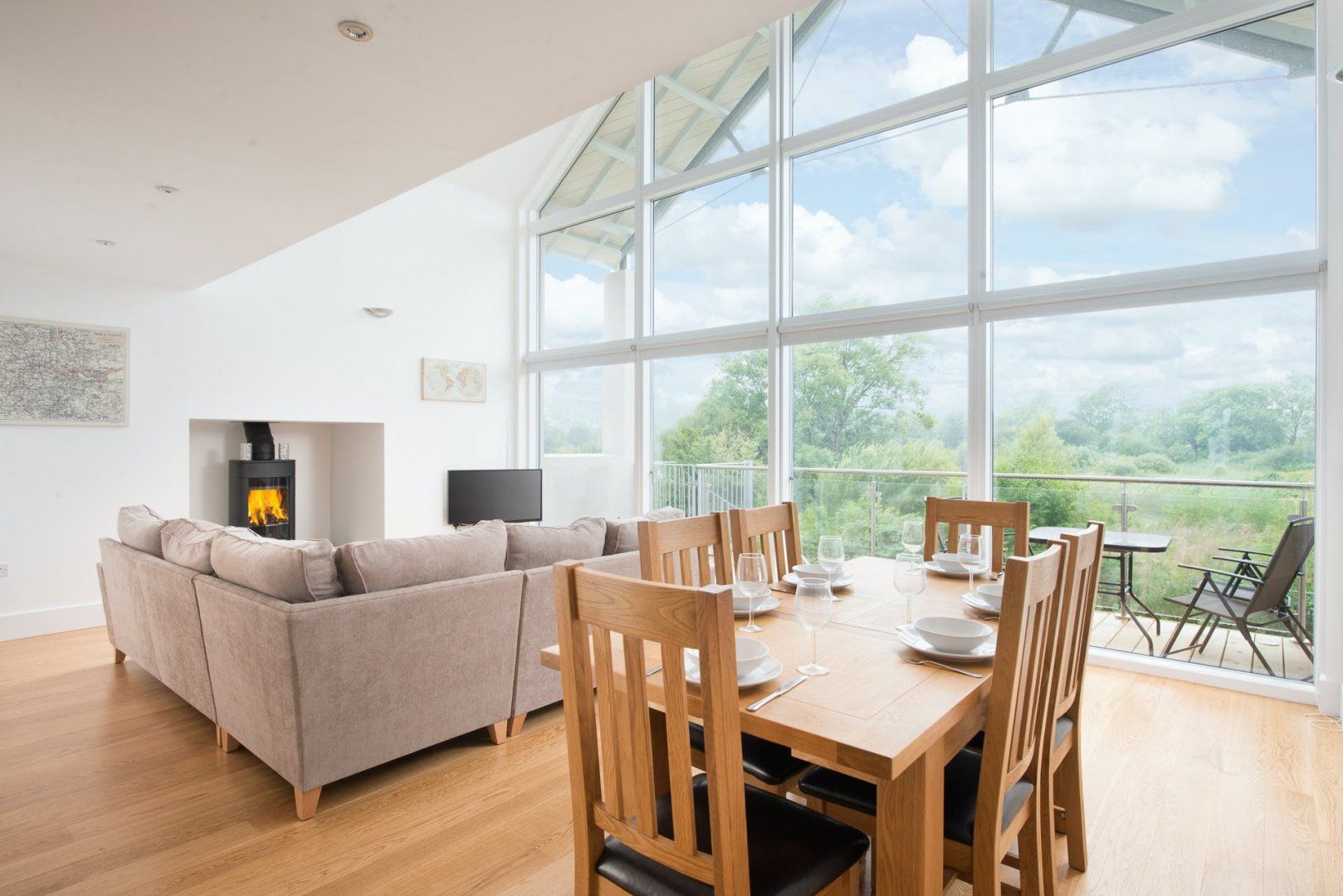 This home is located in a Nature Reserve holiday park overlooking Swillbrook Lake. With a decked terrace and a glass-panelled living room and dining area, natural daylight floods the space and frames the views across the lakes. There's one bathroom per bedroom here, giving guests ample space to spend moments in privacy. It's worth noting, however, the main bedroom is located on the second-floor mezzanine, which is an open plan to the living area below. The private estate offers a stunning natural setting amidst lakeside trails, rivers and hundreds of acres of green space. Plus, you'll have access to an on-site spa with swimming pools, a sauna, a gym, tennis courts and a restaurant, only a five-minute walk away.