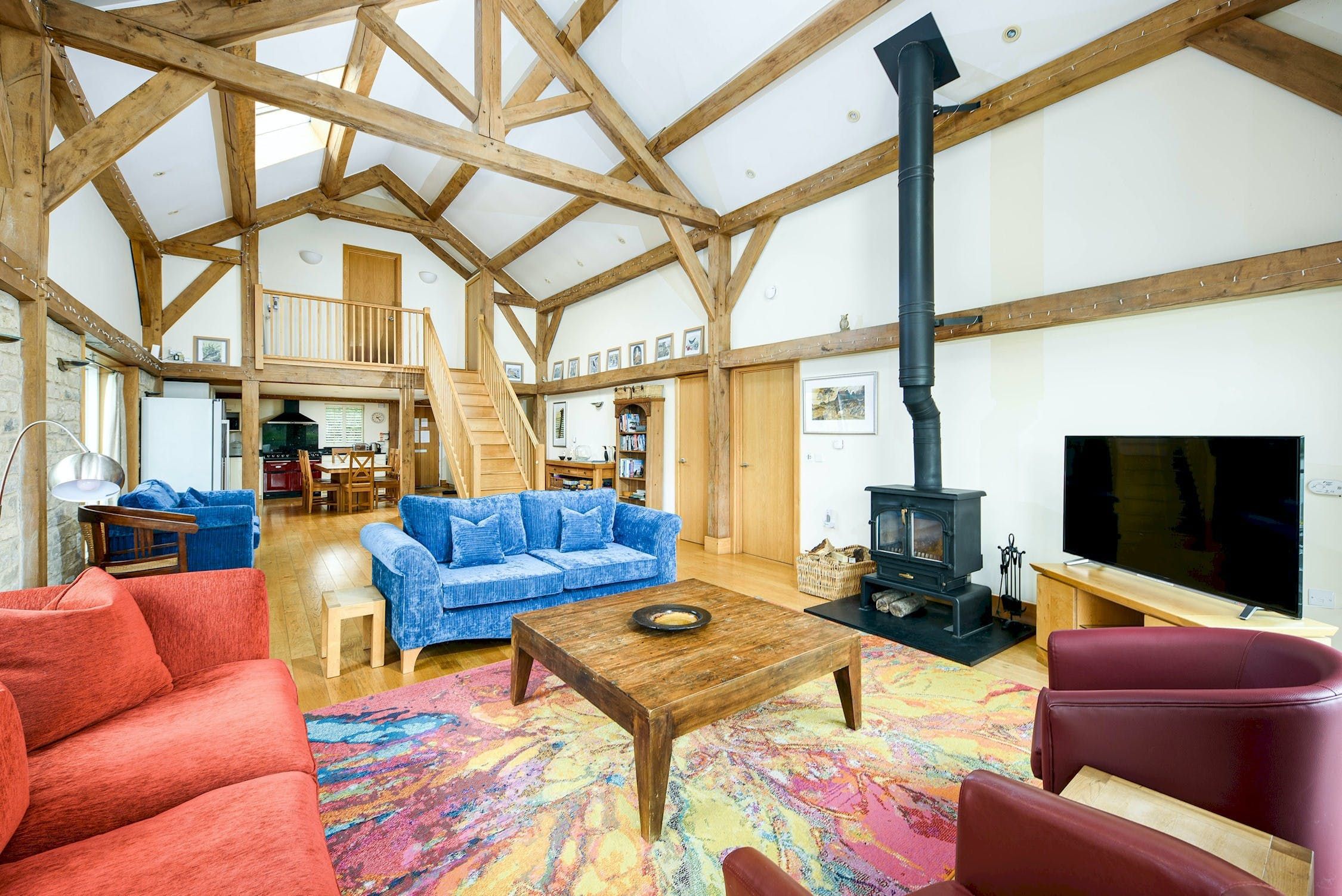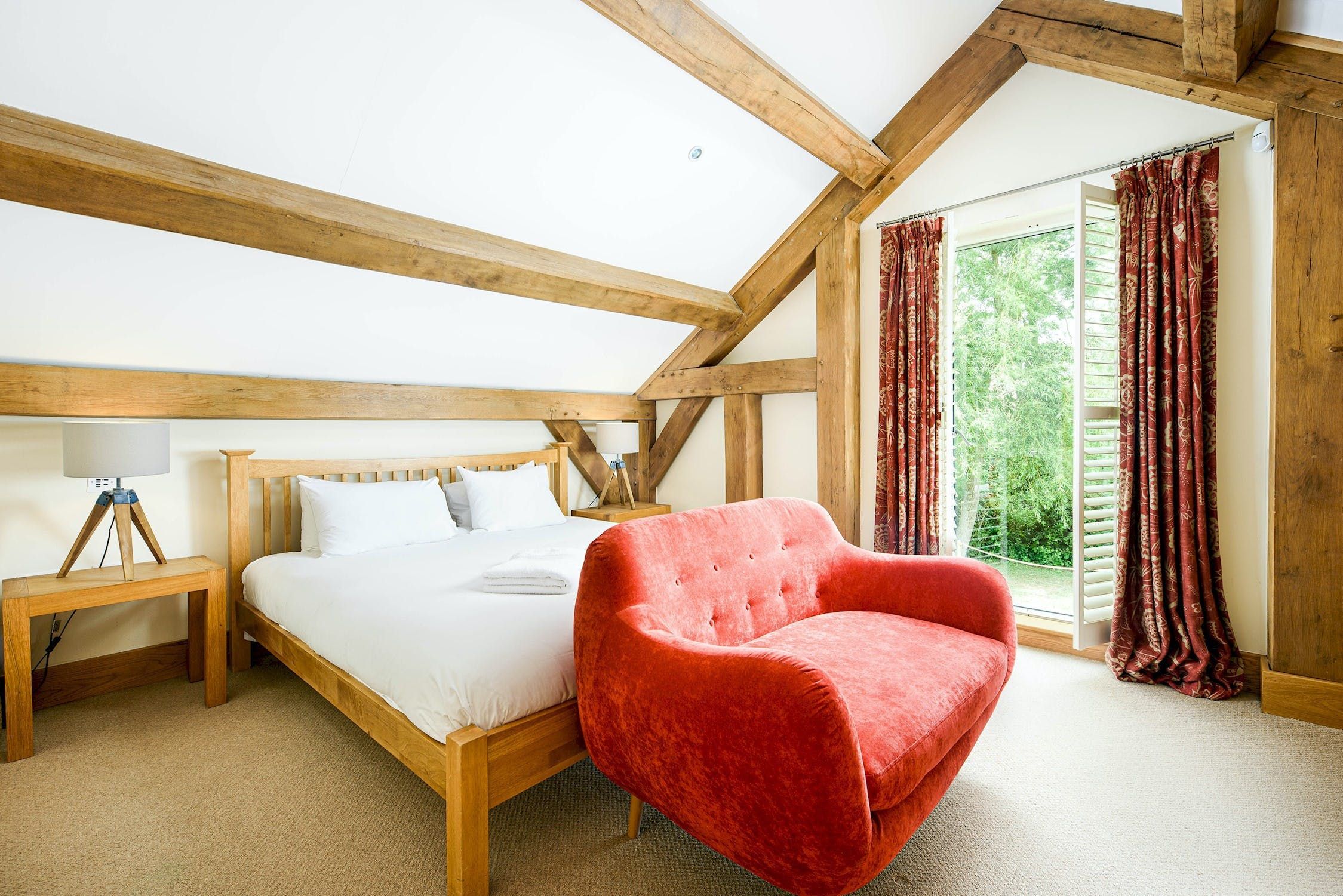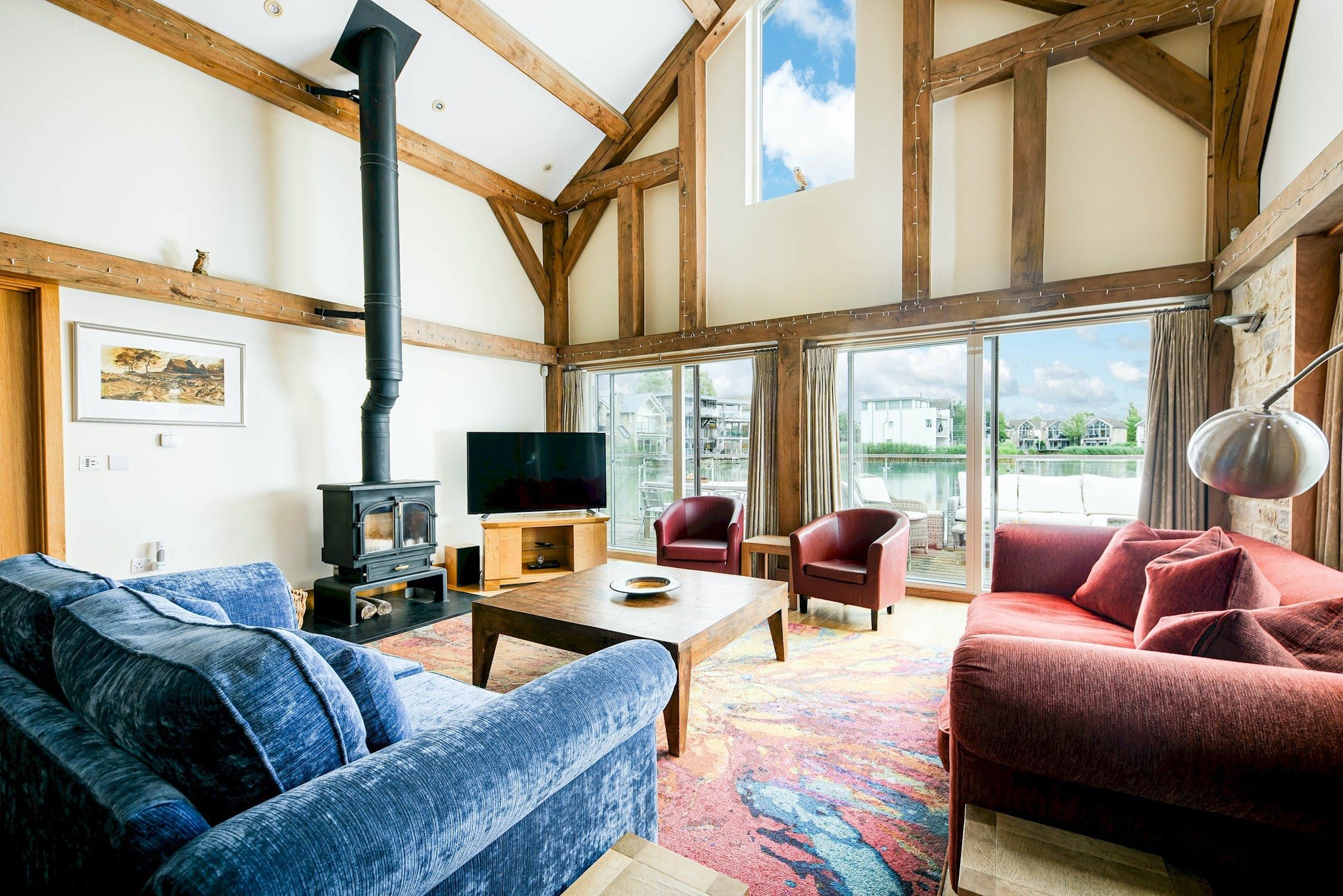 Sitting atop the picturesque Howell's Mere Lake, this barn-style house is a great choice for a tranquil family holiday in The Cotswolds. It embraces its rustic side with a wood cabin-type interior that's plenty comfortable and, along with the exposed beams and wood-burning stove, adds to the cosiness. With views of the lake and a hot tub, the terrace is the main draw of this home, and the outdoor table, where you can enjoy alfresco meals, is a nice bonus. With an on-site spa and communal swimming pool, what more could you want?