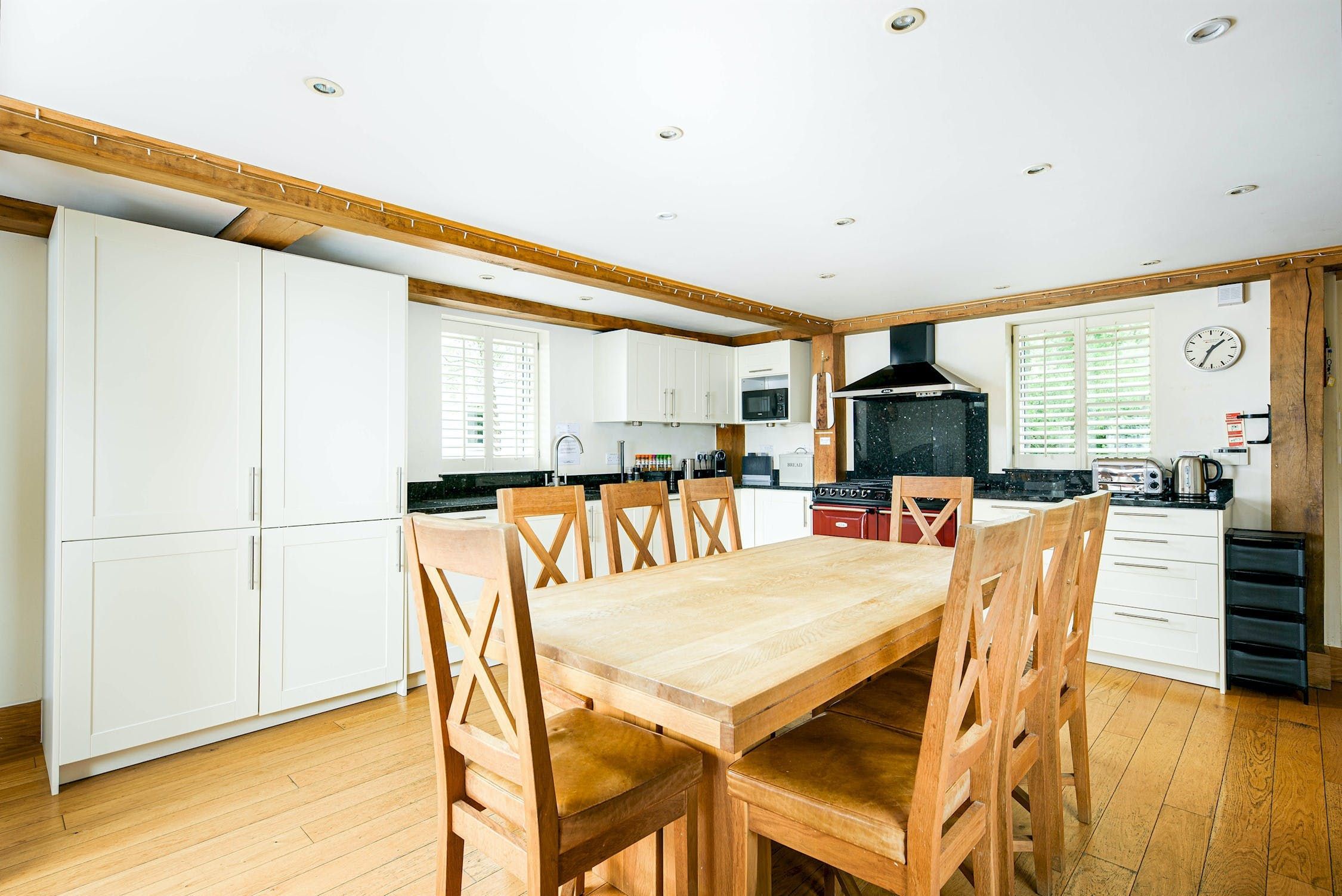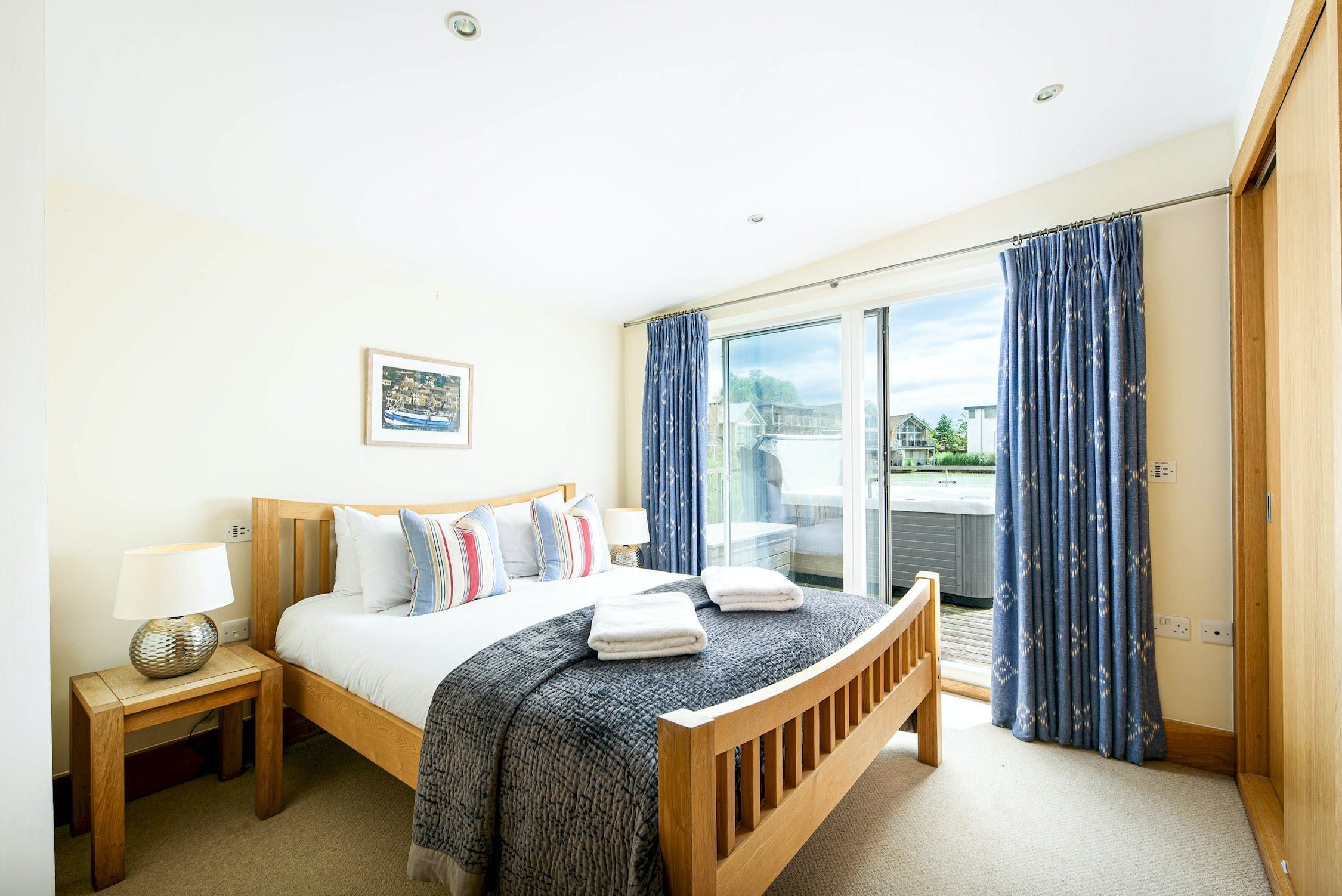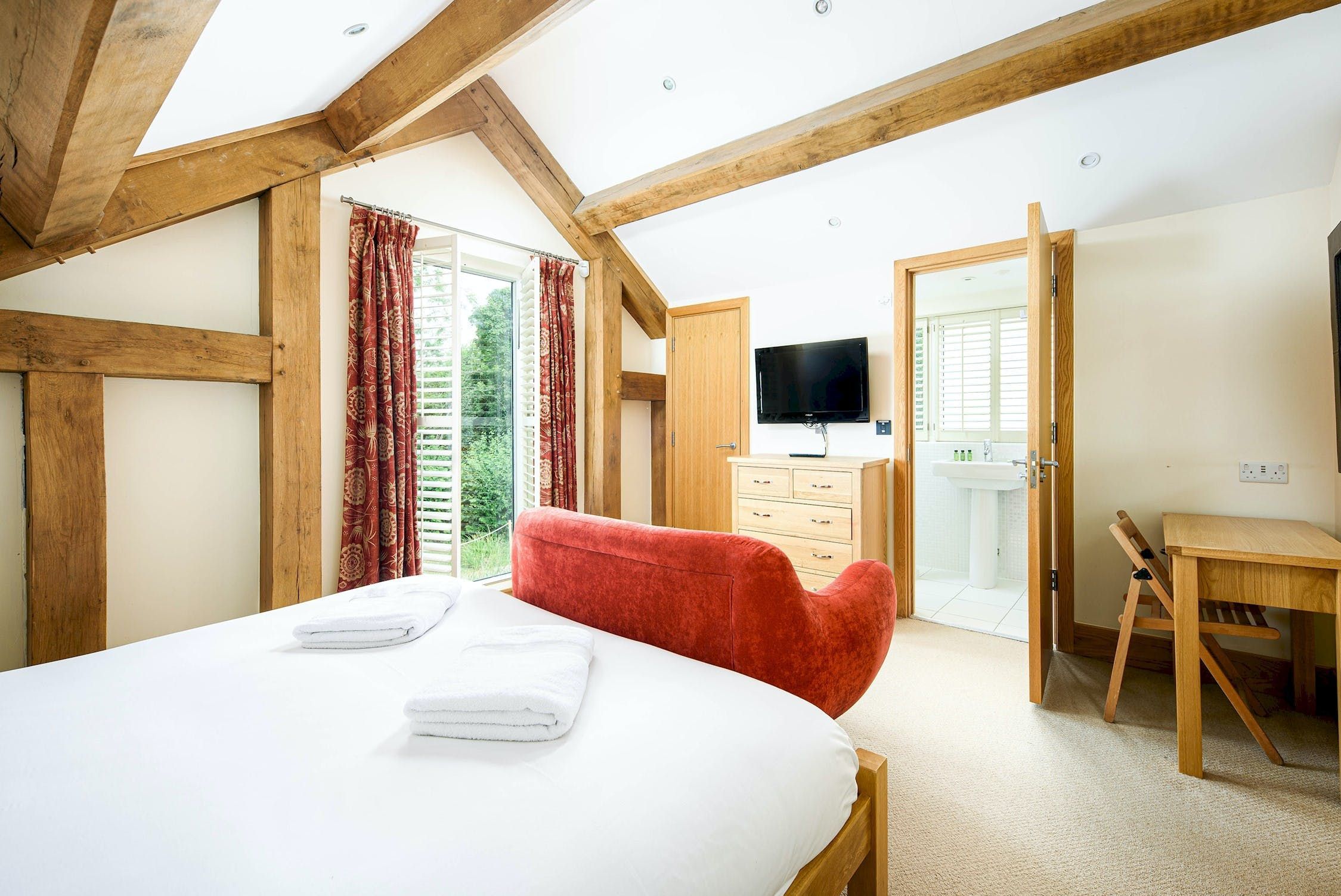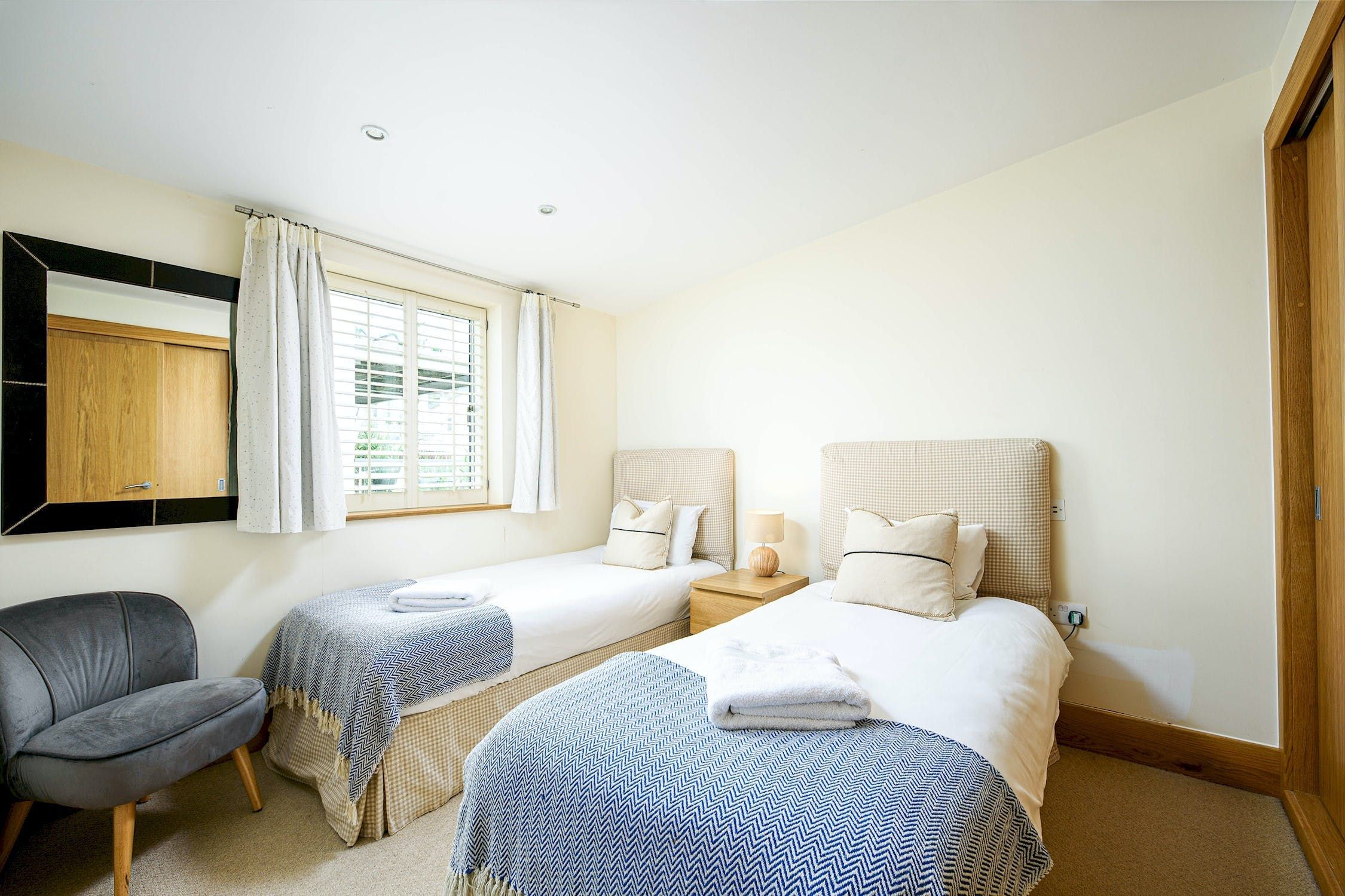 Sitting atop the picturesque Howell's Mere Lake, this barn-style house is a great choice for a tranquil family holiday in The Cotswolds. It embraces its rustic side with a wood cabin-type interior that's plenty comfortable and, along with the exposed beams and wood-burning stove, adds to the cosiness. With views of the lake and a hot tub, the terrace is the main draw of this home, and the outdoor table, where you can enjoy alfresco meals, is a nice bonus. With an on-site spa and communal swimming pool, what more could you want?