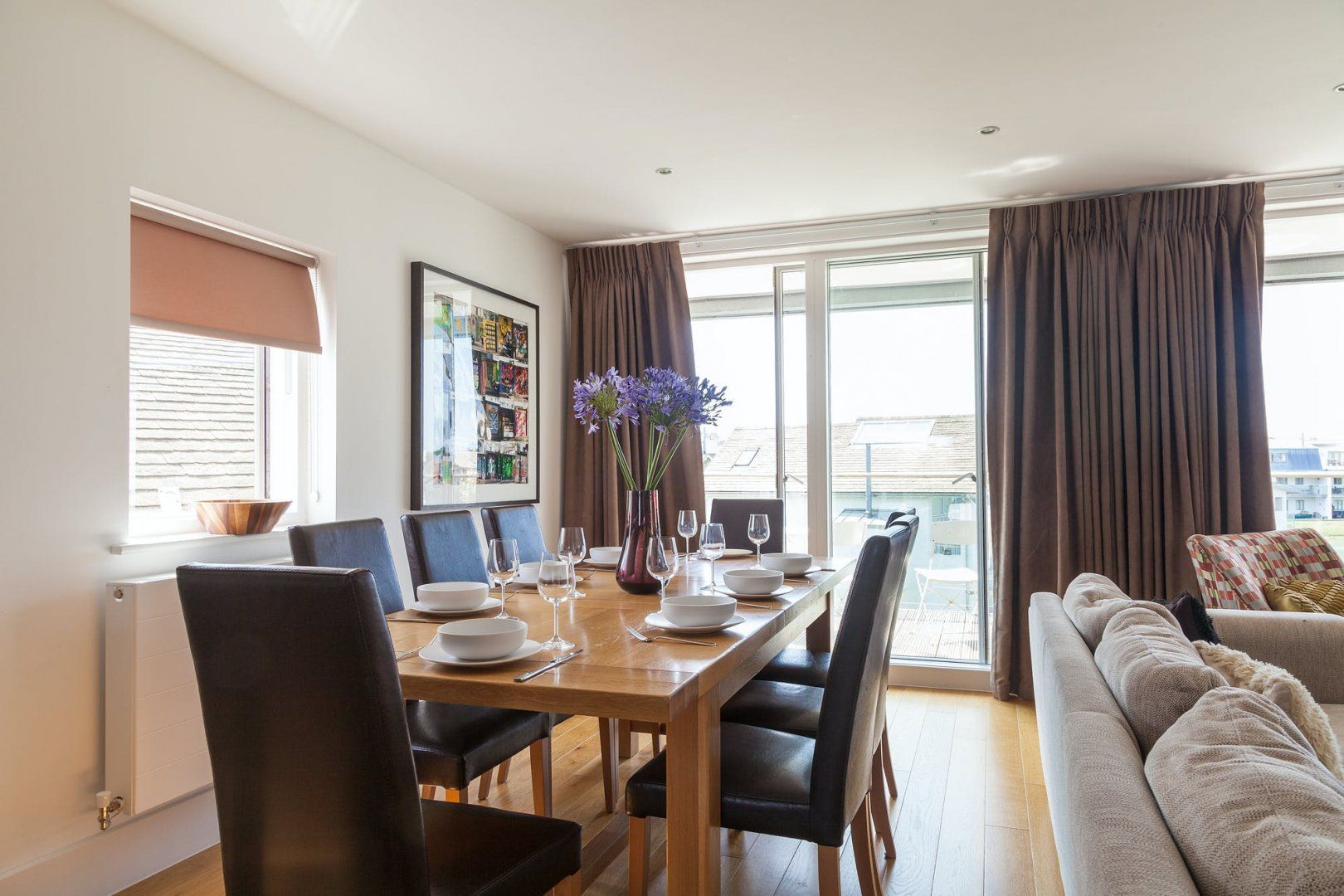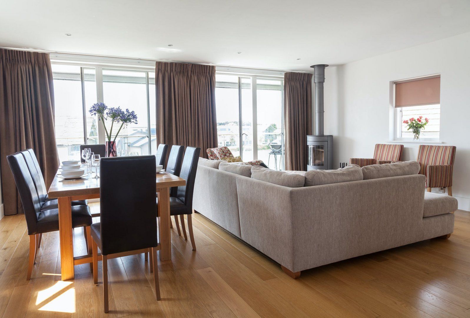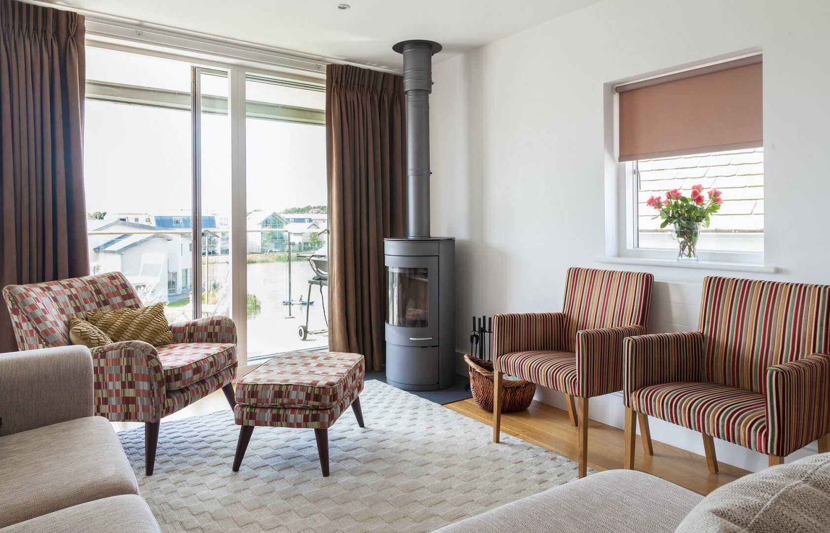 Situated on an estate in the Cotswolds, surrounded by acres of nature reserve, this home is the perfect place to switch off after an afternoon of outdoor pursuits. The living space, complete with a wood-burning stove, opens onto a private, west-facing balcony where you’ll find a gas barbecue. Elsewhere on the complex, there’s an award-winning spa offering a selection of treatments and pools for relaxation. If you fancy venturing further afield, the market town of Cirencester is a fifteen-minute drive away.
