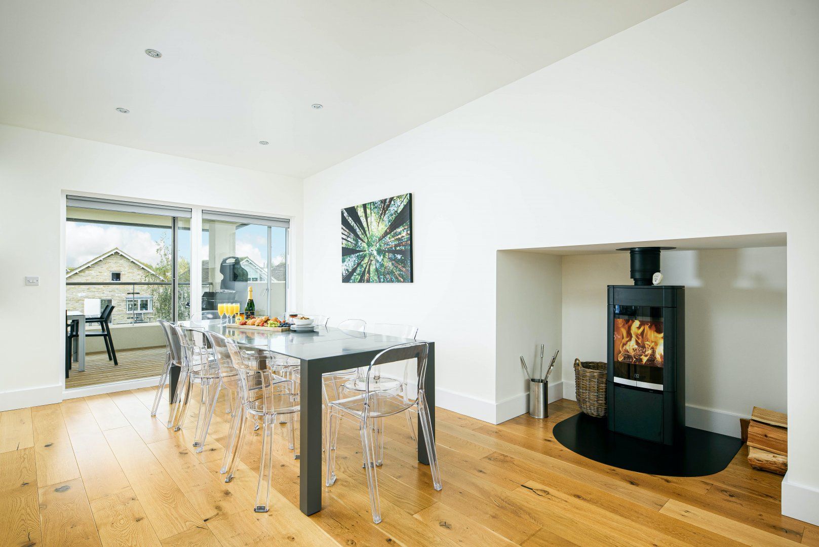 Nestled among a nature reserve in the Cotswolds, this home provides a great family getaway. The home boasts a lovely wooden terrace and private balcony, but the real highlight is its private cinema room complete with vintage chairs. As the house is located on a large estate, privacy may be lacking a bit though there are numerous activities here to keep you busy. Guests can make use of the on-site swimming pools, spa facilities, as well as the restaurant. To explore the surroundings a bit better you can also hire bikes or water-sports equipment for the day.