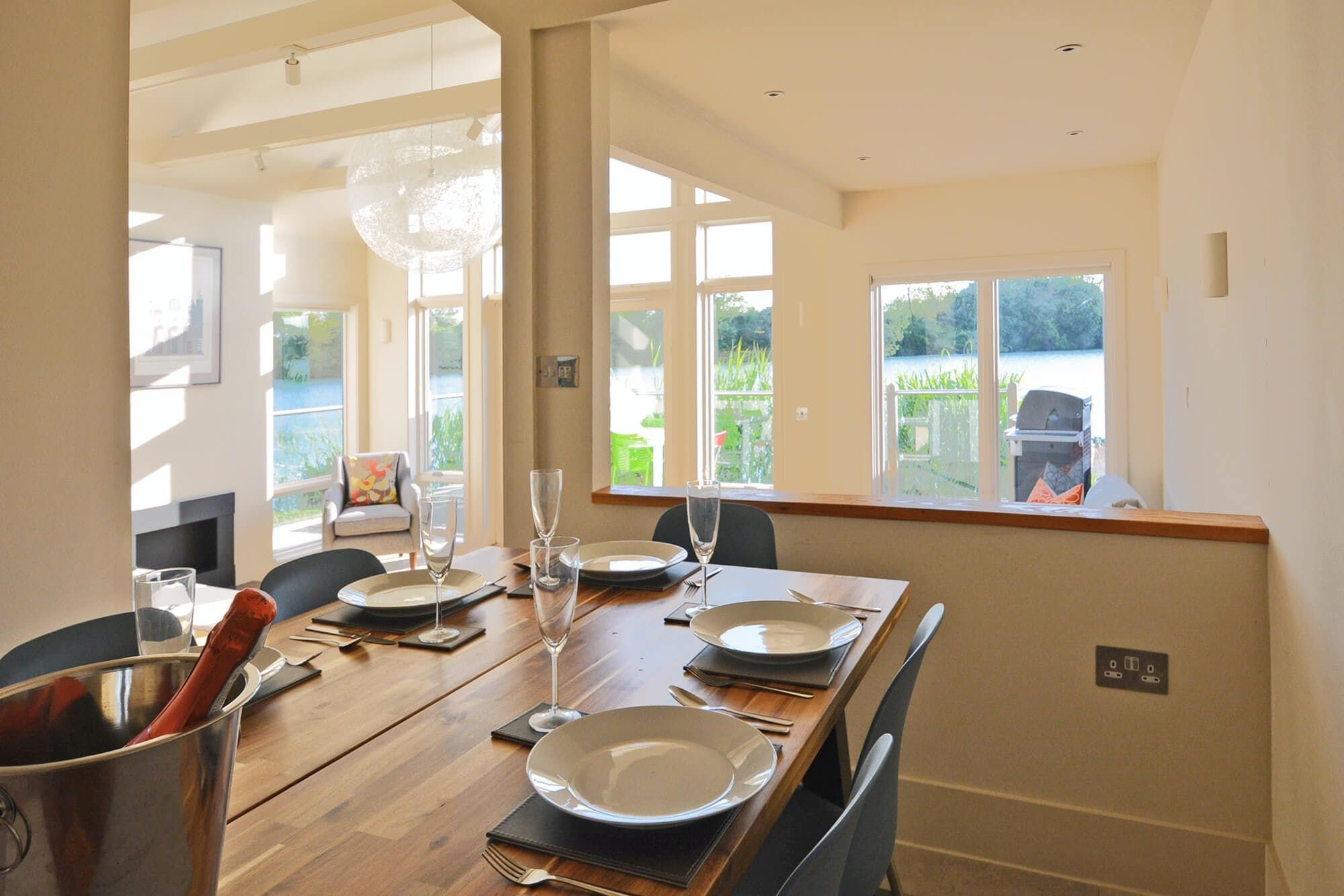 Set within a private estate, this home opens its doors to a restorative lakeside escape. From here, you can savour the calming views while relaxing on the large south-facing deck. There is also a boat jetty with mooring for two small boats, a private barbecue and a range of extra services available – including catering and home spa treatments. It’s worth noting the rooms are basic, but it is family-friendly with plenty to explore in the surroundings. Take advantage of the shared tennis courts, hire bikes and visit nearby Cirencester and Bibury – both just a short drive away.