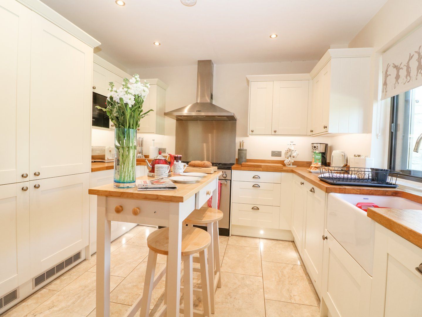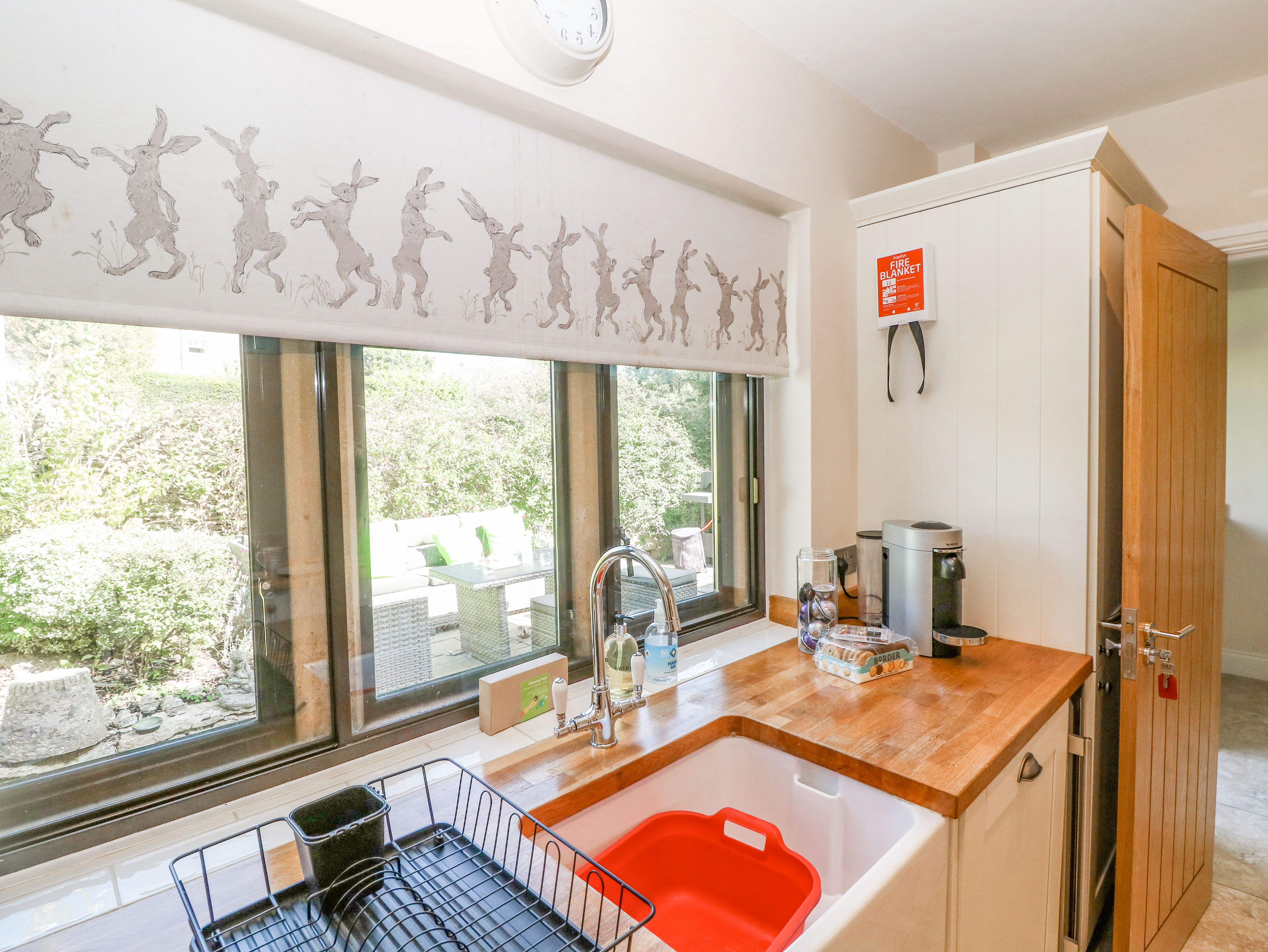 There is plenty of space for your cars in the large driveway which houses up to five cars so unload your luggage right on your doorstep and enter into the fresh and bright entrance hall, kick off your boots and marvel at the triple aspect sitting room to your left, which houses a beautiful stone fireplace with a warming woodburning stove and dining table and chairs for you and your beloved to socialise at.