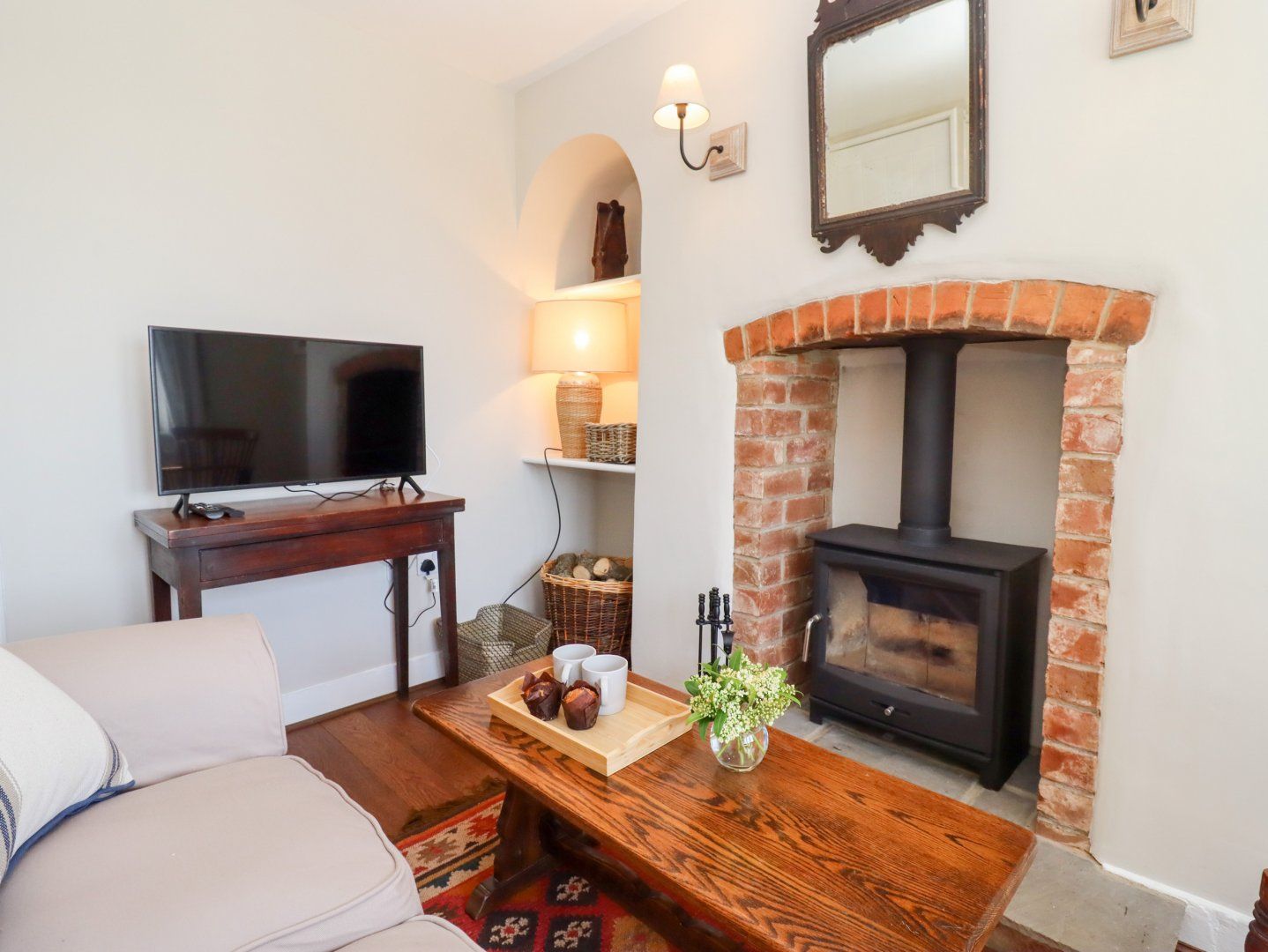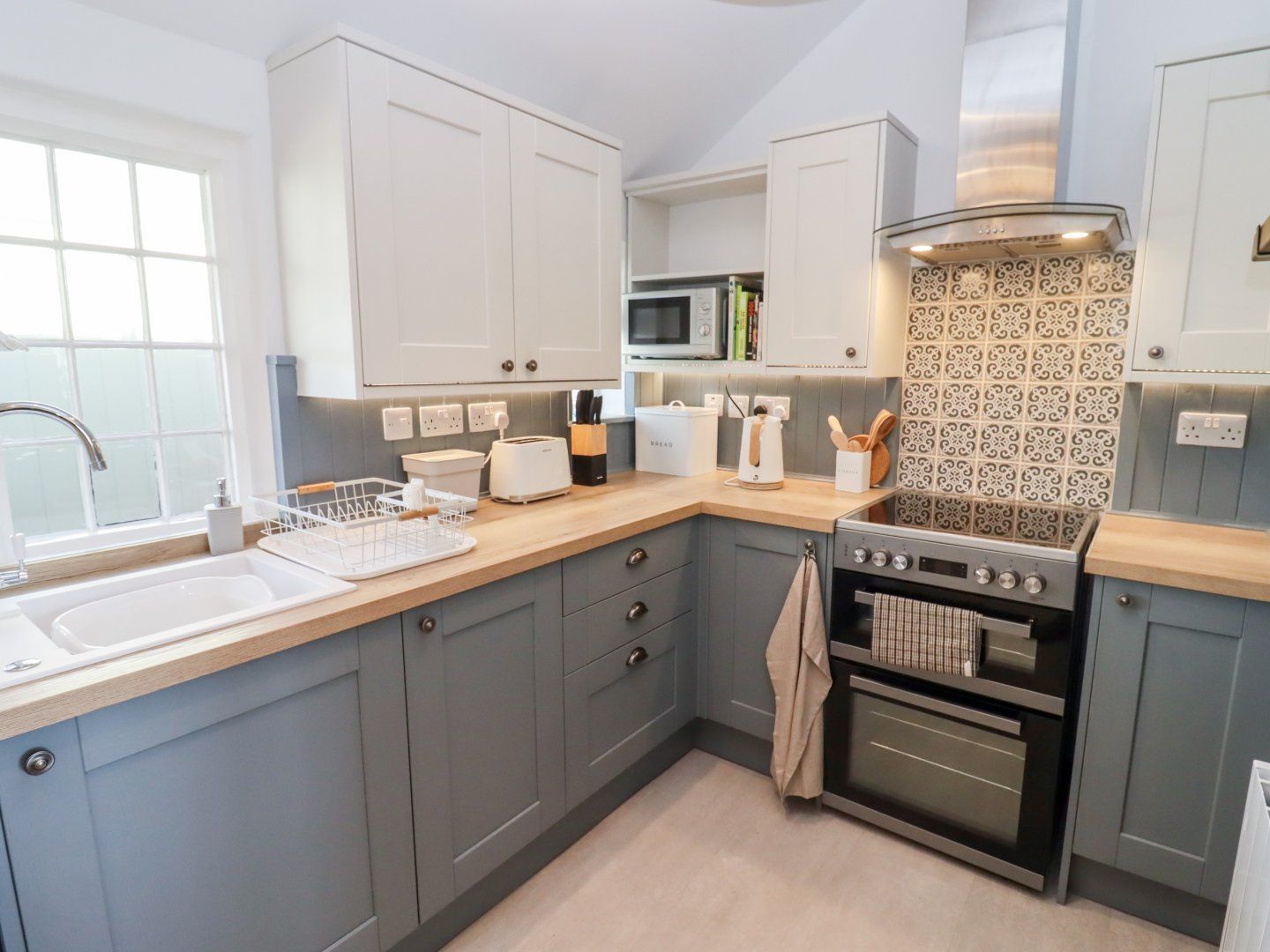Holiday home The living areas include a kitchen housing an electric oven and hob, microwave, fridge, dishwasher, washing machine and a sitting room with woodburning stove and a dining space. There is also a boom room/dog kennel space. The bedrooms include a king-size and a twin, serviced by a bathroom. To the outside is a lawned garden and patio with furniture. This property will accept two pets at a charge of £15 per pet however smoking is not allowed. WiFi, fuel, power, bed linen and towels are all included in the price. Within 3.5 miles or less there is a shop and pub. Choose The Alms Houses for a magnificent retreat, whatever time of year. Note: Check-in from 16:00, checkout by 10:00. ote: The property is situated on a hill. Note: Please make sure the sofas do not roll back onto the radiators for fire reasons. Note: Please do not use disposable barbecues. Note: The church driveway is narrow and therefore can only be used for unloading, parking can be found at the bottom of the drive on the other side of the road. Note: Pets are not allowed on furniture or upstairs.