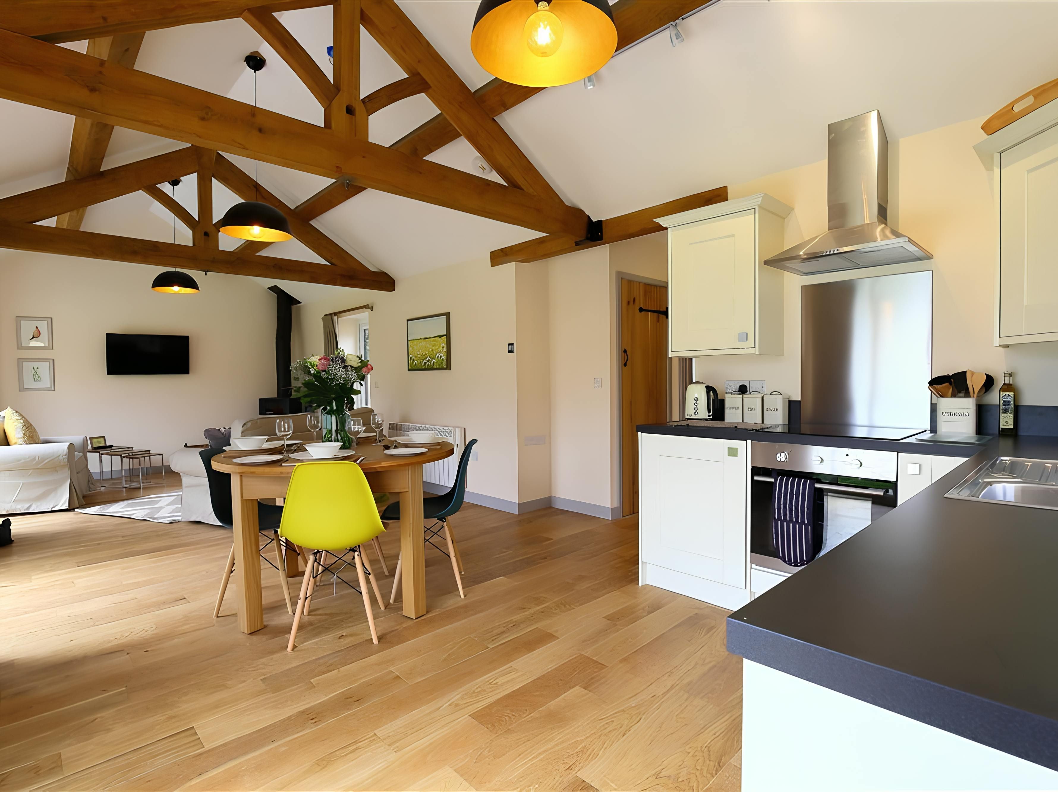 Situated in the Cotswolds, just a short drive from beautiful Bourton-on-the-Water, Burford, and Stow-on-the-Wold, these two converted barns offer a stylish and comfortable retreat. The larger of the two homes has three bedrooms, while the smaller one features one double bedroom and there’s a private hot tub in the garden. As well as this outdoor space, there’s a grassed area with a picnic table for enjoying the fresh countryside air. There’s plenty of private parking too – this place is for families and friends.