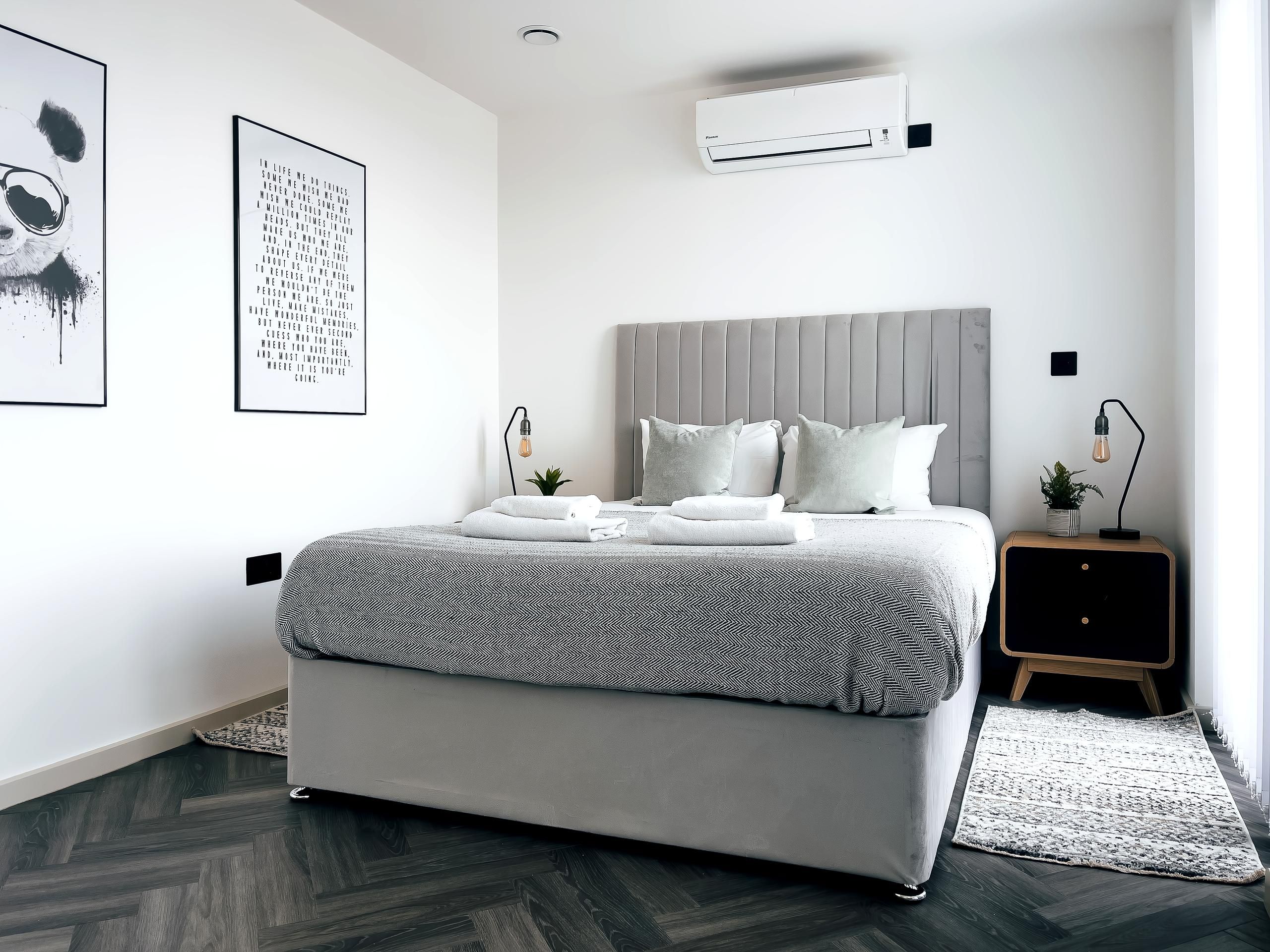 Ideal for digital nomads and work travellers, this penthouse apartment is contemporary to its core. The living space offers a comfortable spot to unwind away from the hustle and bustle. Keen cooks can whip up dinner in the sleek kitchen, while those needing to hunker down will find desks in two bedrooms. There's also a roof terrace – though there's nowhere to sit – and a private parking space. Location-wise, you're just a twenty-minute bus ride from Chiswick Business Park, a fifteen-minute drive from Kew Gardens, and a five-minute walk from Brentford Station and its train links to central London.