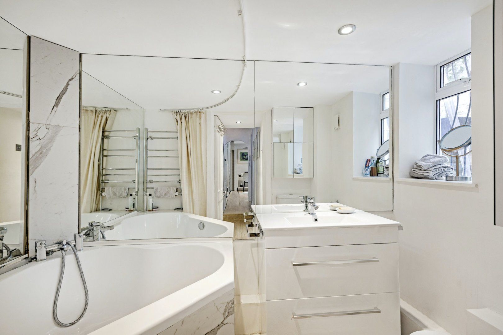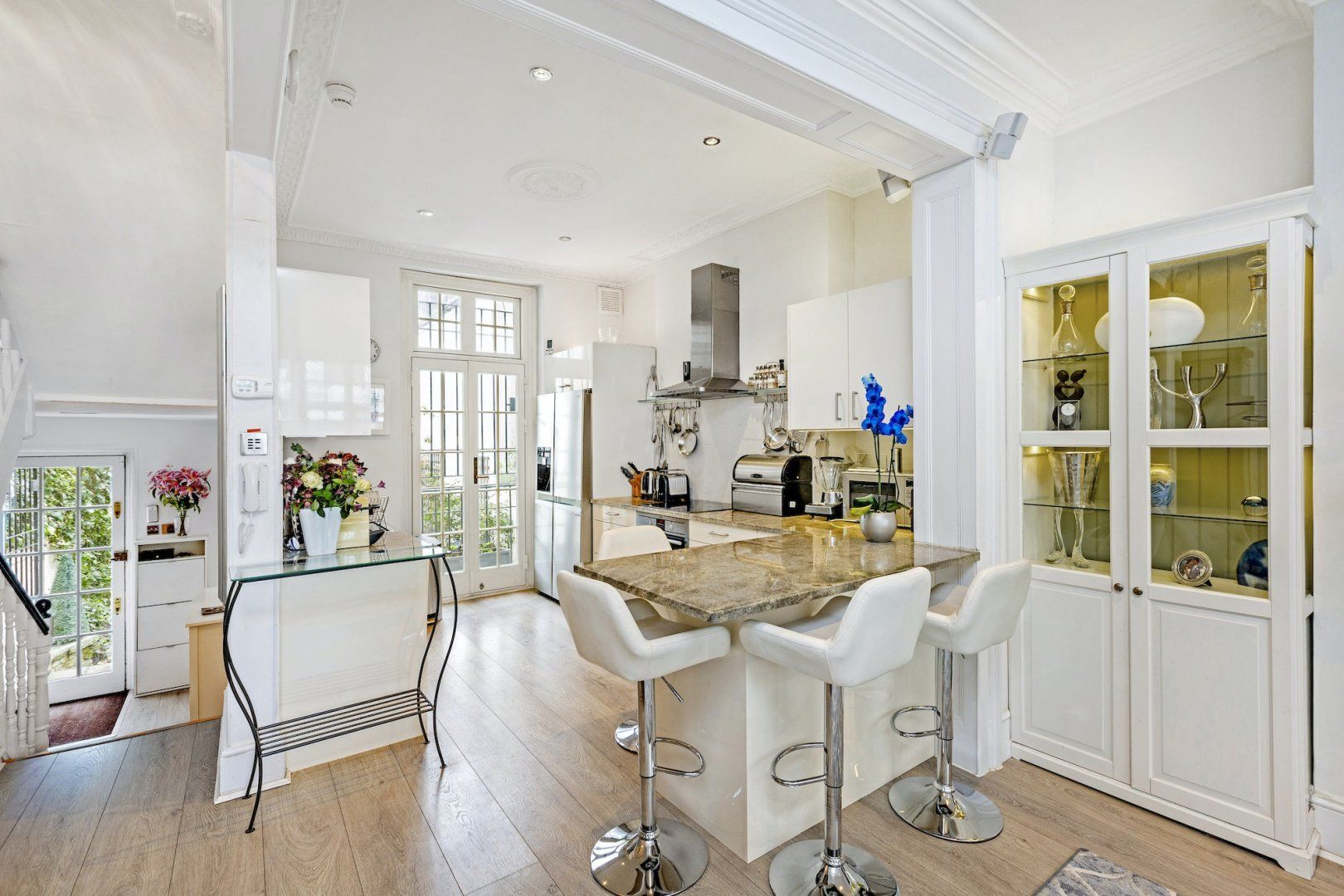 Located on a quintessential London street, stands this five-storey, Grade II-listed Georgian townhouse. Built in the 1800s and lovingly restored by the hosts in recent years to create a spacious family home, we think this townhouse would be a great option for groups of relatives or friends coming together. Thanks to the several floors and rooms, including three living rooms, the house lends itself perfectly to groups that like a lot of space. But there’s plenty of opportunities to come together too – whether that’s around the marble-topped breakfast bar in the morning or huddled together at the fireplace on chiller evenings. Wherever you choose to settle, you’ll find a home away from home which tells an elegant tale of family life. And let’s talk about the West London location. Perfectly placed equidistant between Chelsea’s Kings Road, the museums and amenities of South Kensington, and the luxury shopping district of Knightsbridge, this is one of London’s finest neighbourhoods. The only dilemma you’ll have is choosing which direction to head first.