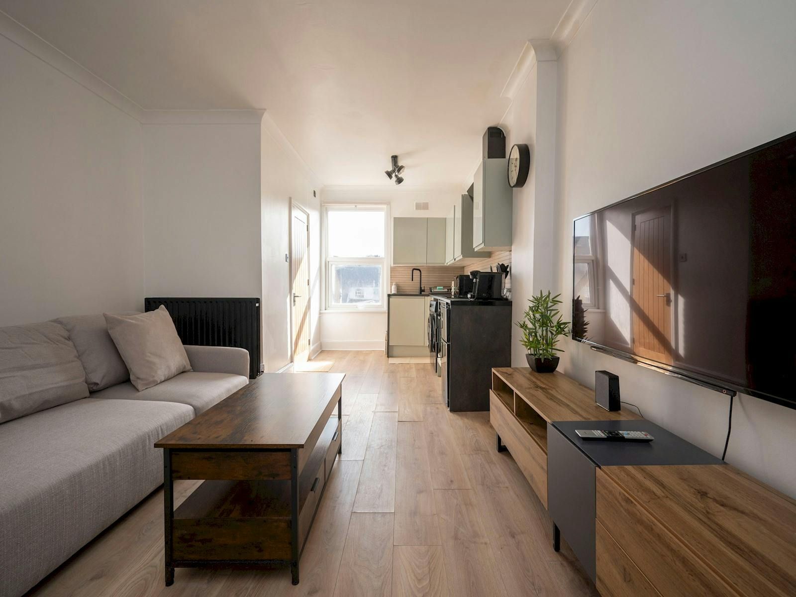 Just a short walk from West Croydon station, this apartment is the ideal base for a well-connected city stay. You can reach central London in less than twenty-minutes, while the close proximity to local shops and restaurants means you’ll find everything you could need in the neighbourhood. It’s worth noting the apartment is on the second floor with no lift access, but once inside it’s easy to settle in. The main bedroom also comes with a desk for work sessions, while the living room sets the tone for laidback evenings at home.