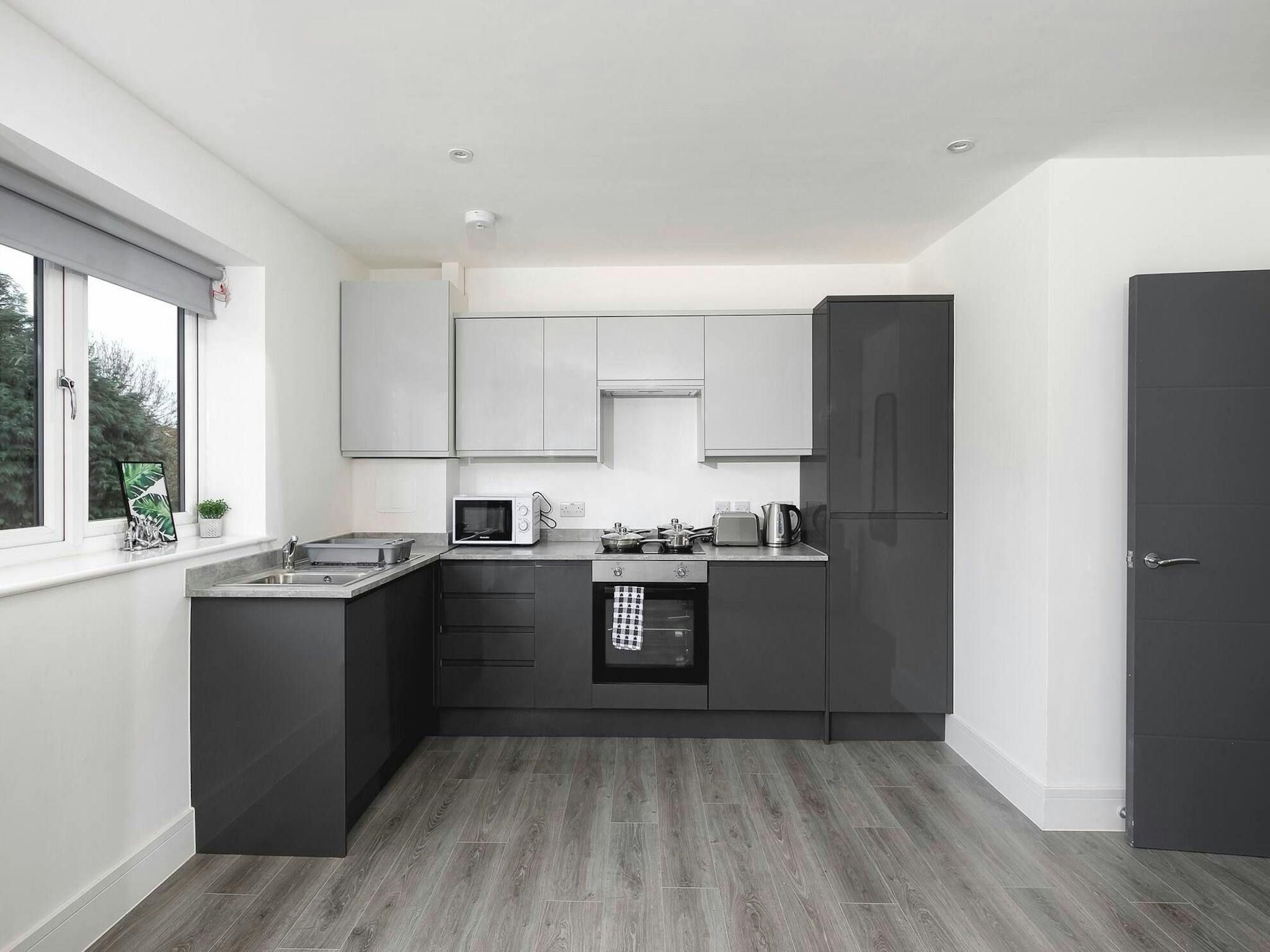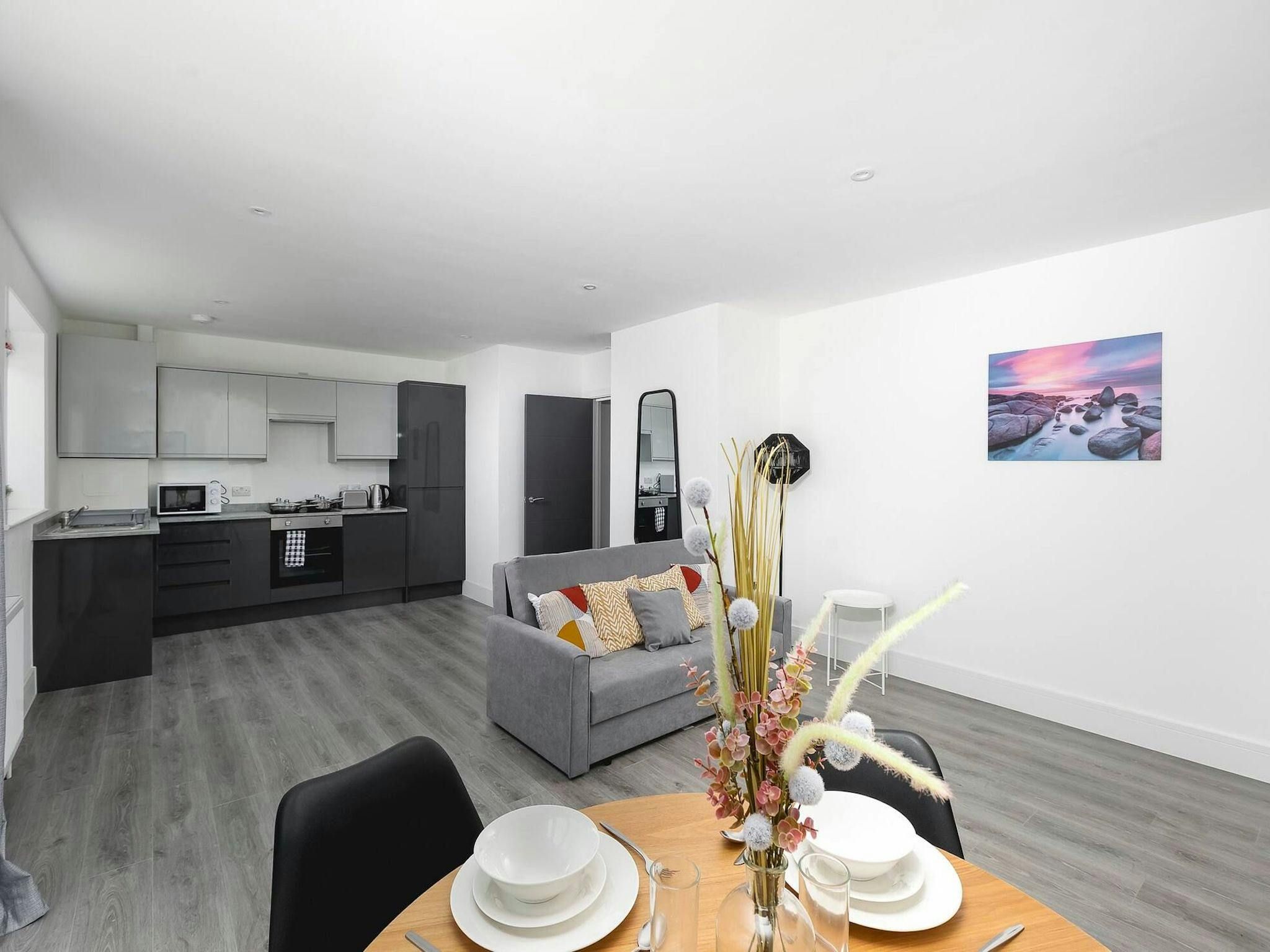 Sleek and contemporary, this Enfield apartment is a fuss-free base in North London. Even with two guests sleeping on a sofa bed, you'll have plenty of room to get comfortable. It has all the essentials – including a well-appointed kitchen and a small balcony – though it does lack a few homey touches. You're not in central London here, but shops, pubs, and restaurants are just a short walk away. A nearby train station can also whisk you off to Moorgate in about thirty-five minutes, which makes sightseeing all the easier.