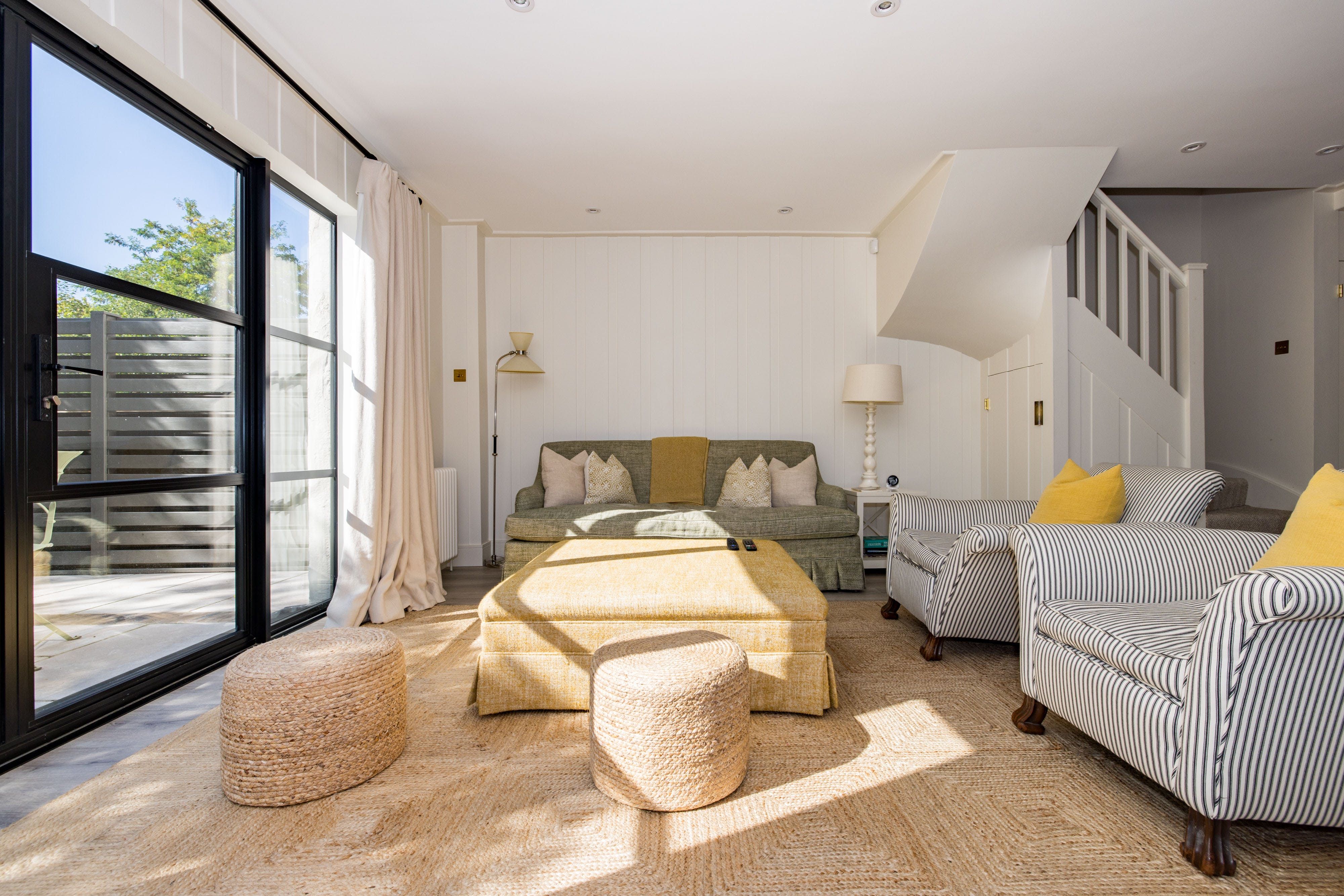Polished Scandi-inspired interiors? Check. Indoor-outdoor living? Yup. This is modern London living at its very best, with a central location to boot. Nestled in Battersea and just a stone’s throw from Chelsea and the river, it’s hard to imagine a better setting for this stylish home. Do like the locals and wander the gorgeous riverside stretch of the mighty Battersea Park between the bridges of Albert (nine minutes on foot) and Chelsea (twenty minutes on foot). And when thoughts turn to food, hop over the bridge to well-heeled Chelsea, where you’ll find bustling cafes and Michelin-starred restaurants aplenty. Or jump on the train at Battersea Park Station (twenty minutes on foot) and uncover other gems of this diverse city. Back at home, this place feels like your very own sanctuary in the city. Two floors are united by considered design, with fresh whites set against rustic textiles and statement lighting to ramp up the wow factor. Climb the staircase to discover luxurious bedrooms with crisp, white linens and sparkling bathrooms of the highest quality. But it’s back downstairs in the sociable living and dining space where we think you’ll be spending most of your time. Open up the Crittal patio doors to reveal your very own garden – a rare treat indeed for a London pad this central.
