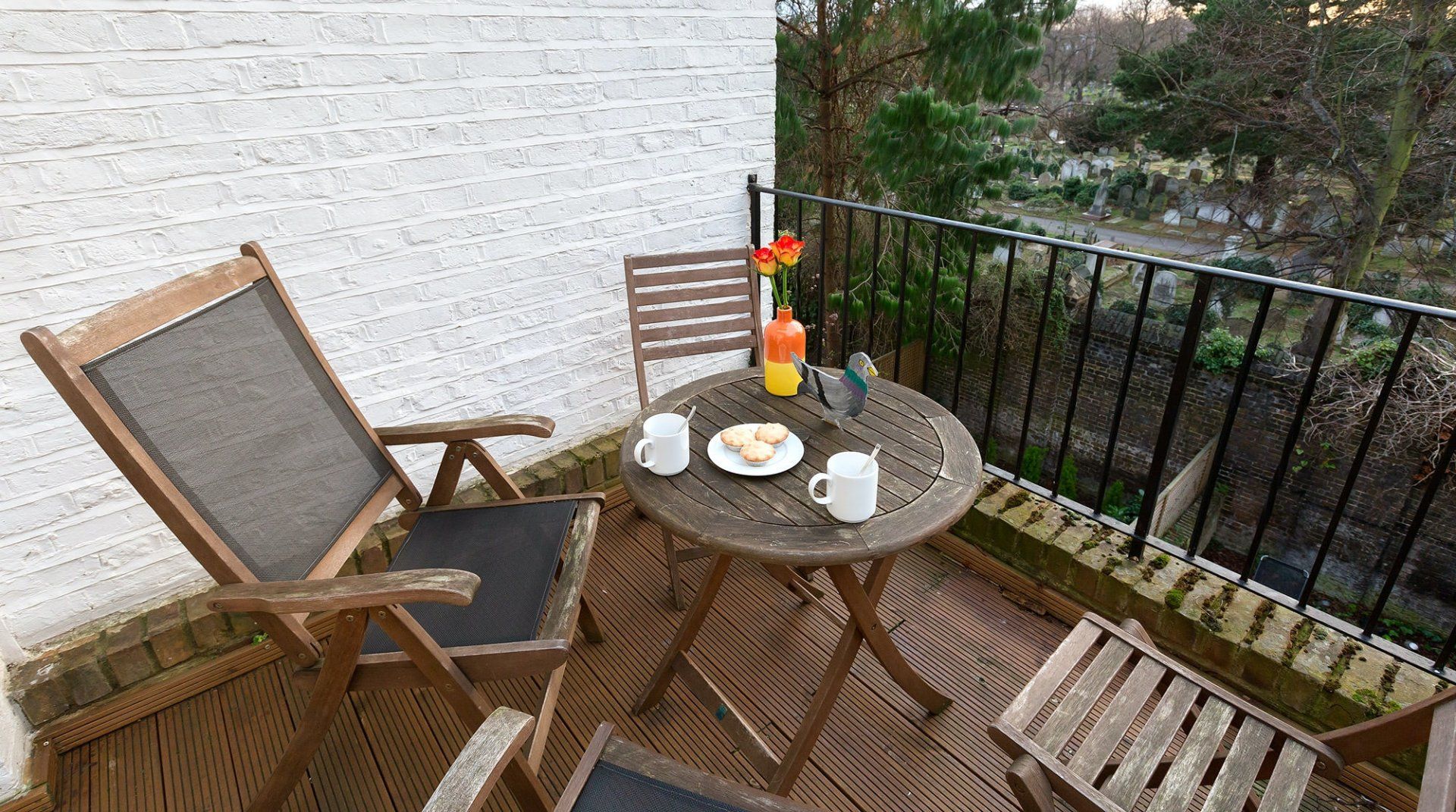 *The back of this home overlooks Brompton Cemetery, one of the 'Magnificent Seven'. It can be seen from the balcony and master bedroom, so if you're squeamish this one might not be for you.