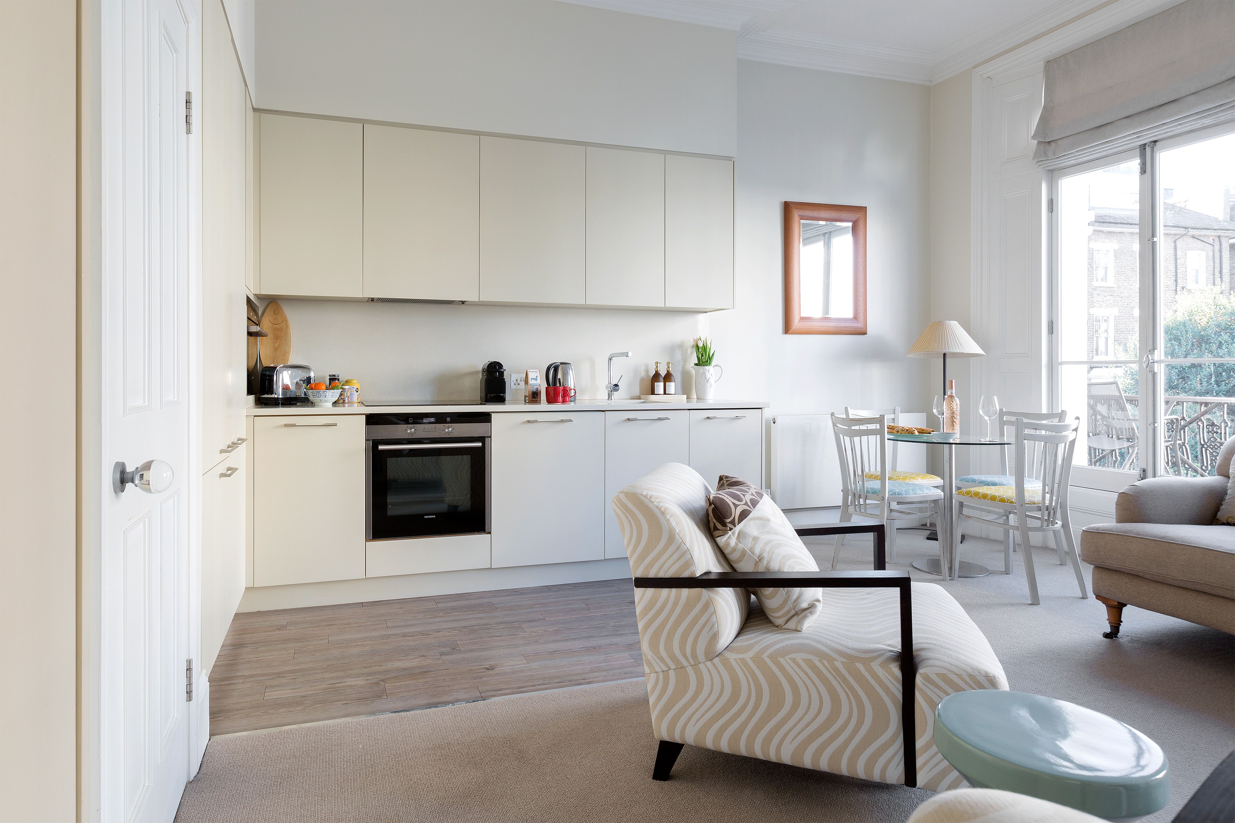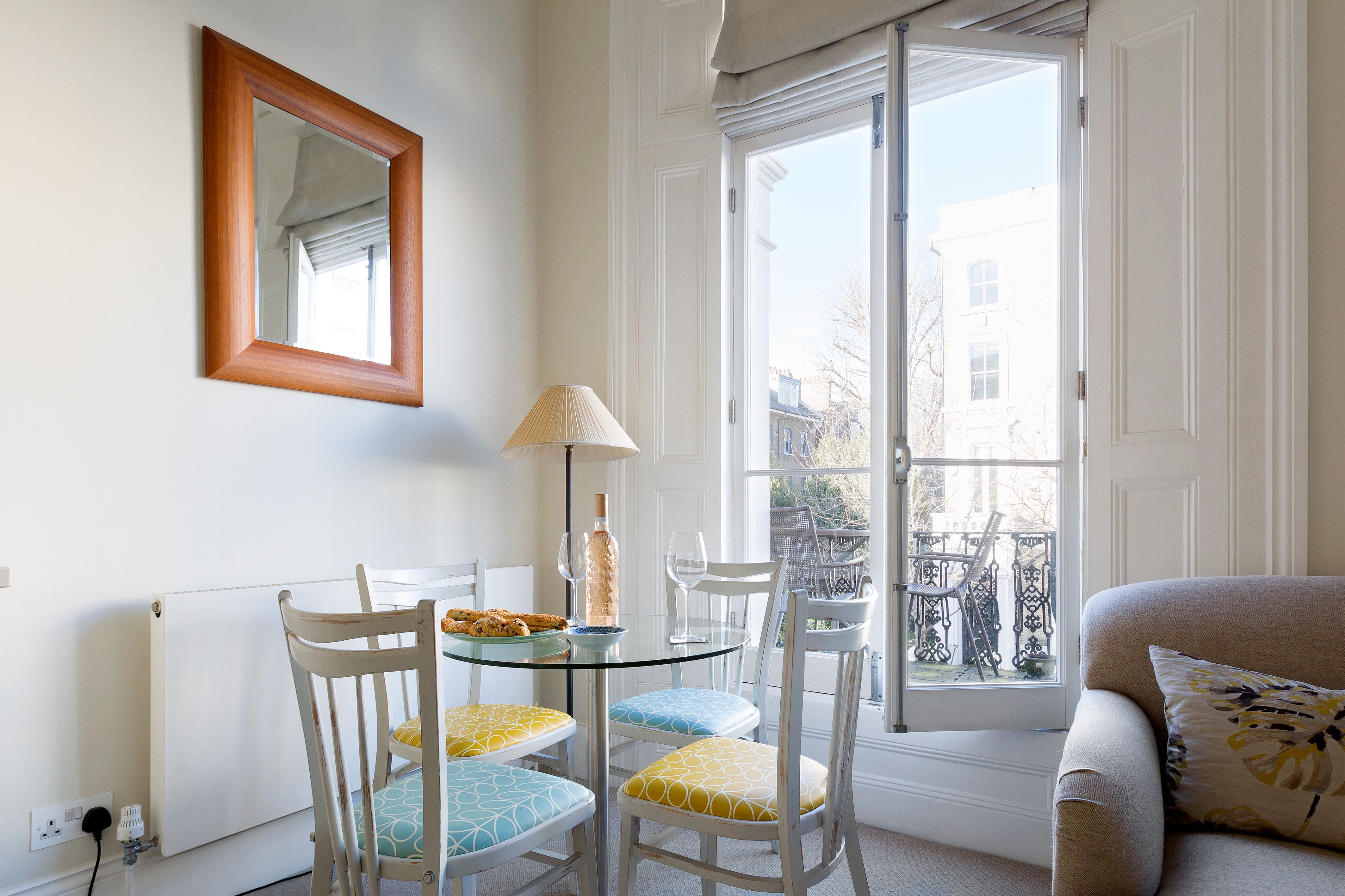 Elegant and sublimely modern, this bright apartment in Chelsea features a beautifully curated interior design and plenty of natural light. Pops of colour in the living room’s cushions and abstract art add a dash of fun to the sophisticated furnishings, while two sets of French doors open up to let the breeze flow through freely. We love that one set of doors opens onto a wrought-iron balcony, a quintessential Kensington touch and makes for an ideal spot for breakfast or sundowners. With a comfortable, pared-back bedroom and a luxurious rainfall shower to wake up to, you’ll feel recharged and ready for a day of sightseeing. Walk seven minutes to shop along the famous King’s Road, or stroll twenty minutes to visit South Kensington’s world-class museums. With plenty of restaurants, bars and boutiques in your neighbourhood too, you’ll want for nothing when it comes to fun and entertainment.