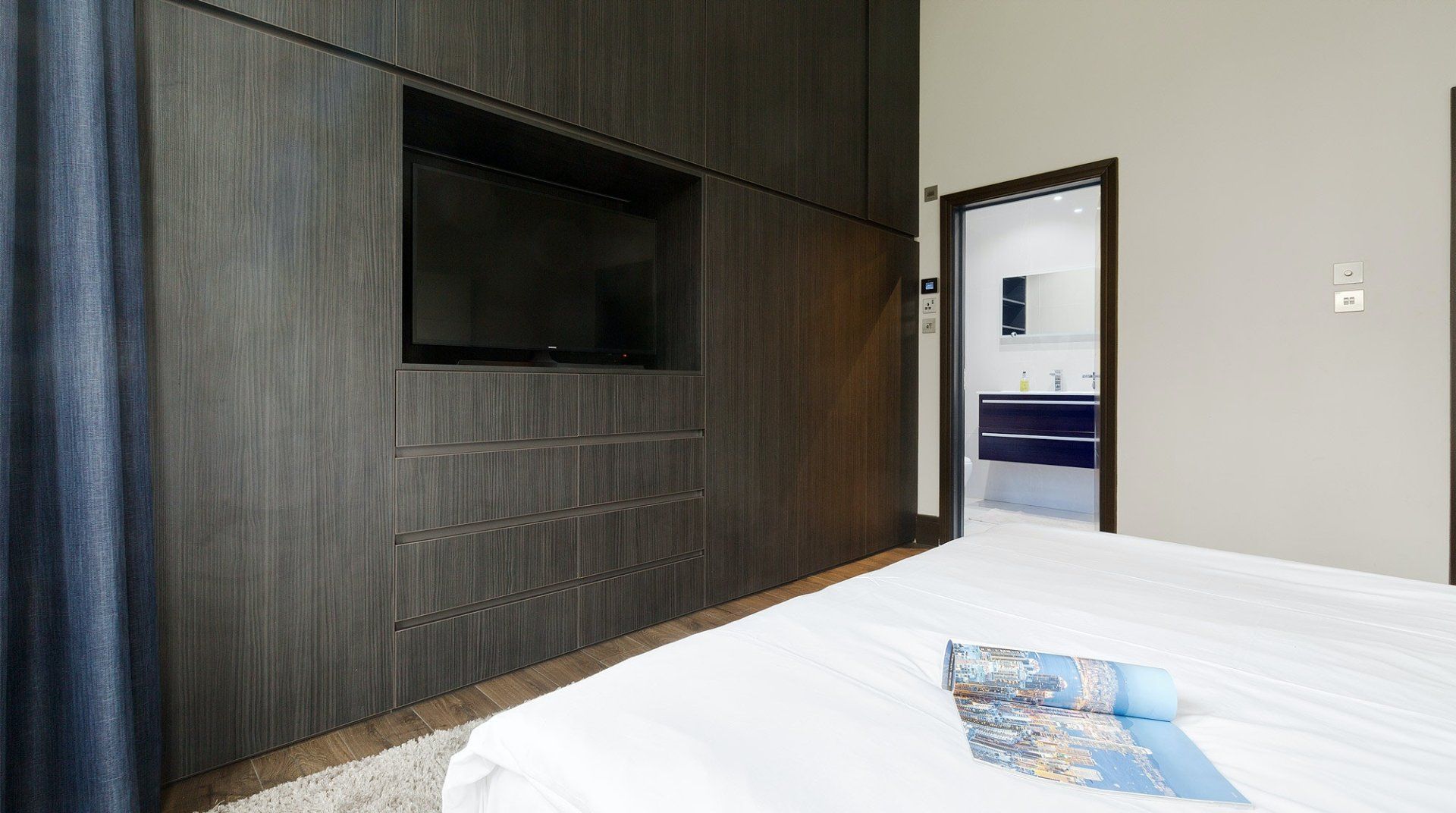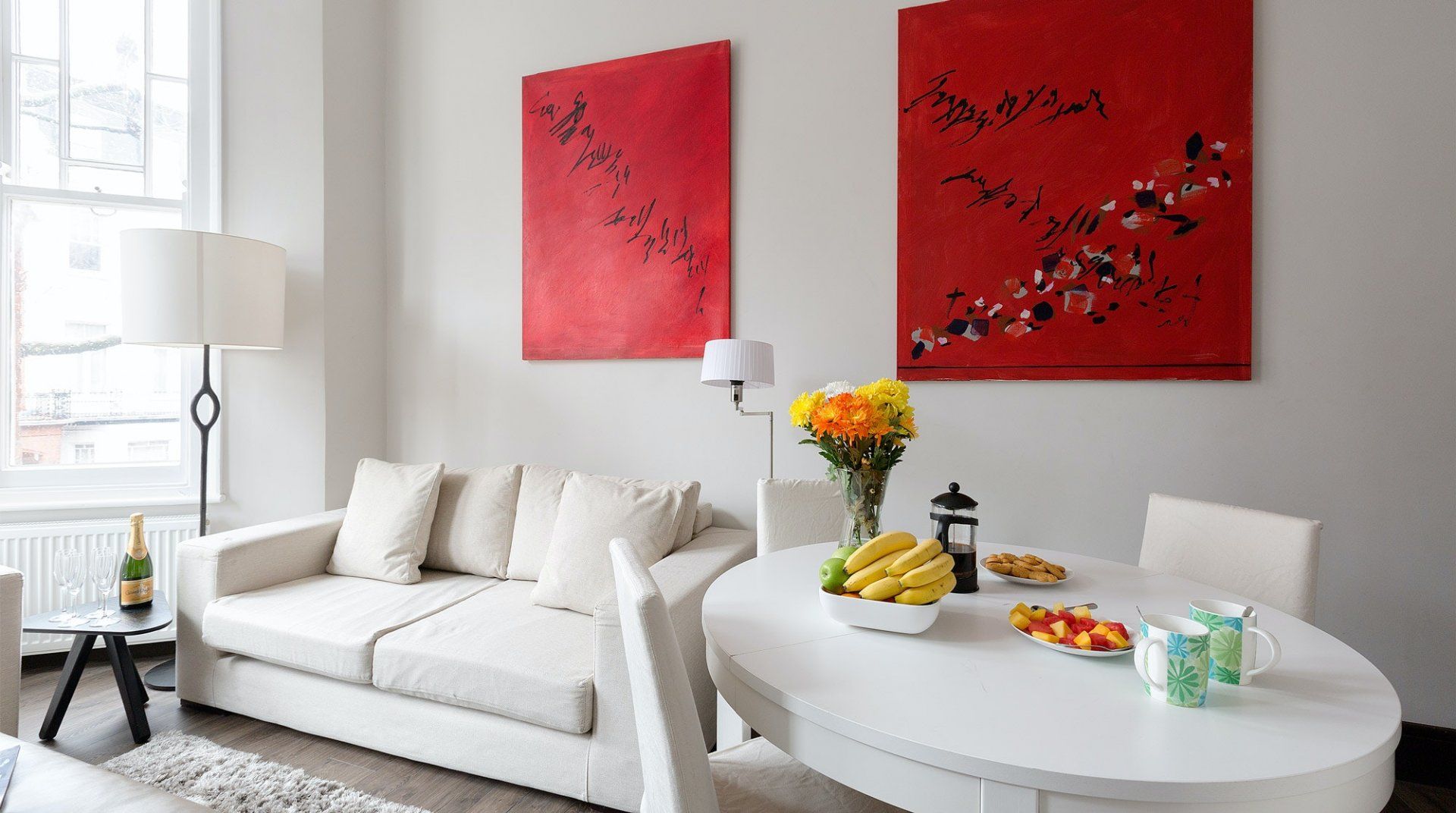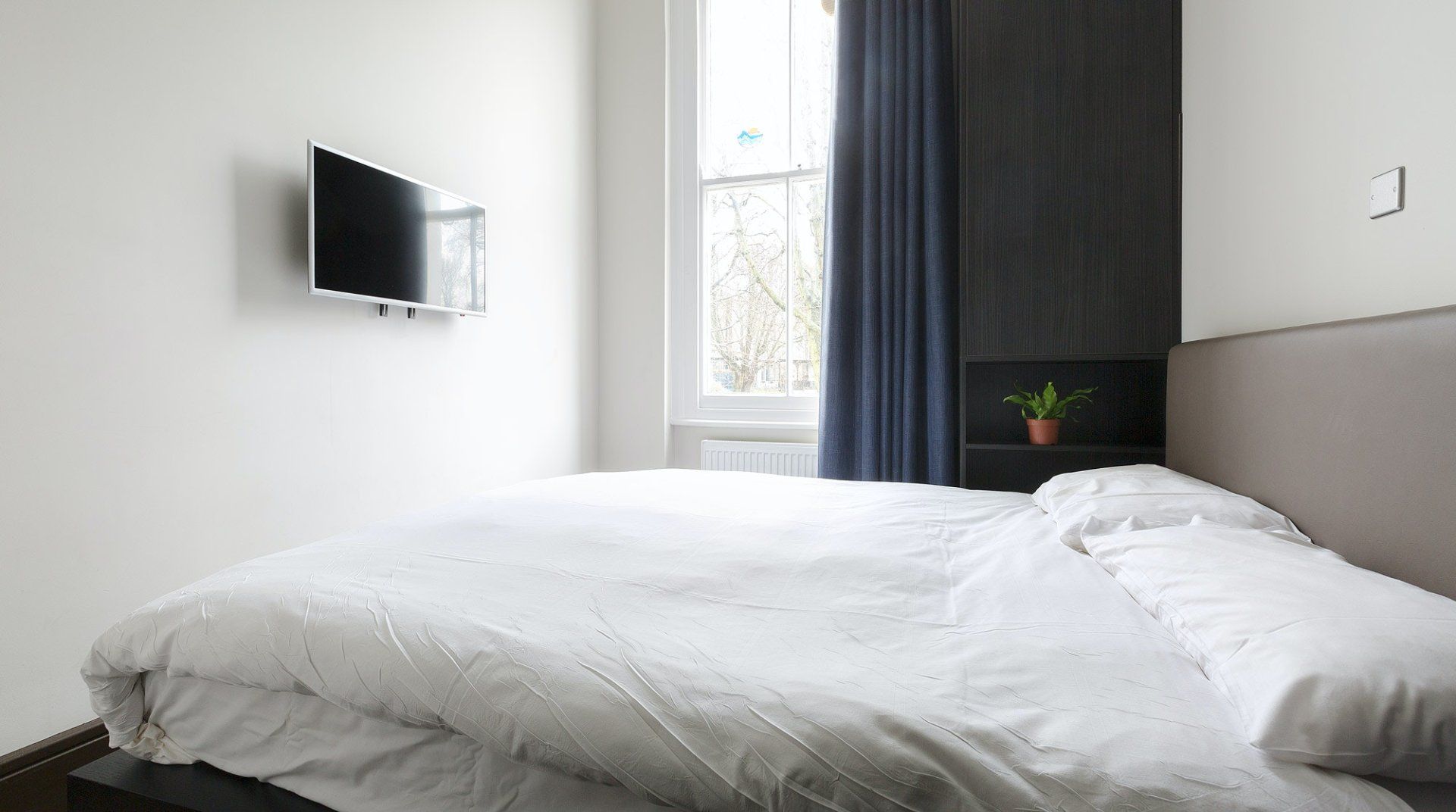 With Earl’s Court station a three-minute walk away, you’re right in the heart of the action at this apartment. It’s also one of London’s most prestigious addresses, in the Royal Borough of Kensington and Chelsea, putting fine dining, luxury shopping and myriad museums and galleries on your doorstep. The home itself is a classic London pad with big bay windows and wooden floors. The living room was built for entertainment with shelves and shelves of object d’art and DVDs surrounding the TV. A minimalist kitchen hides all the appliances you need behind pristine white cabinets and there’s a skinny balcony overlooking parkland and tennis courts, ideal for a pre-dinner drink in the evening sun. Come bedtime, sprawling queen-size beds ensure a sound sleep, and both bedrooms have a TV if you want some downtime.