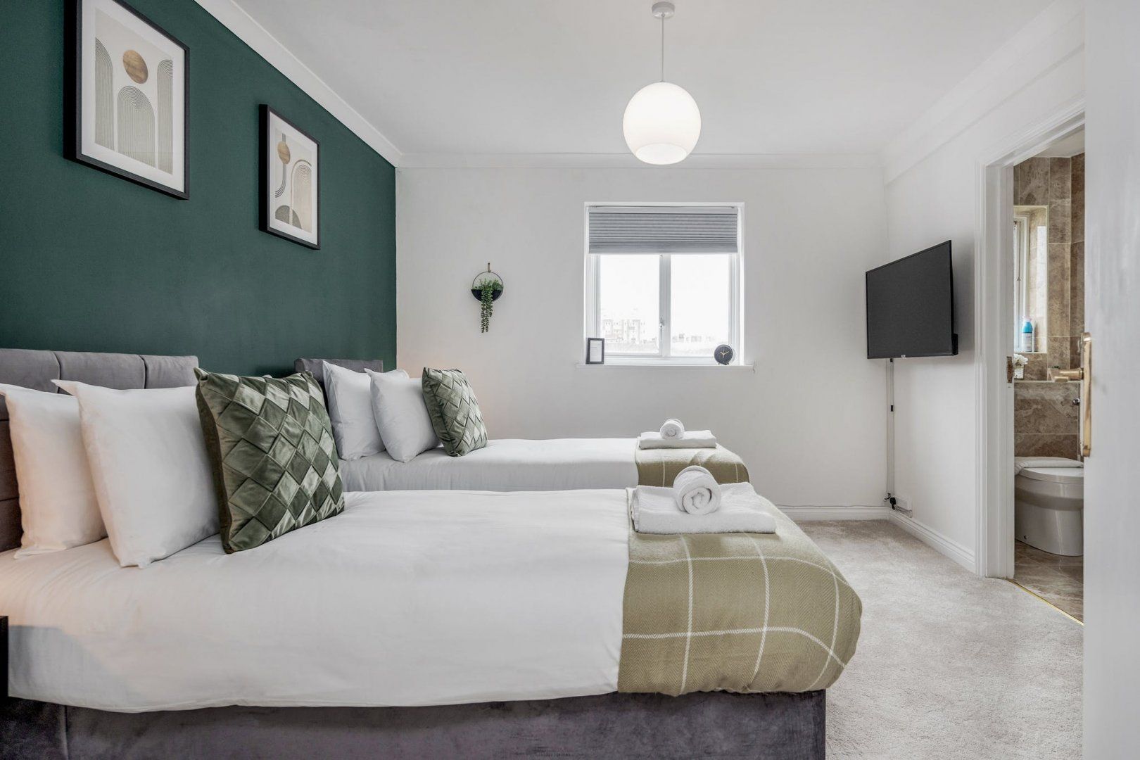 This stylish penthouse apartment lies in Gants Hill, offering free parking and a lovely location. You'll need to climb stairs to reach the entrance, and while the amenities are simple there's everything you need for a comfortable stay. The second bedroom has an en-suite and can be configured as a king room if needed, making this home great for families travelling with kids. Just minutes away you'll find the Gants Hill underground station, ideal for trips into the city, and there there are several restaurants and bars within walking distance.