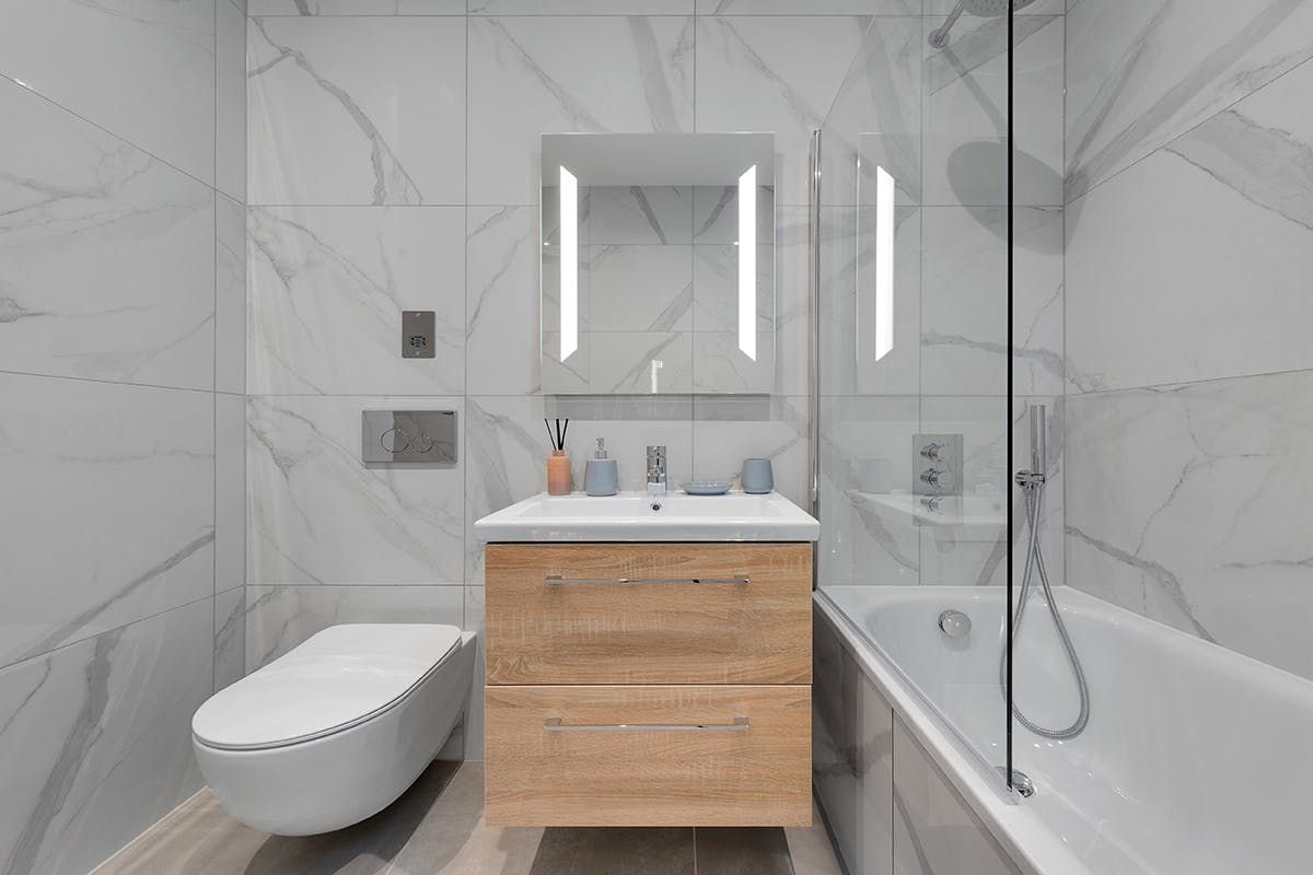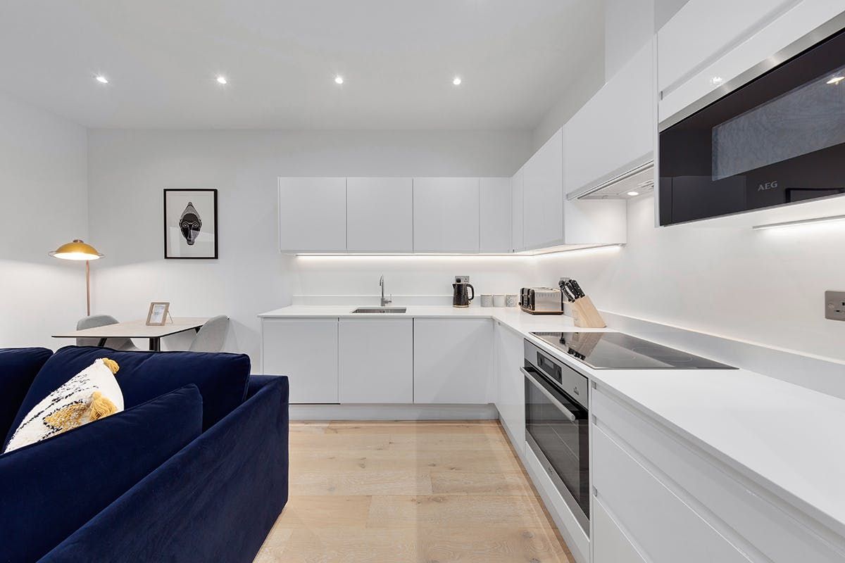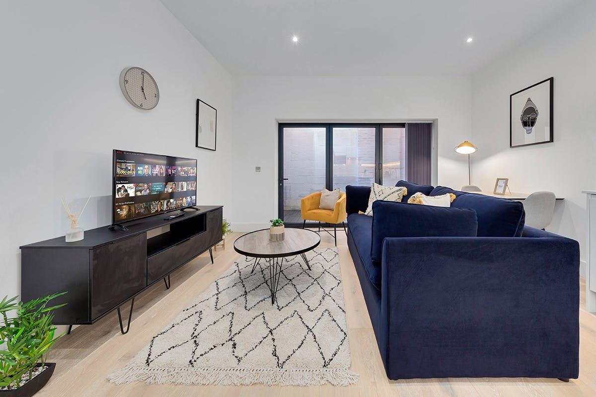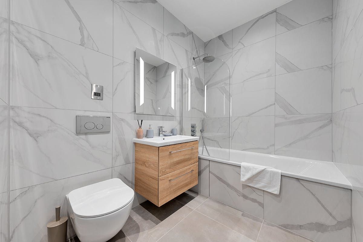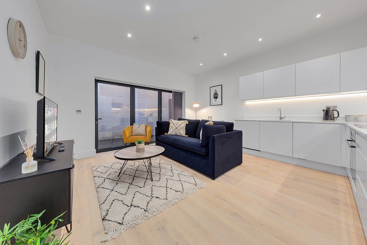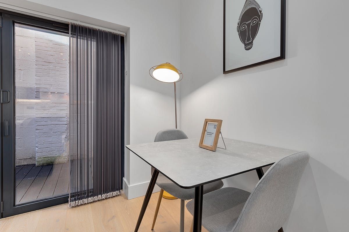 Stay in a peaceful part of the city at this modern apartment with a private outside space. You've got Richmond Park right around the corner, as well as the restaurants, bars and shops of Kingston upon Thames just a short walk from your door. It's also very well-connected for those working or looking to get out exploring – Norton Station is a four-minute walk away, and you can be at London Waterloo in only thirty minutes. Inside, it has everything needed for a relaxing stay, with a handy kitchen, dining table and marble-lined bathroom.