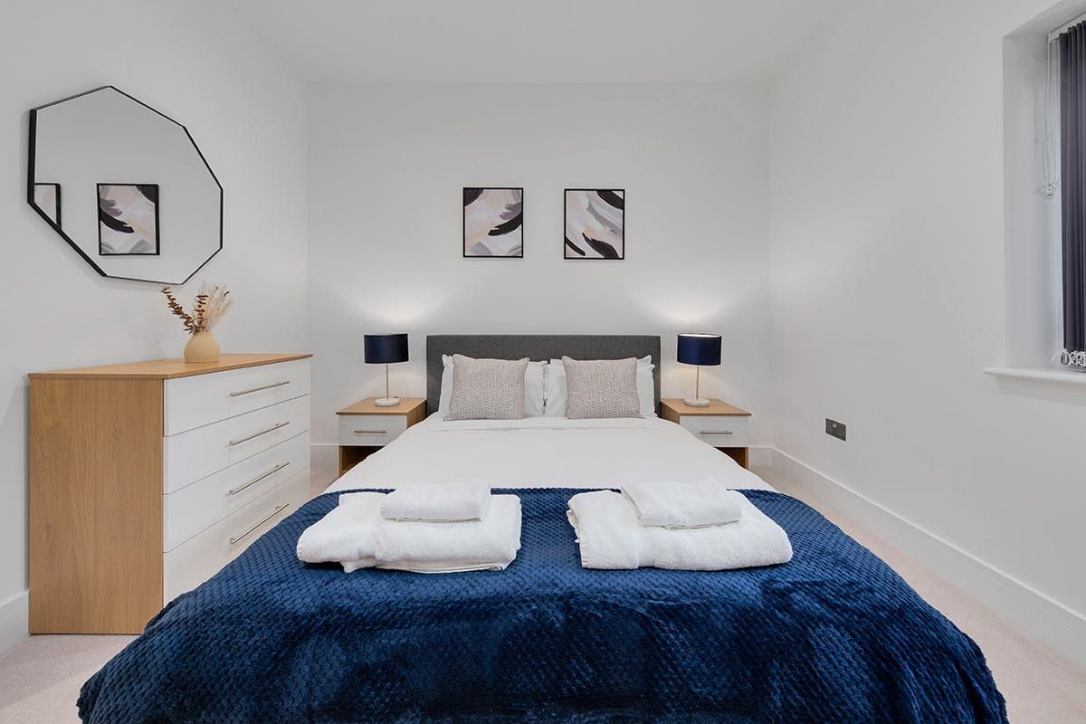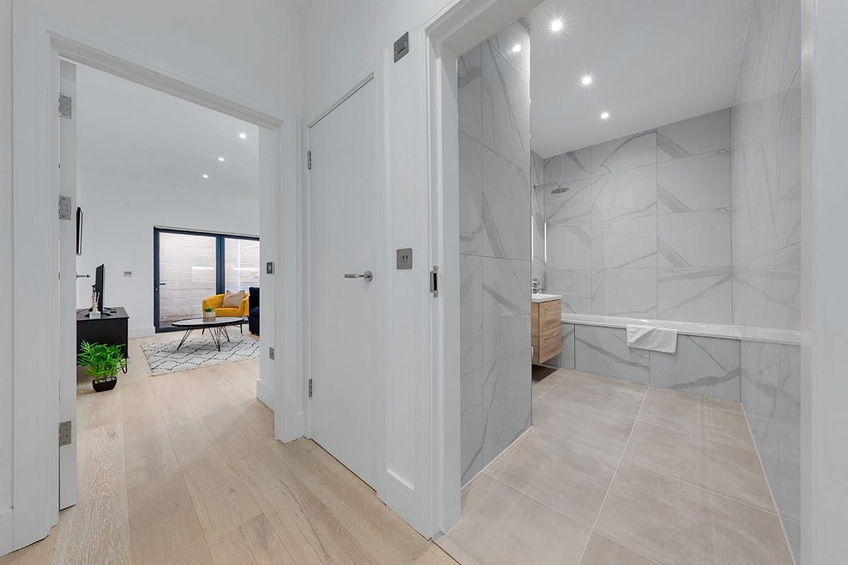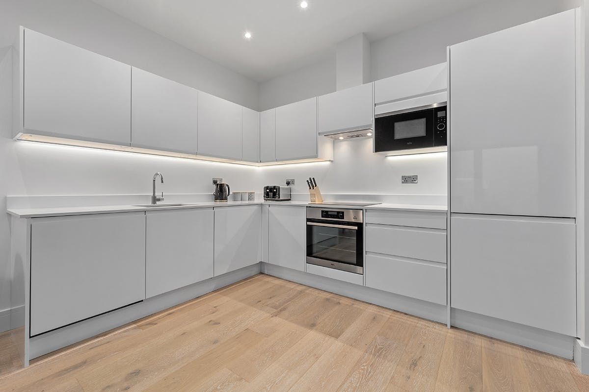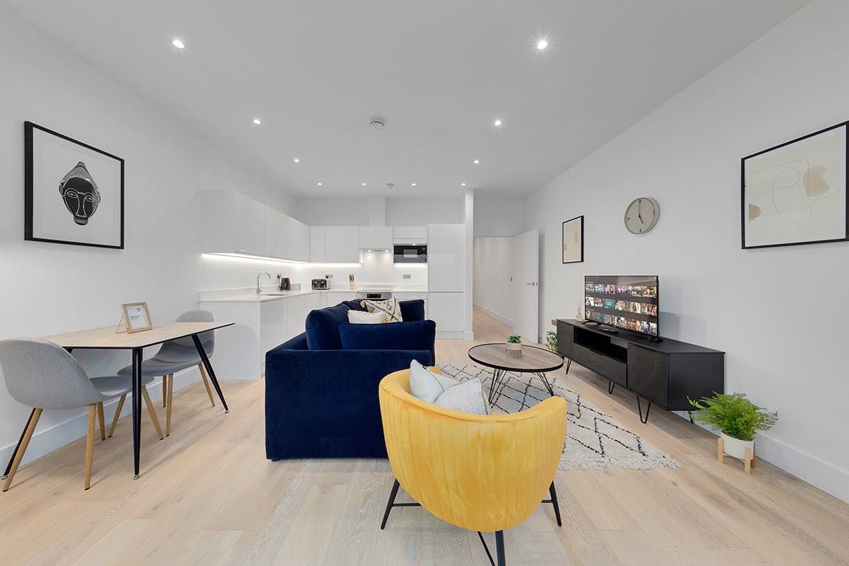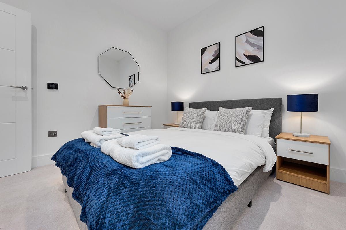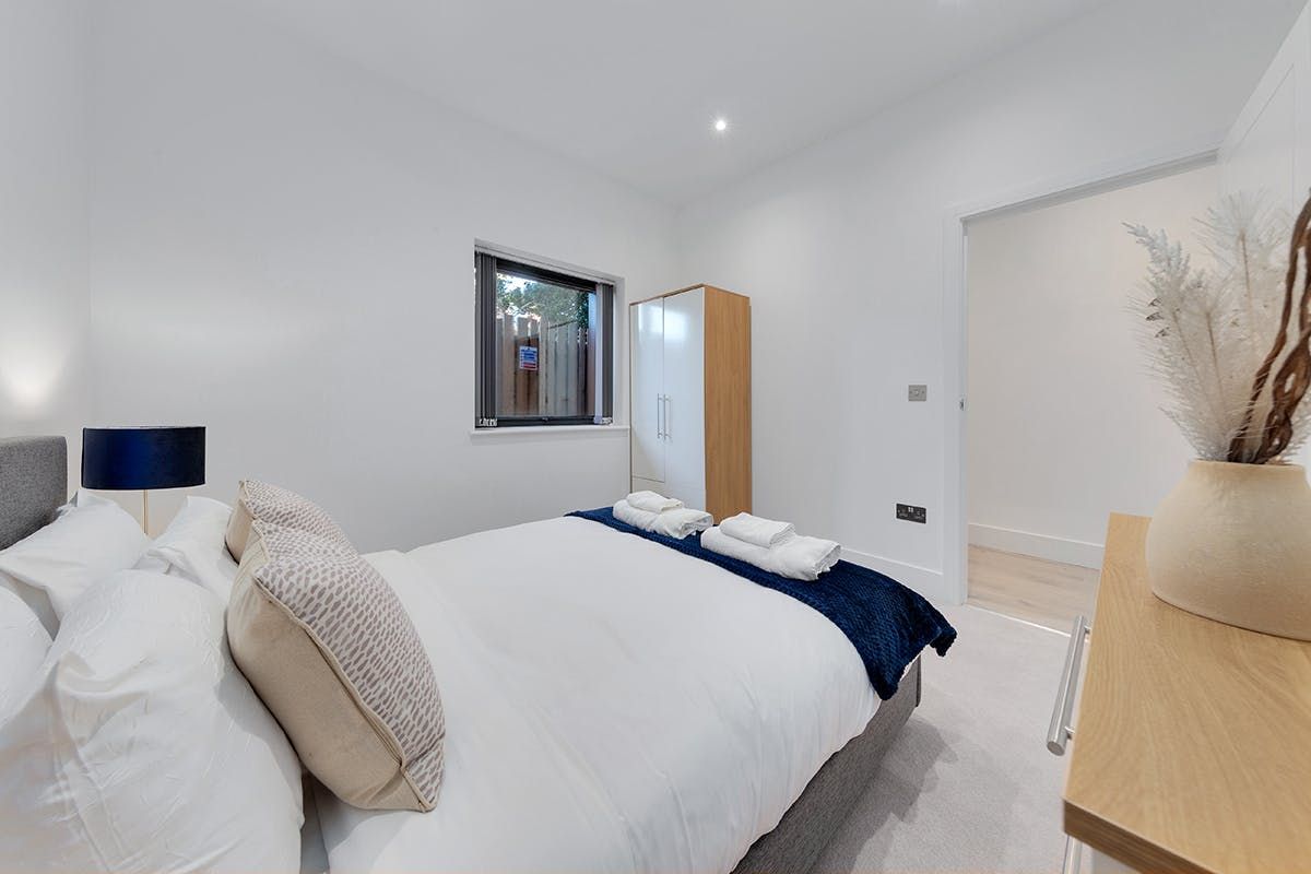 Stay in a peaceful part of the city at this modern apartment with a private outside space. You've got Richmond Park right around the corner, as well as the restaurants, bars and shops of Kingston upon Thames just a short walk from your door. It's also very well-connected for those working or looking to get out exploring – Norton Station is a four-minute walk away, and you can be at London Waterloo in only thirty minutes. Inside, it has everything needed for a relaxing stay, with a handy kitchen, dining table and marble-lined bathroom.