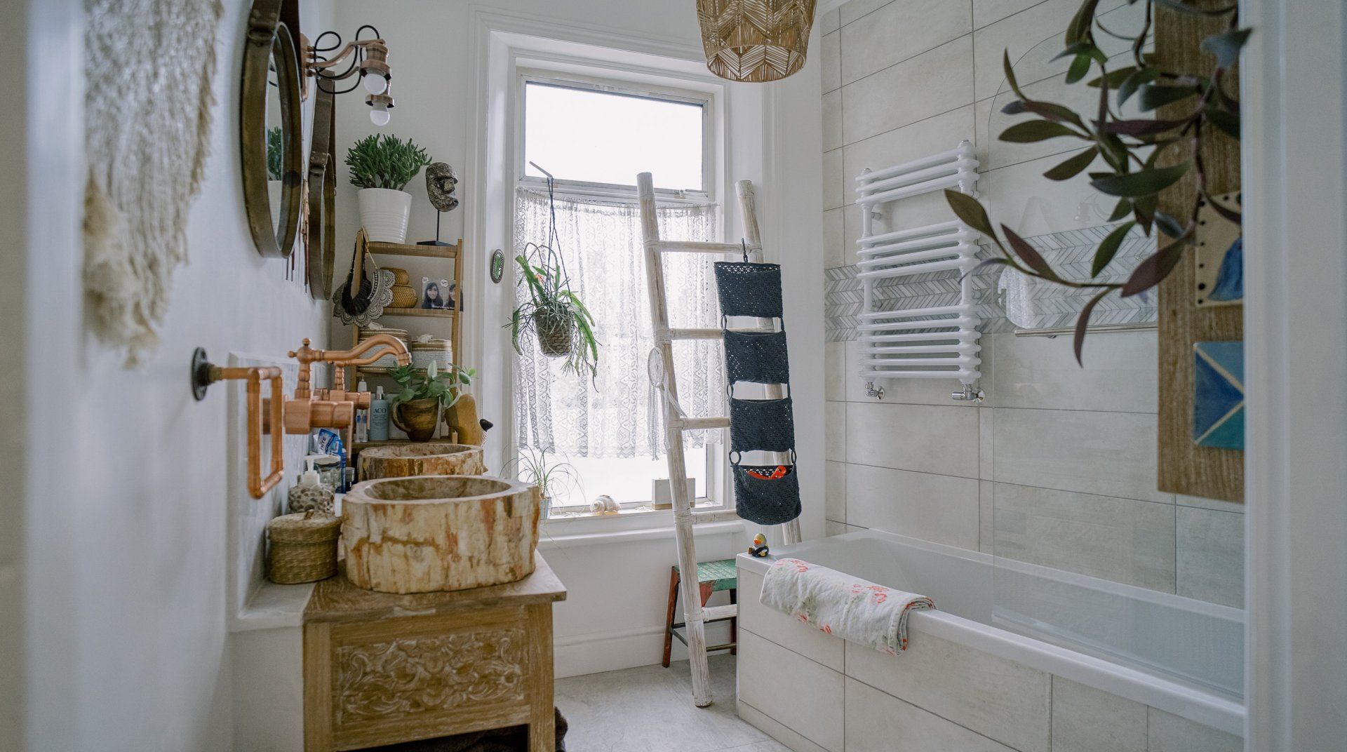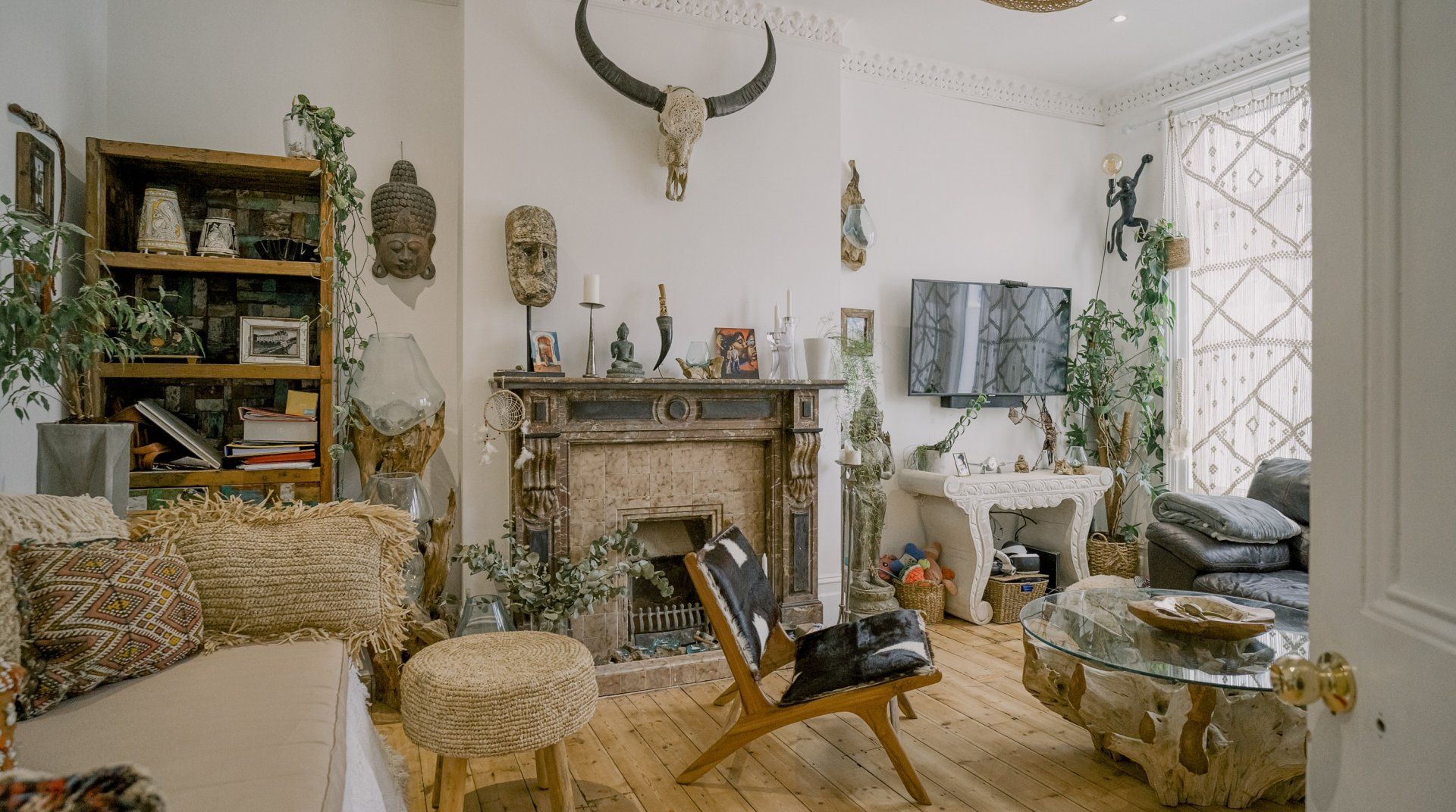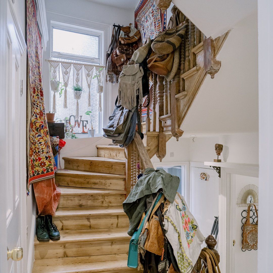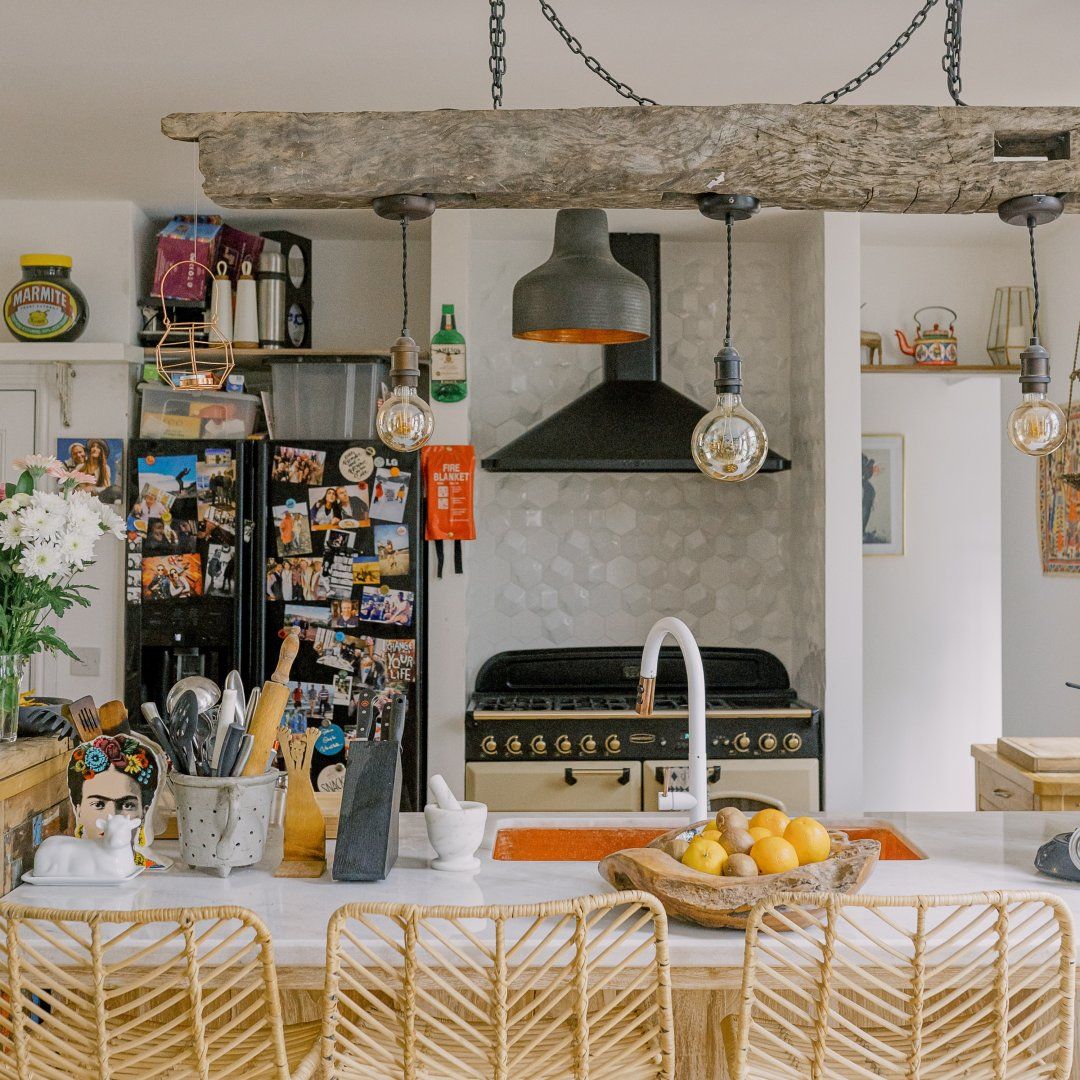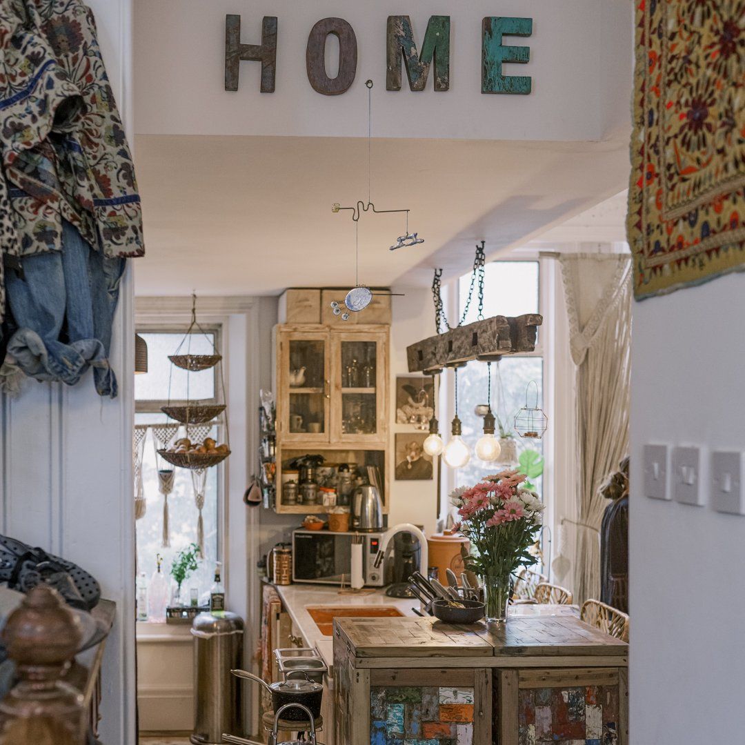 If you’re a minimalist at heart, look away now. This eclectic – some might say eccentric – home is an eye-catching cacophony of wooden artefacts, creamy-coloured macrame and potted plants. It’s packed to the rafters with objets d’art from around the world and things that have been reclaimed and repurposed. And it all sings together quite nicely thanks to the neutral tones. It’s clearly a home that has absorbed a lot of love, from the rough-hewn petrified wood sinks to the intricately carved beds. There’s plenty to marvel at. We love the quirky kitchen with a table which was once a floor, copper sinks and lights suspended from a huge wooden beam. It’s a generous, Victorian home with a large back garden on a quiet street but close to London’s sights. Lewisham DLR and train station is a ten-minute walk away. St. John's train station is a five-minute walk away and from there it’s just six minutes into London Bridge. Nearby there are plenty of pubs, cafes and shops within walking distance.