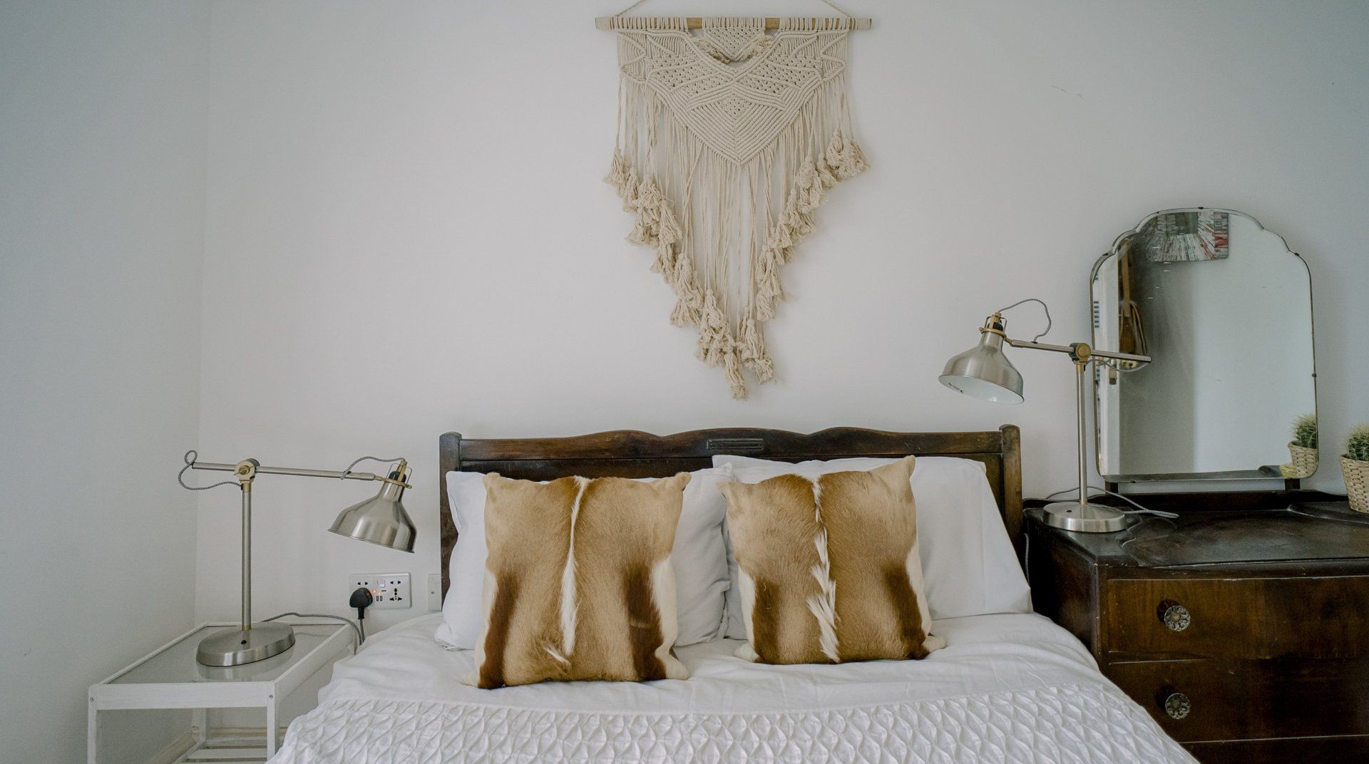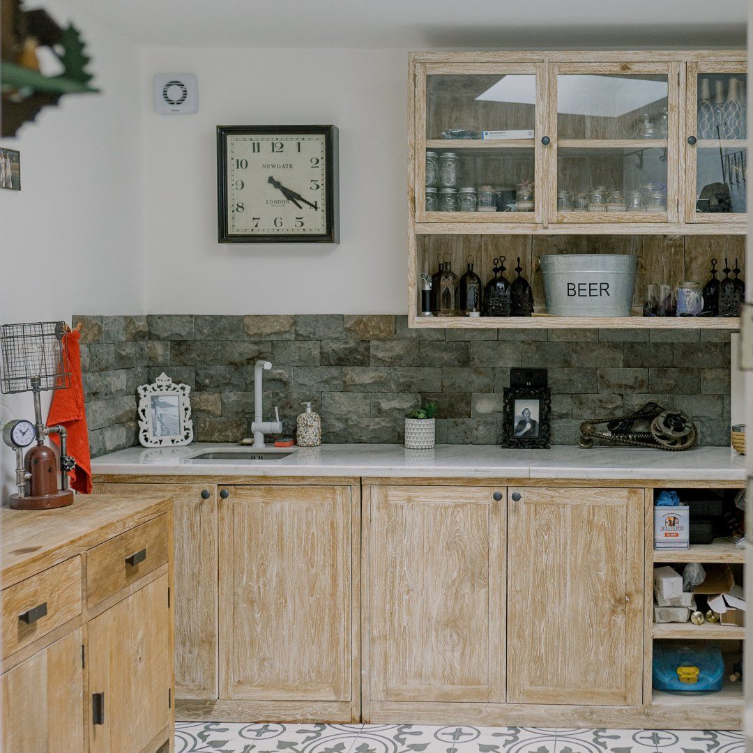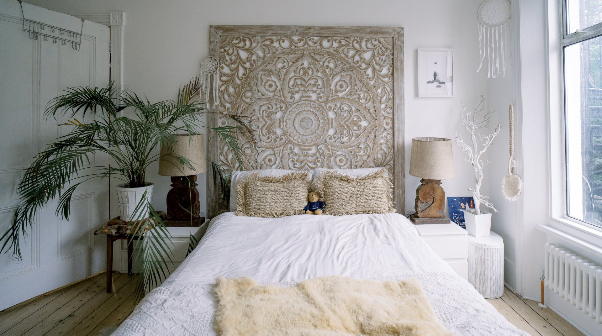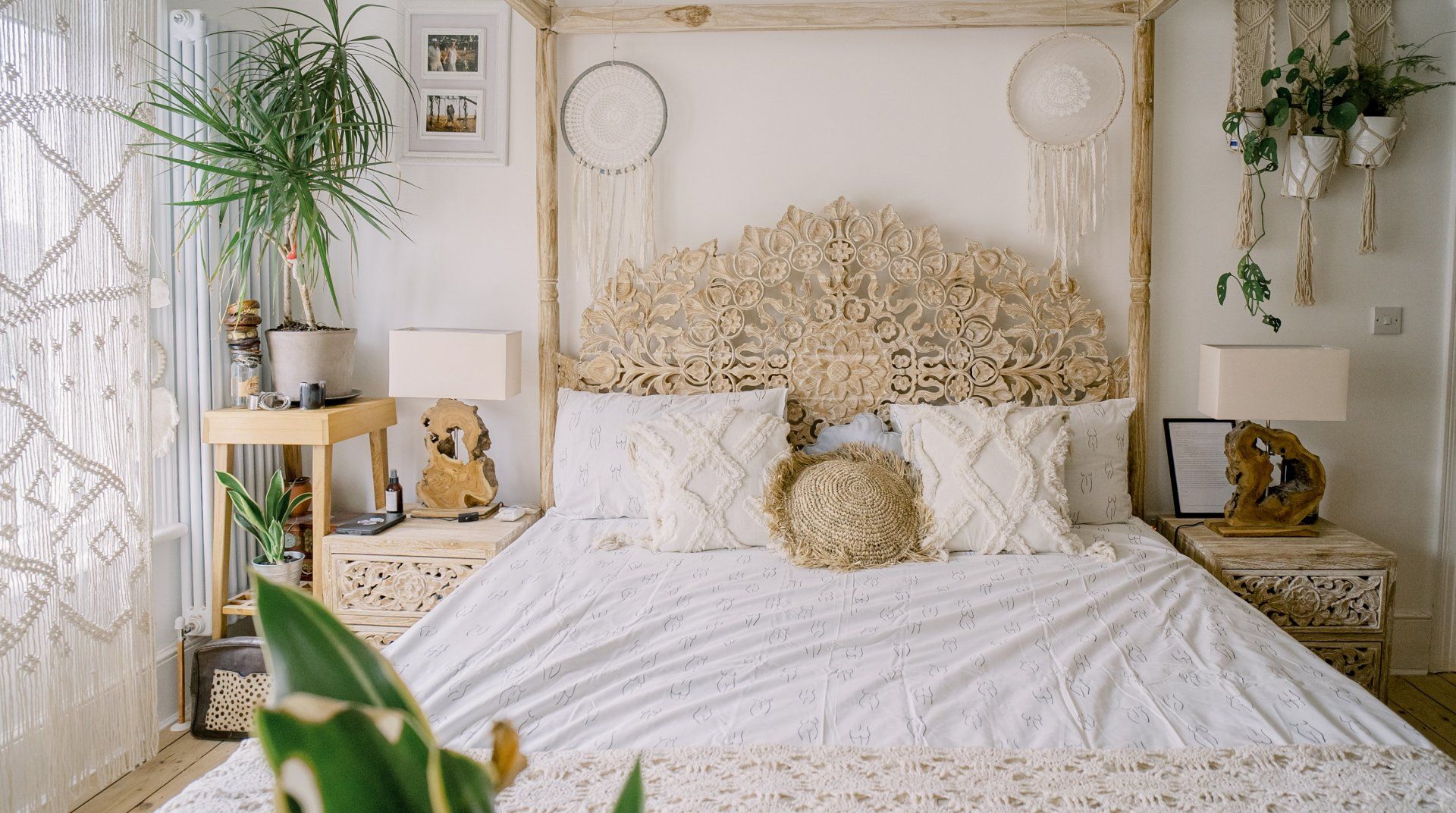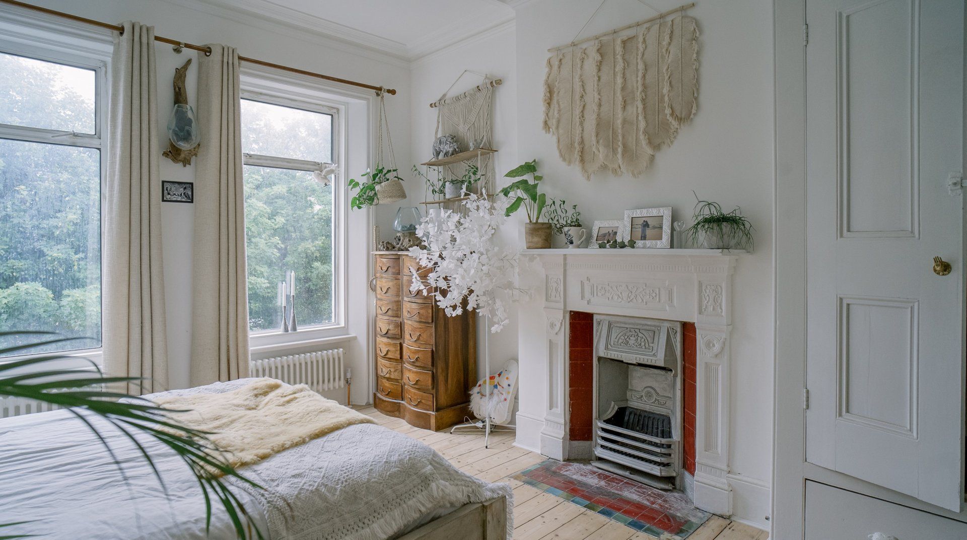 If you’re a minimalist at heart, look away now. This eclectic – some might say eccentric – home is an eye-catching cacophony of wooden artefacts, creamy-coloured macrame and potted plants. It’s packed to the rafters with objets d’art from around the world and things that have been reclaimed and repurposed. And it all sings together quite nicely thanks to the neutral tones. It’s clearly a home that has absorbed a lot of love, from the rough-hewn petrified wood sinks to the intricately carved beds. There’s plenty to marvel at. We love the quirky kitchen with a table which was once a floor, copper sinks and lights suspended from a huge wooden beam. It’s a generous, Victorian home with a large back garden on a quiet street but close to London’s sights. Lewisham DLR and train station is a ten-minute walk away. St. John's train station is a five-minute walk away and from there it’s just six minutes into London Bridge. Nearby there are plenty of pubs, cafes and shops within walking distance.