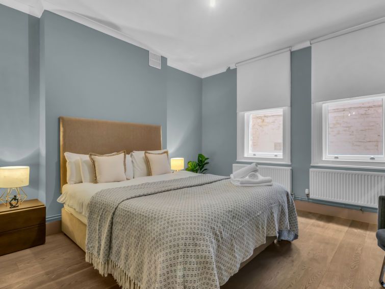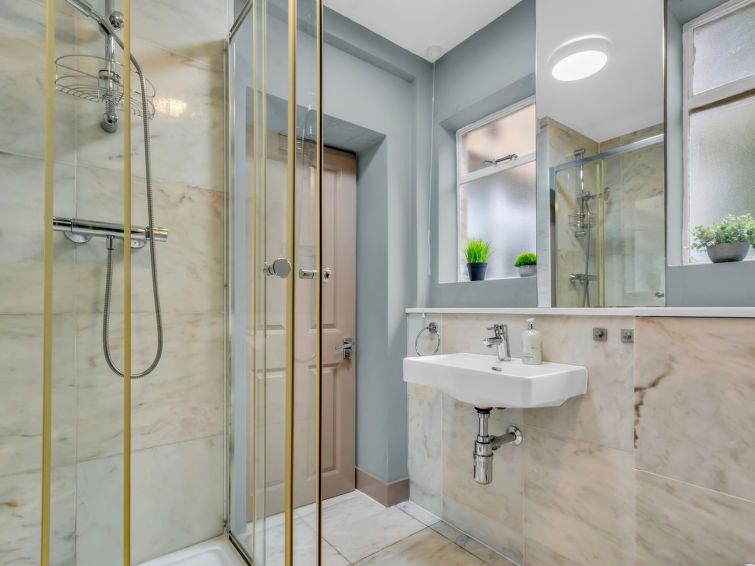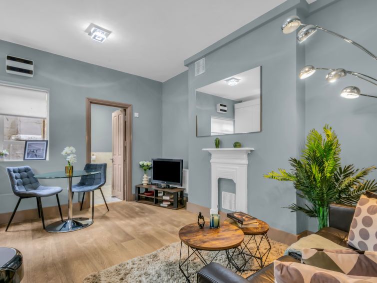 "Cleveland apartments", 2-room apartment 40 m2, on the lower ground floor. Modern and stylish furnishings: open living/dining room with dining table and TV (flat screen). 1 double bedroom with 1 double bed and bath/shower/WC. Open kitchen (4 hot plates, oven, dishwasher, toaster, kettle, freezer, combination microwave).
